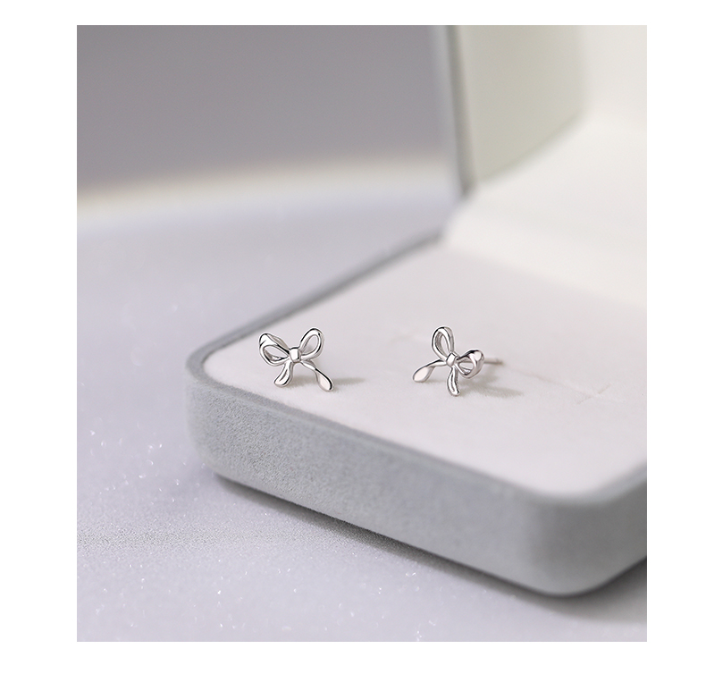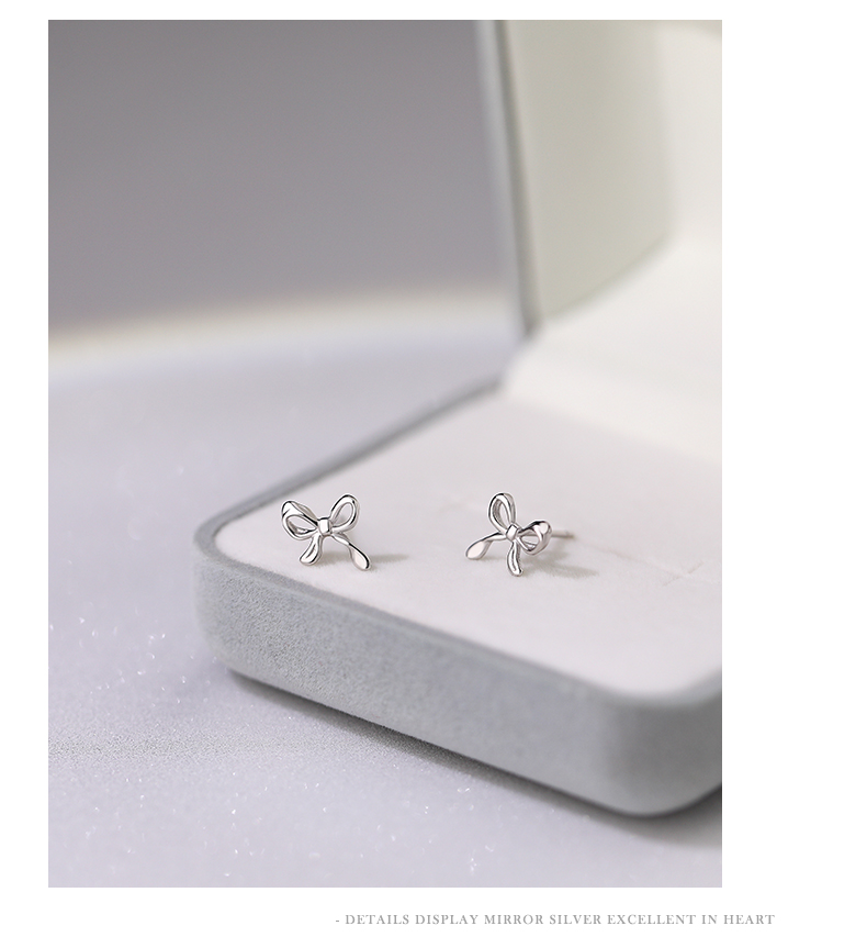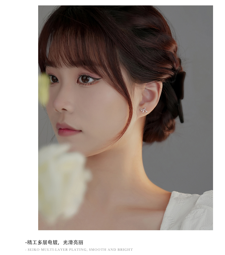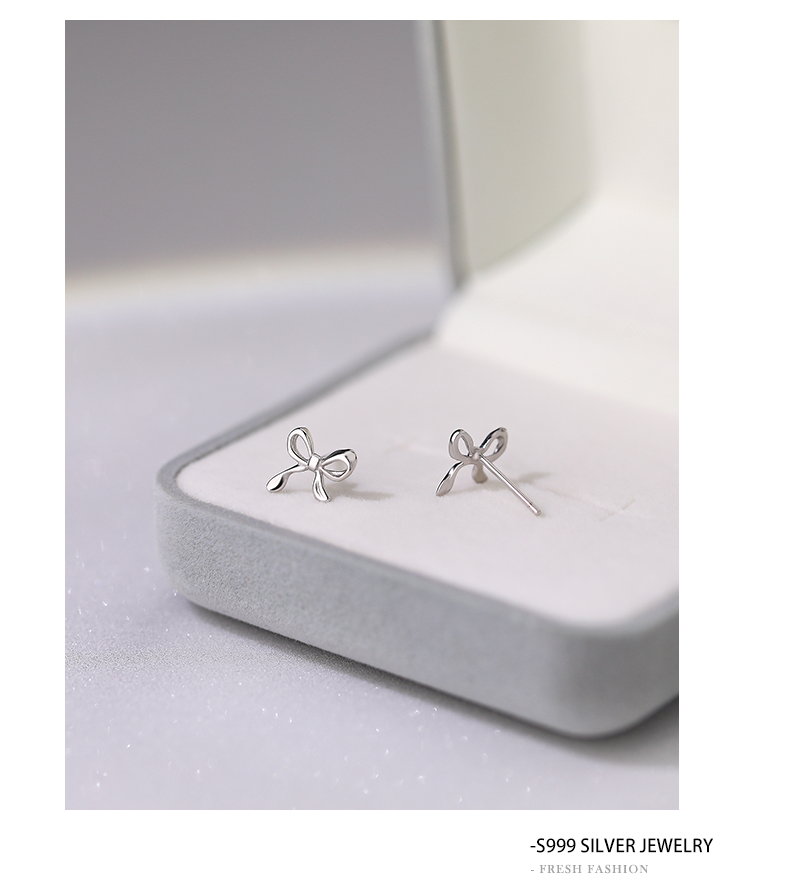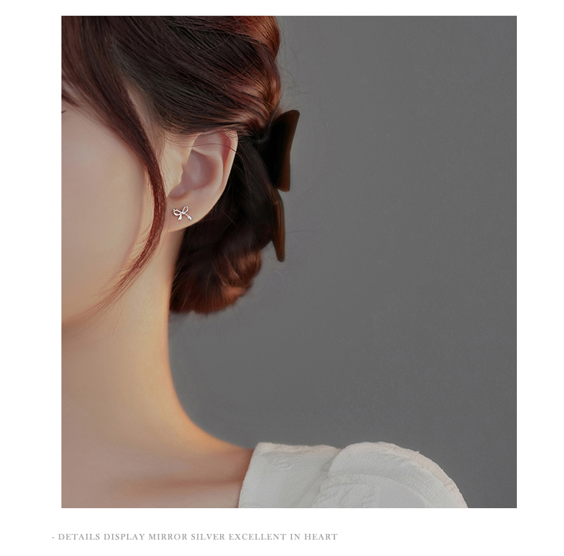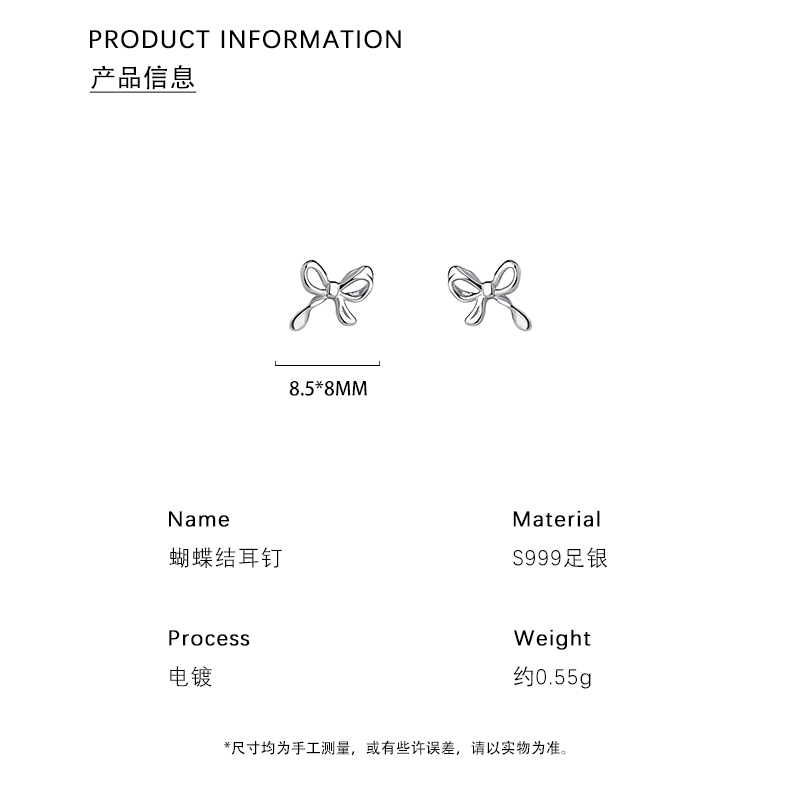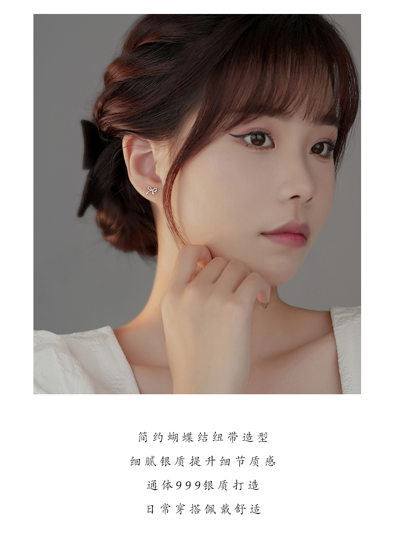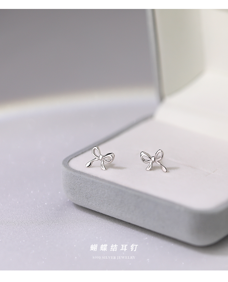 999纯银蝴蝶结耳钉女养耳洞足银耳环2023年防过敏耳针耳饰防堵针