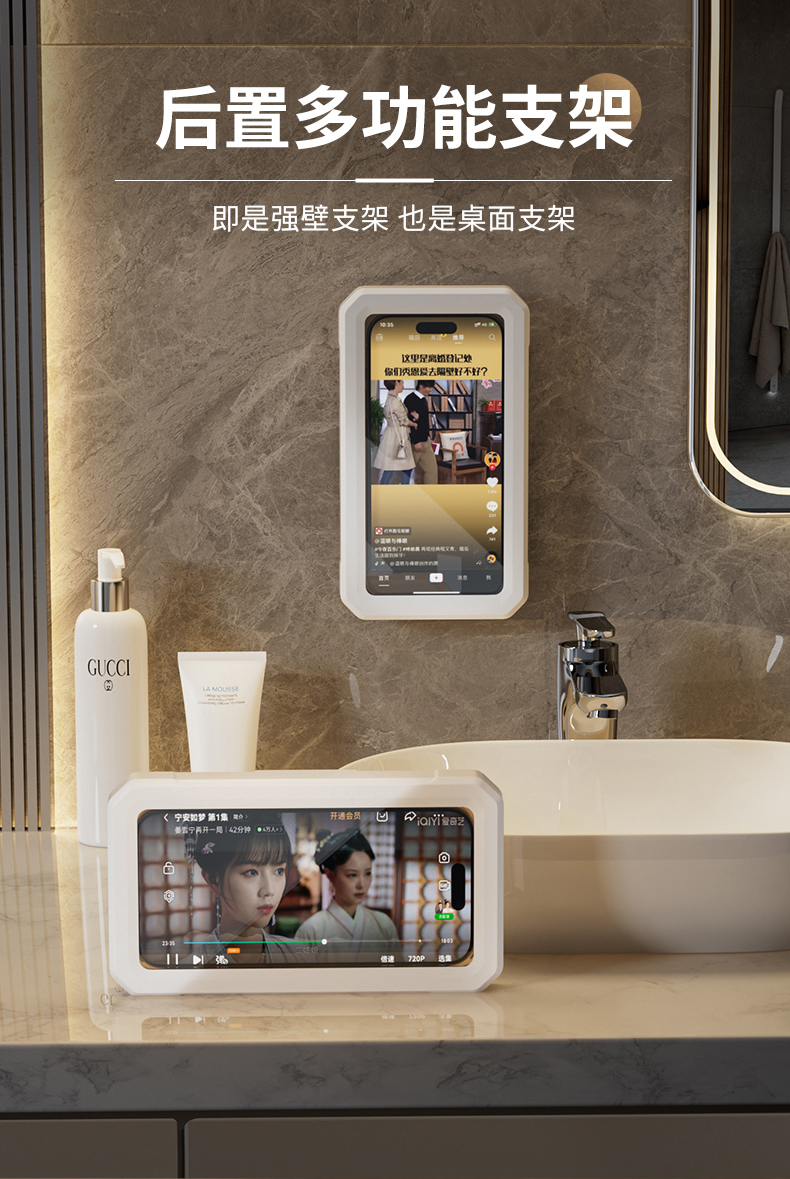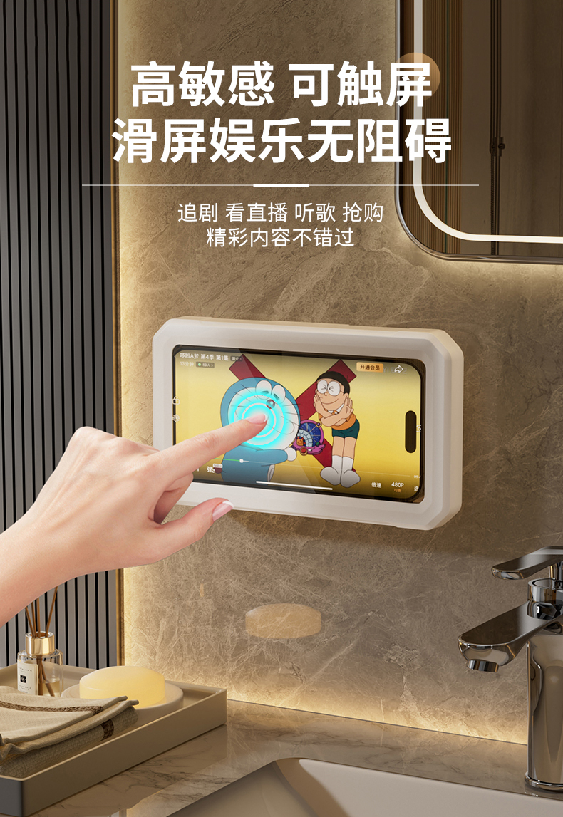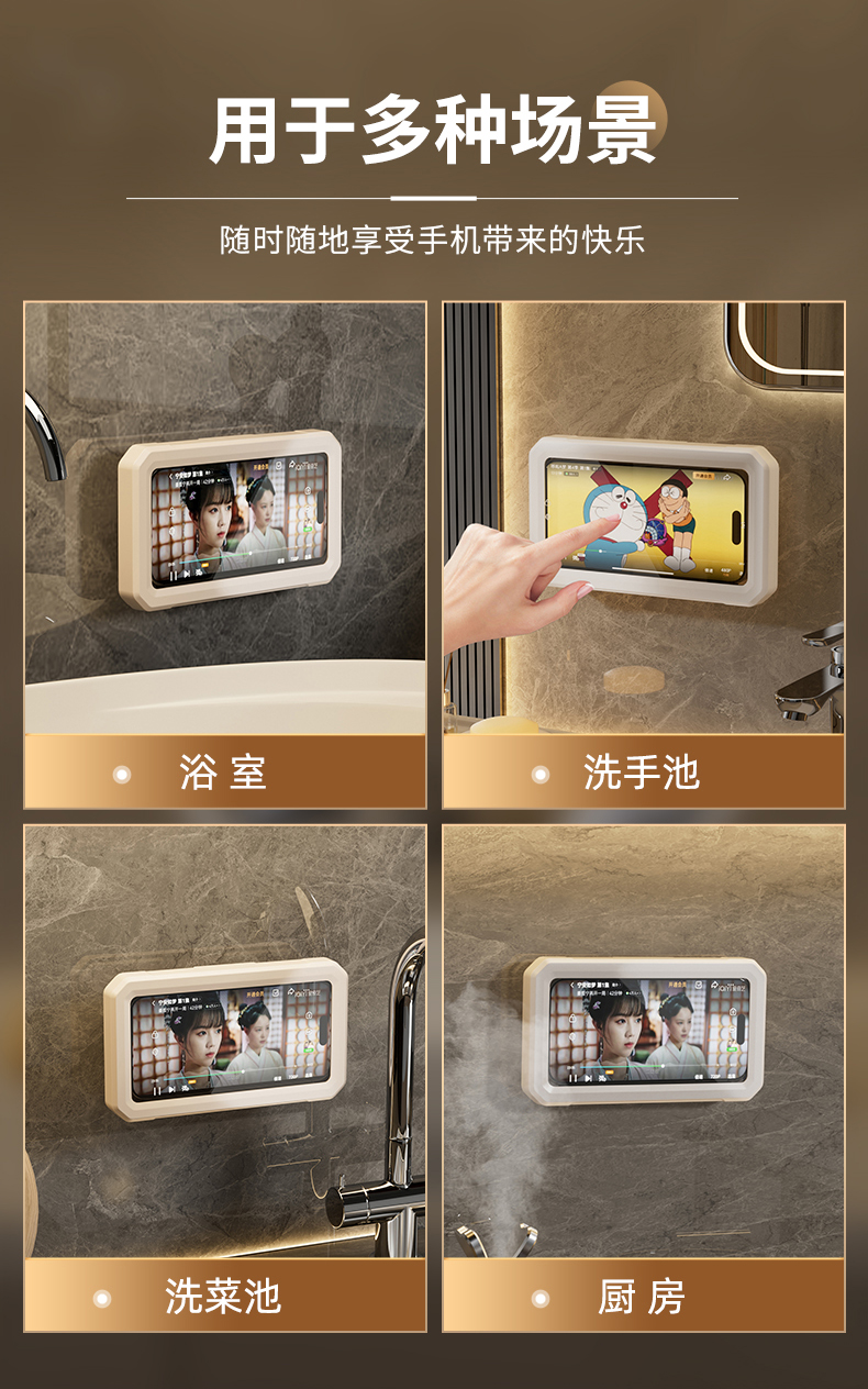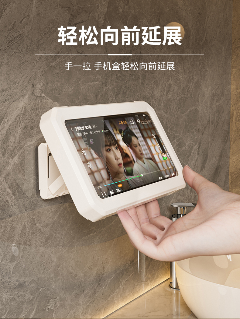浴室防水手机盒可伸缩旋转防水懒人手机架卫生间追剧神器置物架