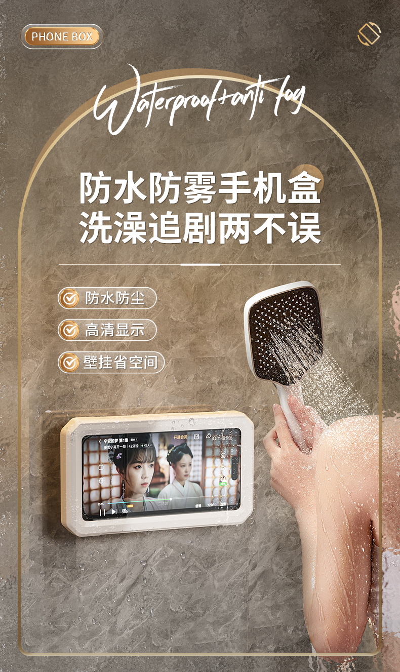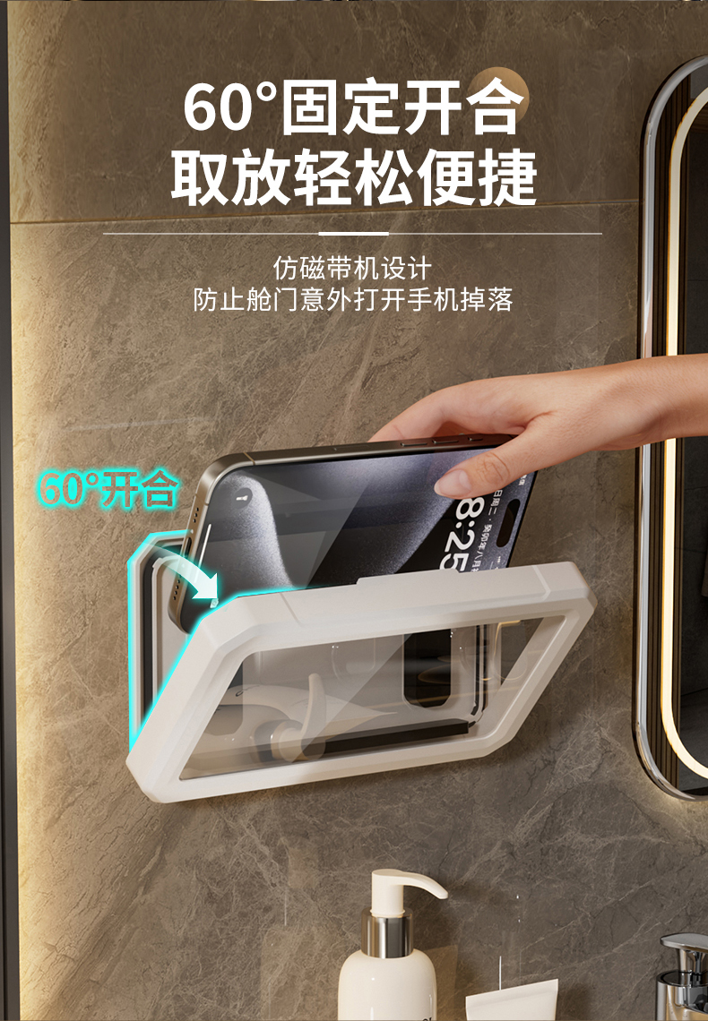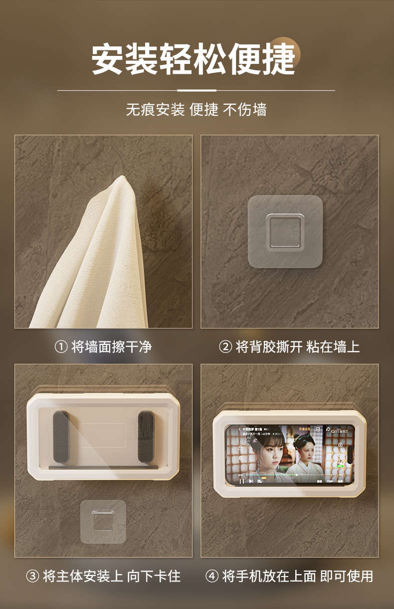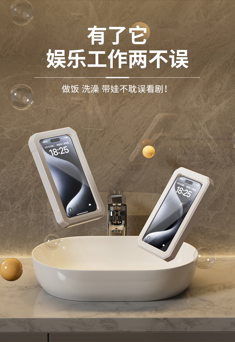 浴室防水手机盒可伸缩旋转防水懒人手机架卫生间追剧神器置物架