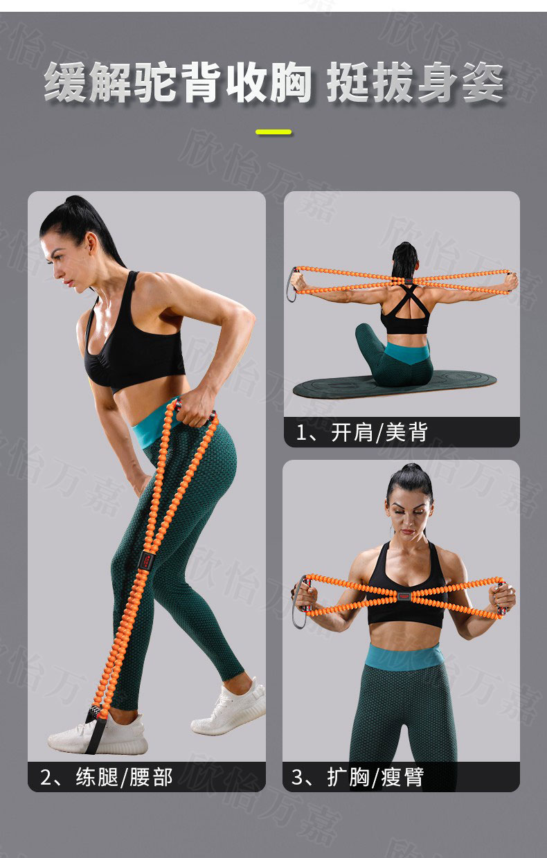 8字拉力器女家用练背神器八字弹力带开背美背拉伸瑜伽器材健身绳