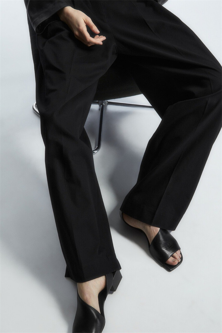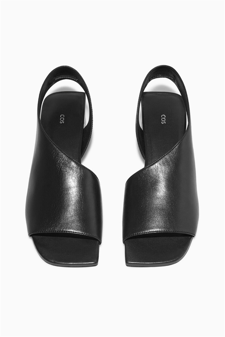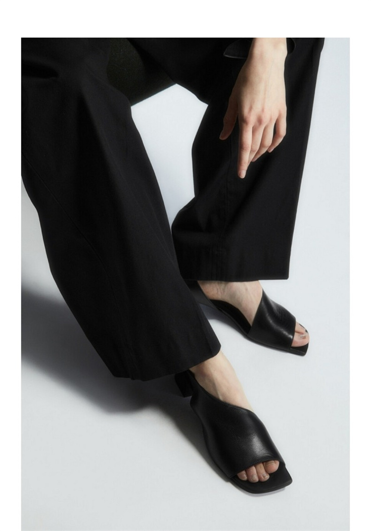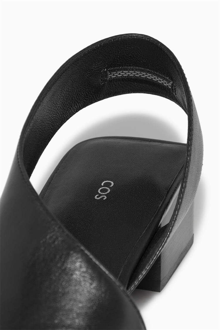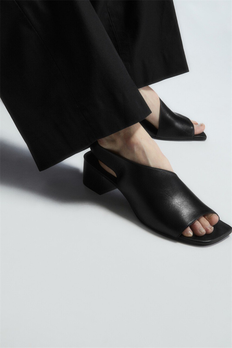 2024夏季新品女鞋R COS露趾羊皮中跟粗跟舒适百搭方头凉鞋女黑色