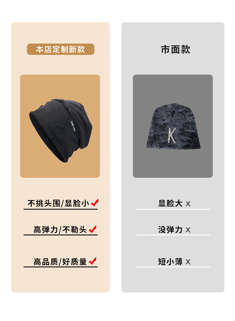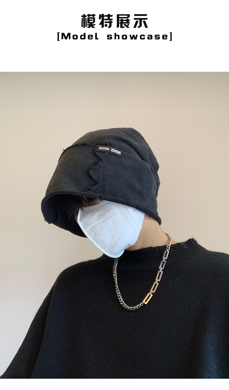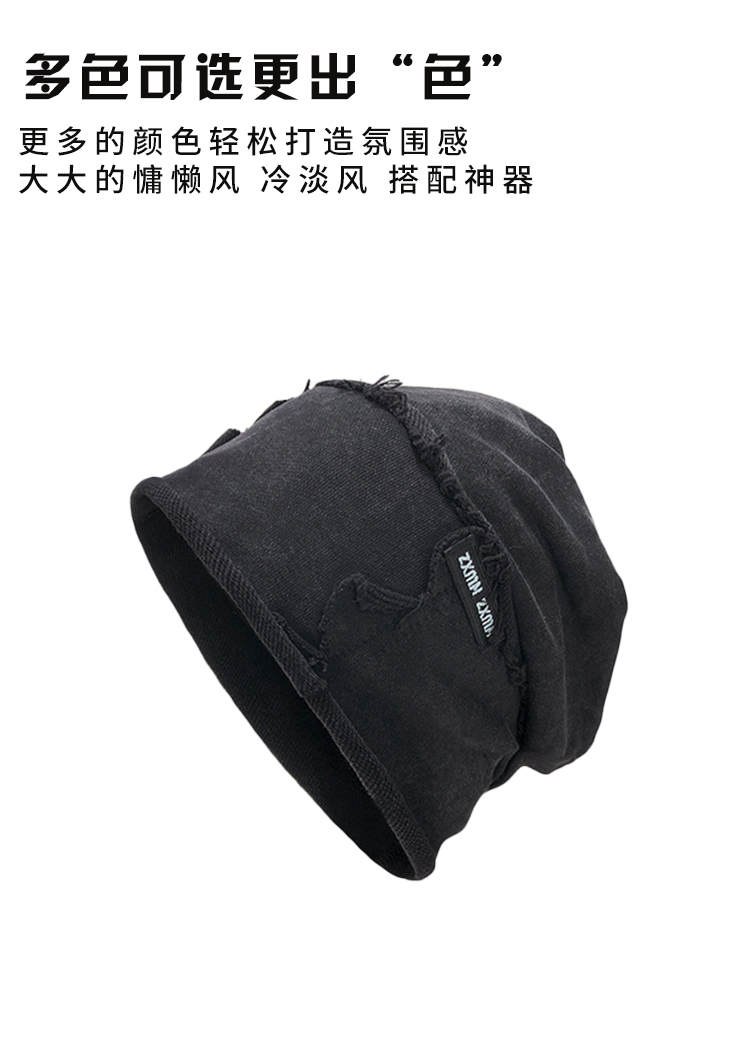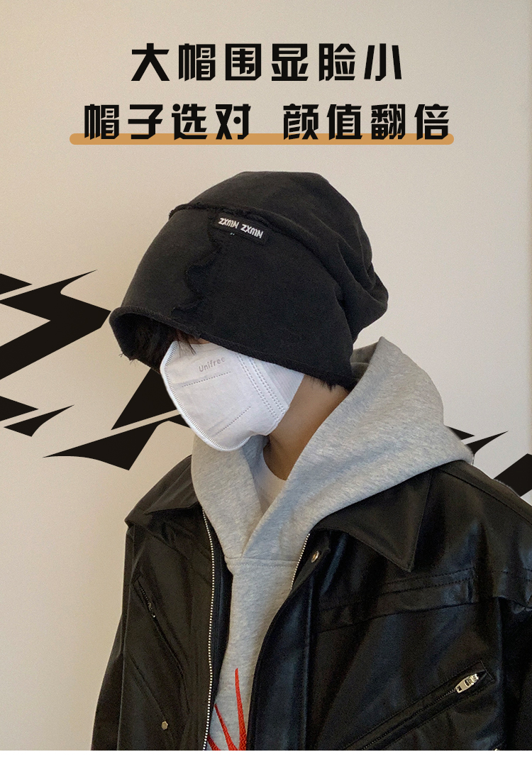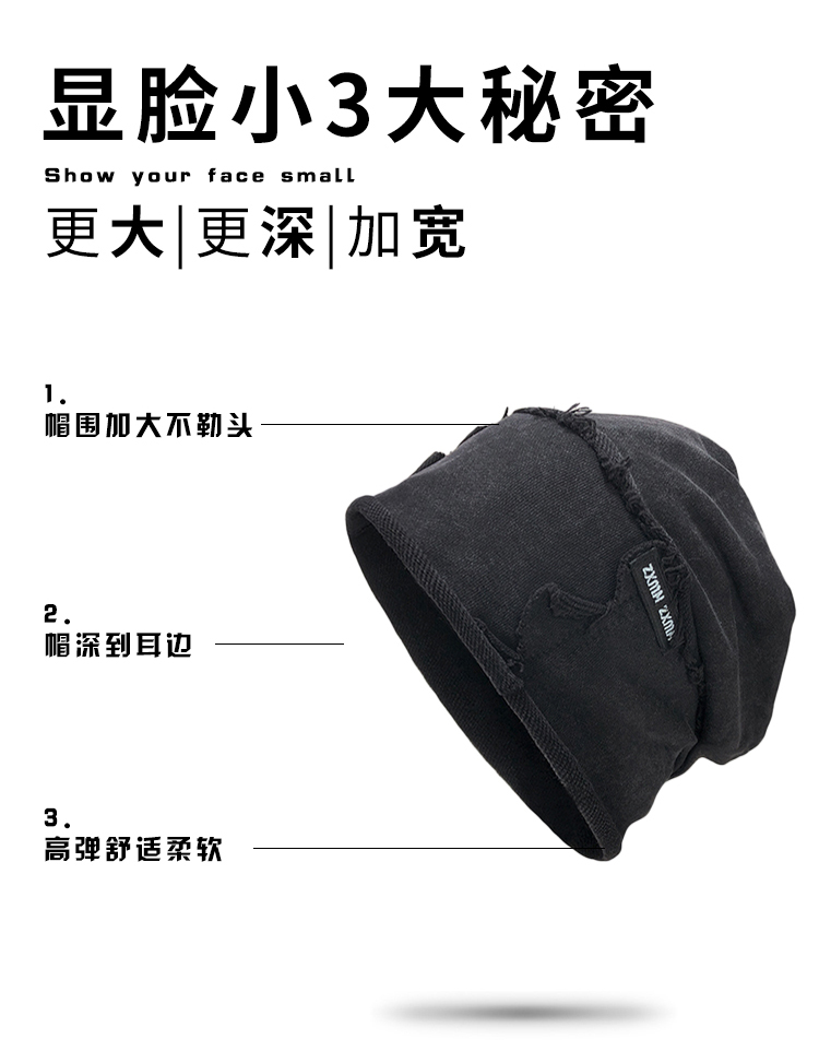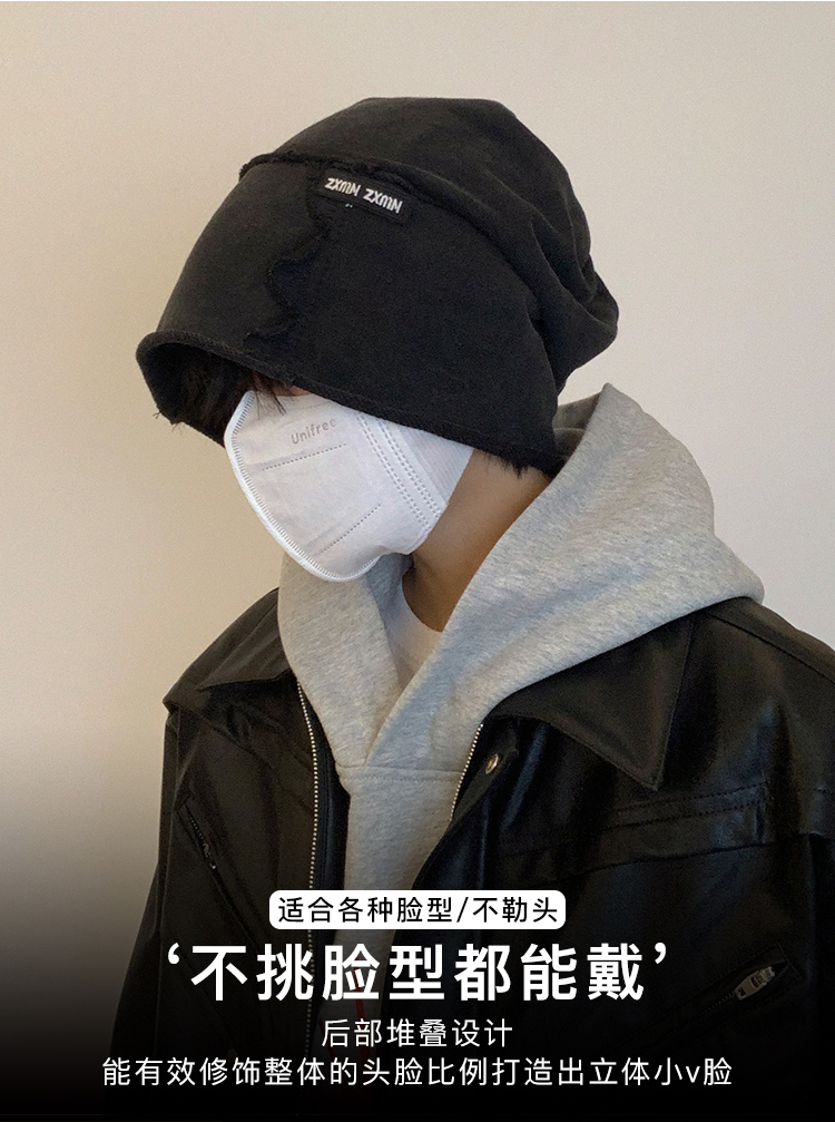 2024新款水洗做旧堆堆帽男显脸小百搭高街冷帽黑色包头帽四季帽子