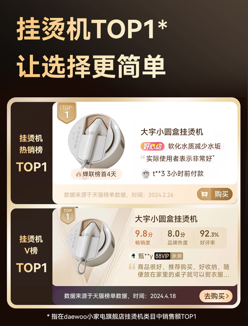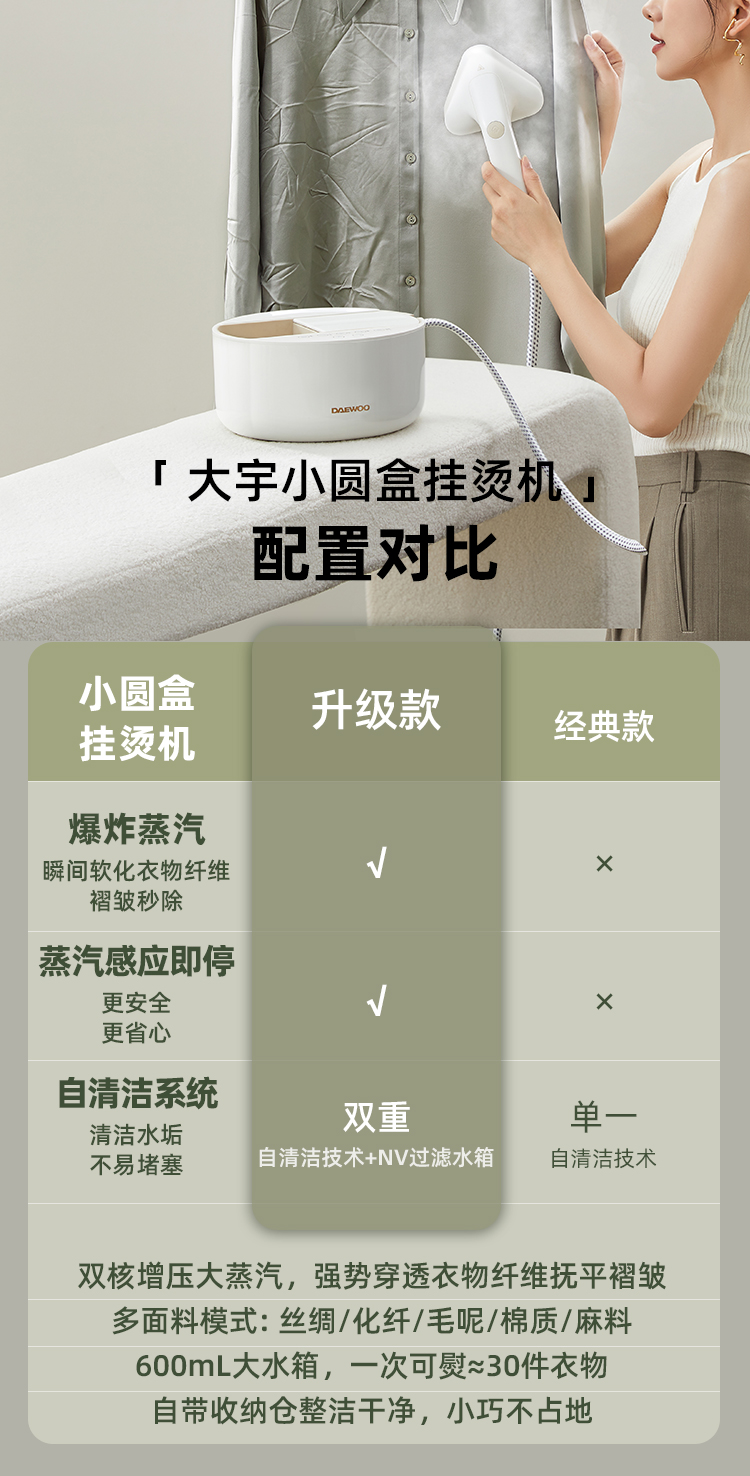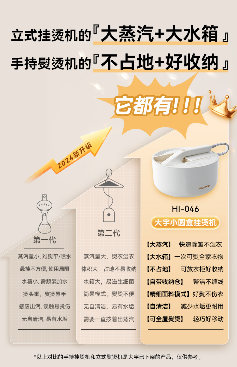 大宇挂烫机2024新款家用小圆盒手持熨烫机蒸汽熨斗烫斗商用服装店