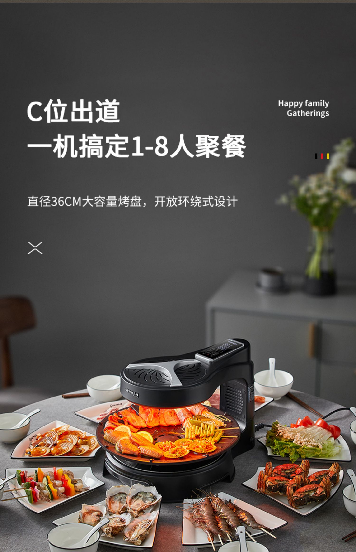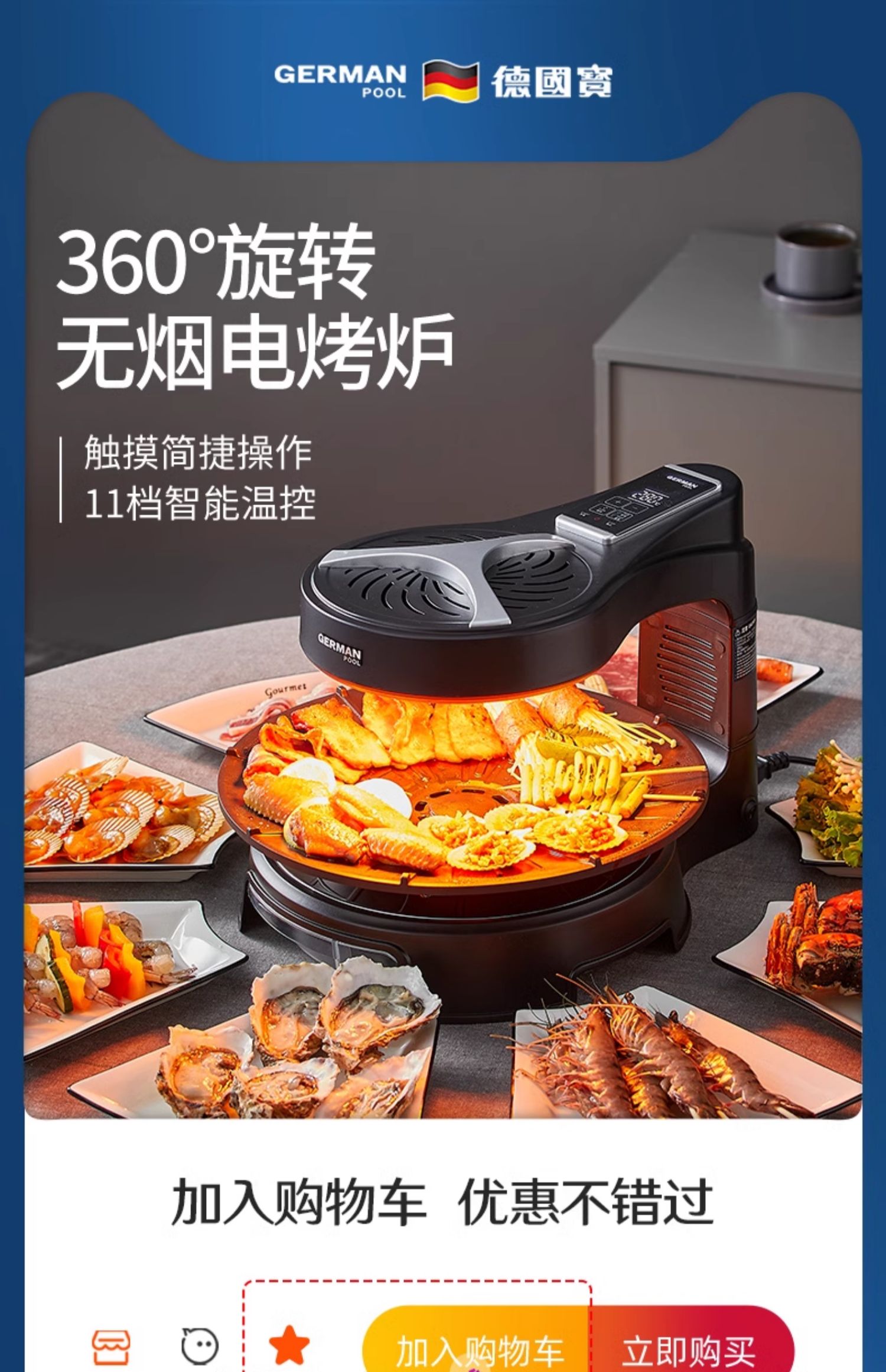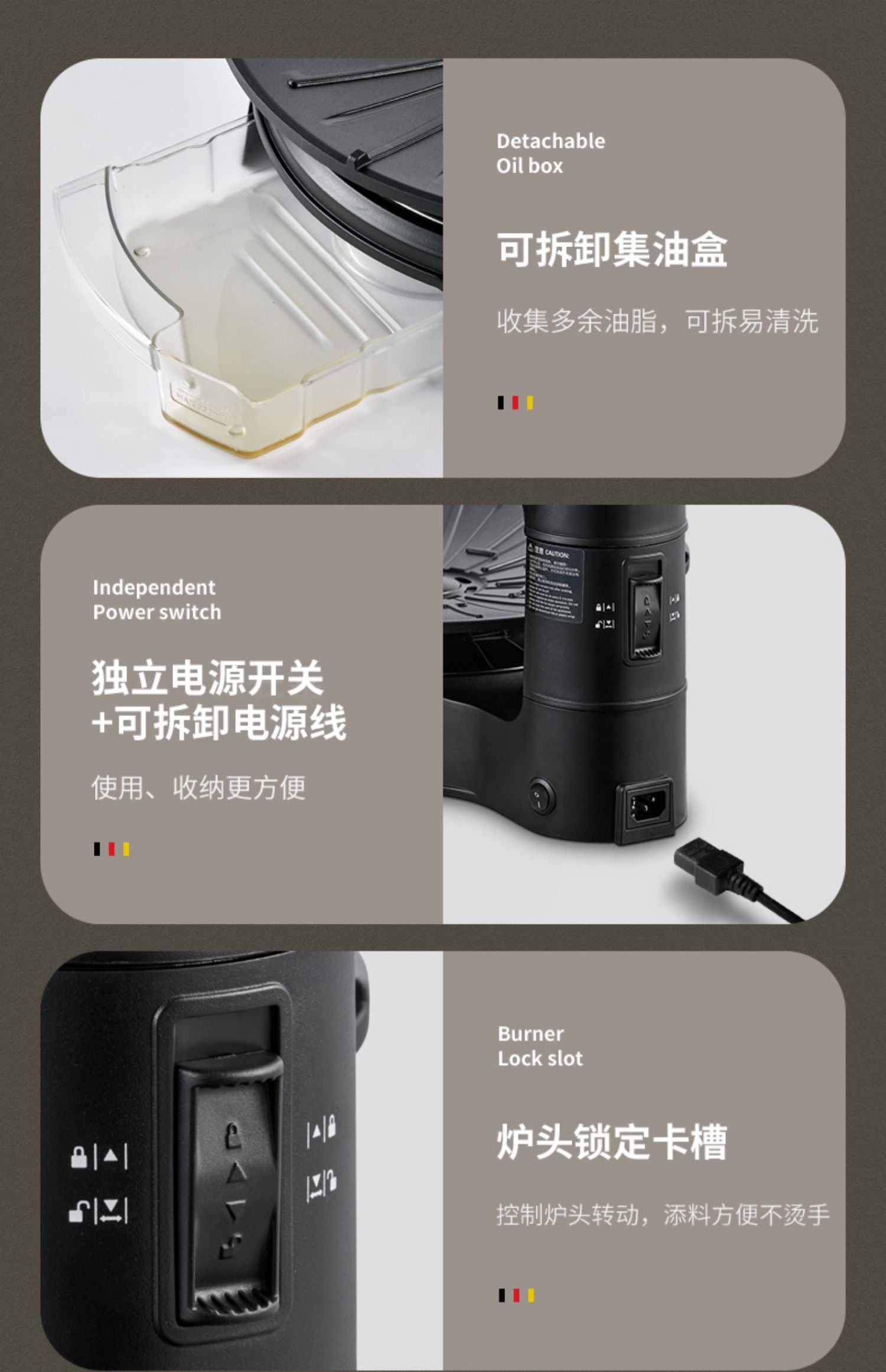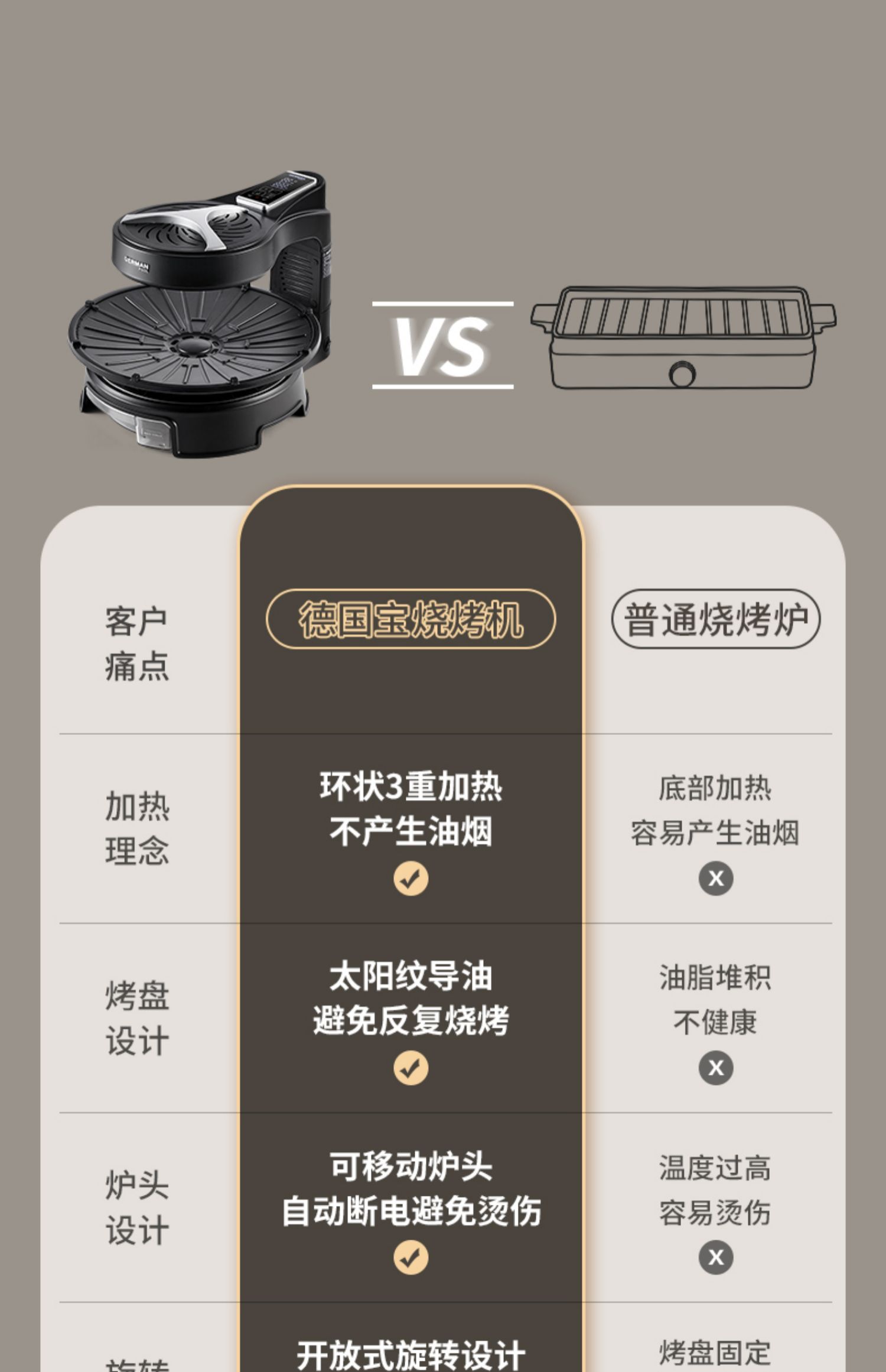 德国宝电烤炉家用无烟烧烤炉烤串机自动旋转烤肉盘电烧烤机烤肉锅