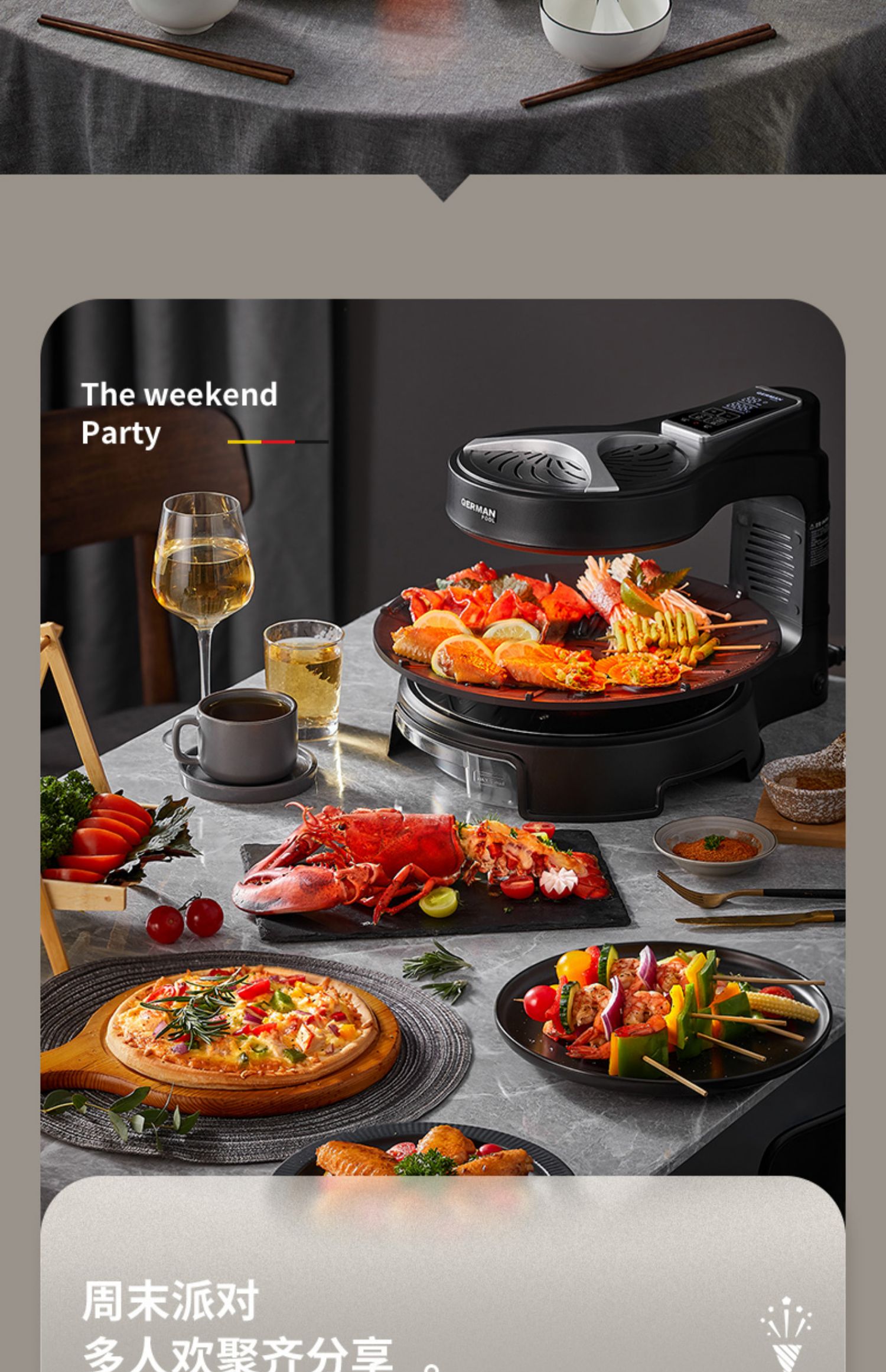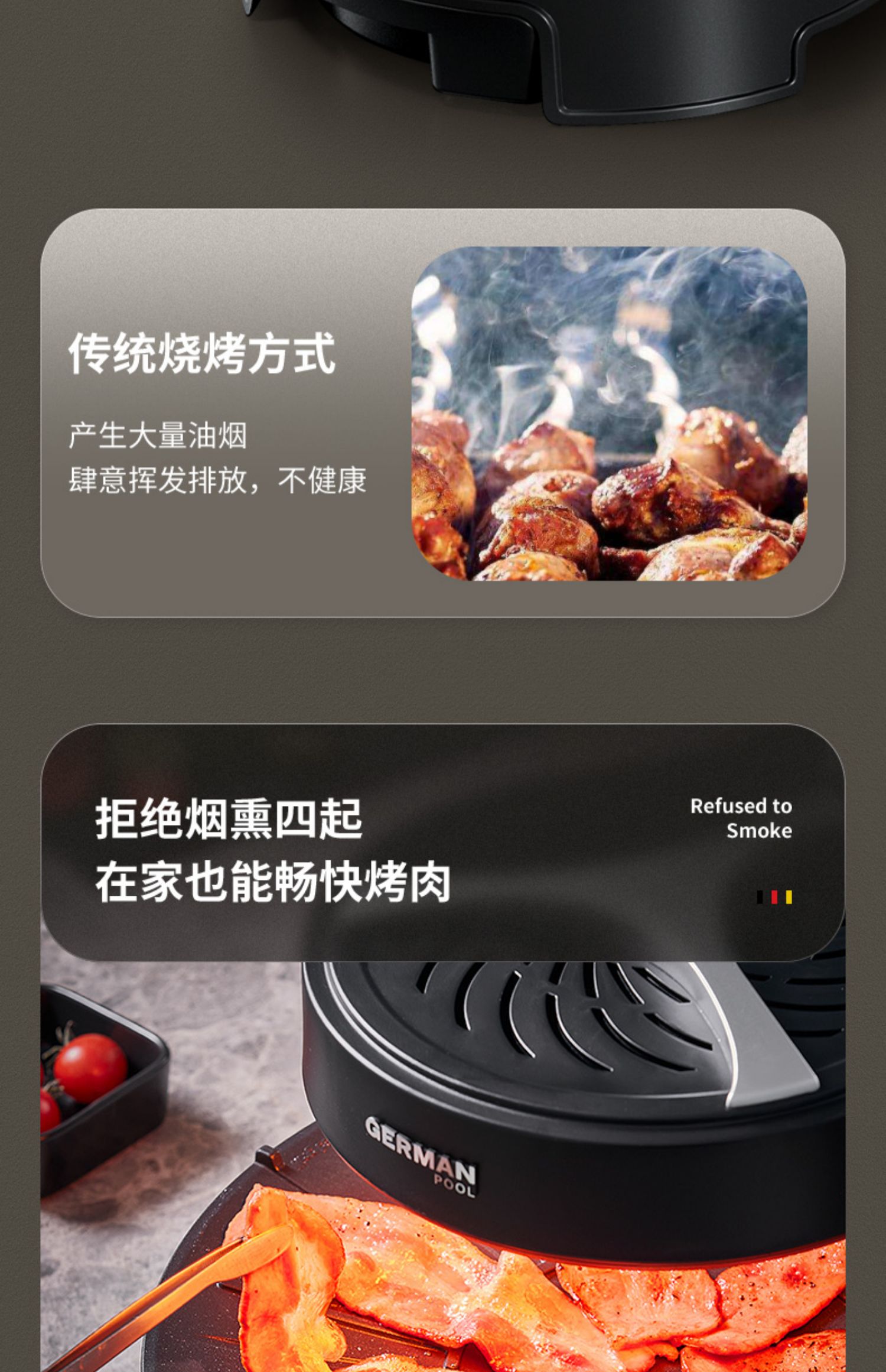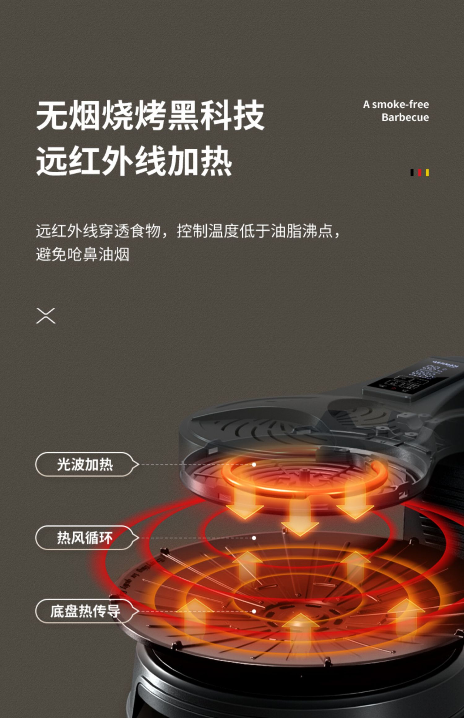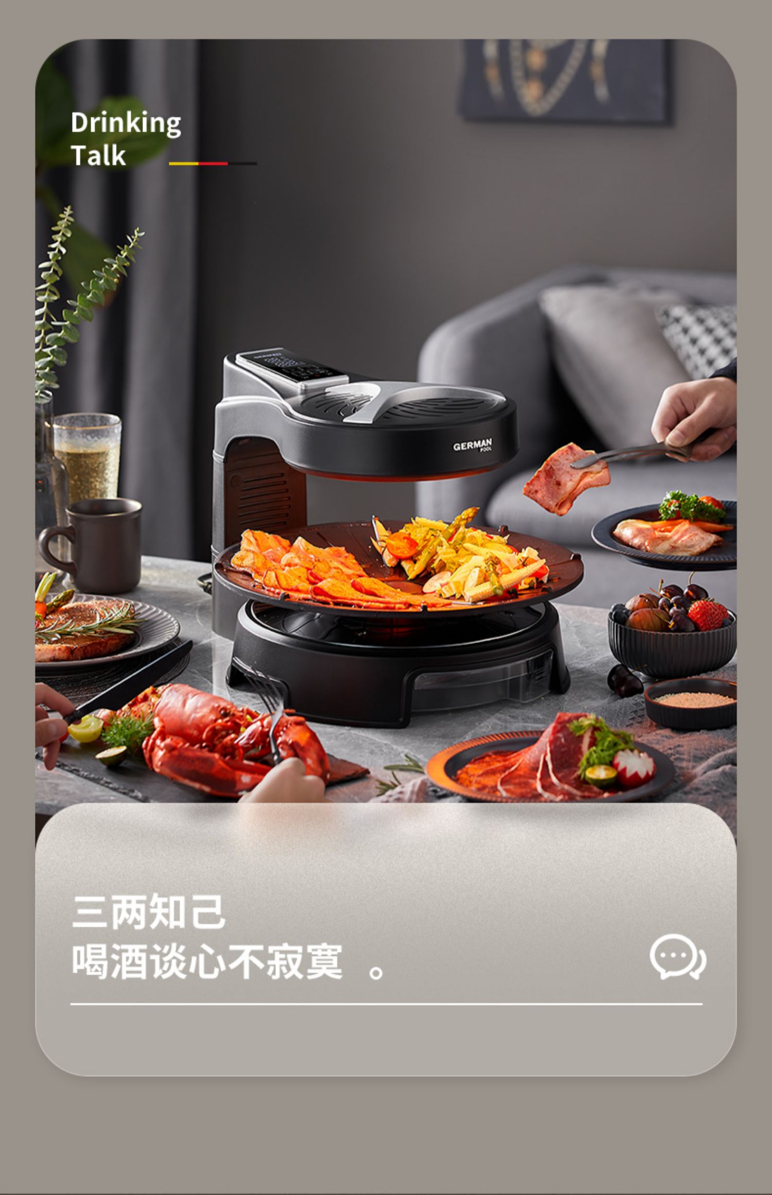 德国宝电烤炉家用无烟烧烤炉烤串机自动旋转烤肉盘电烧烤机烤肉锅