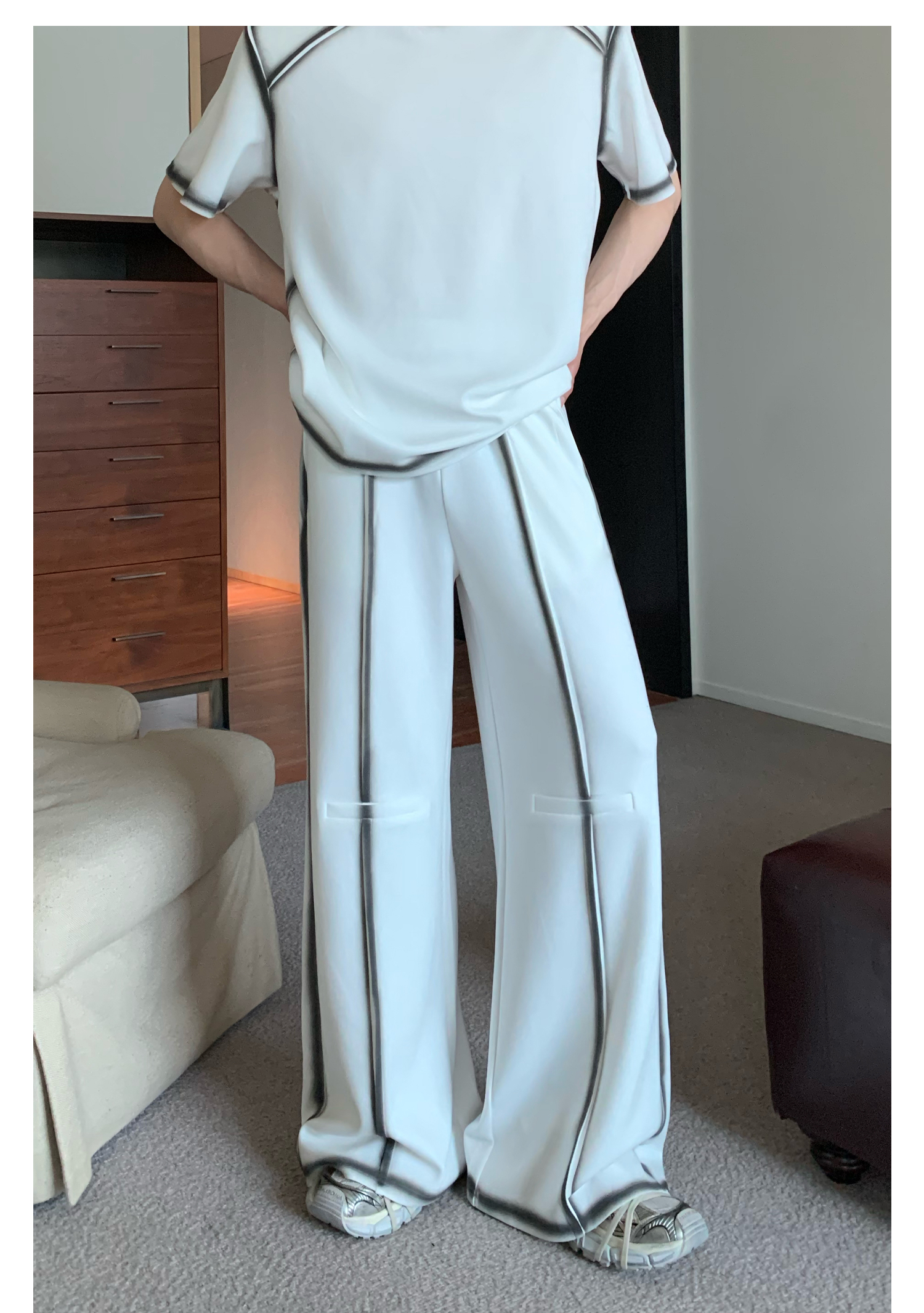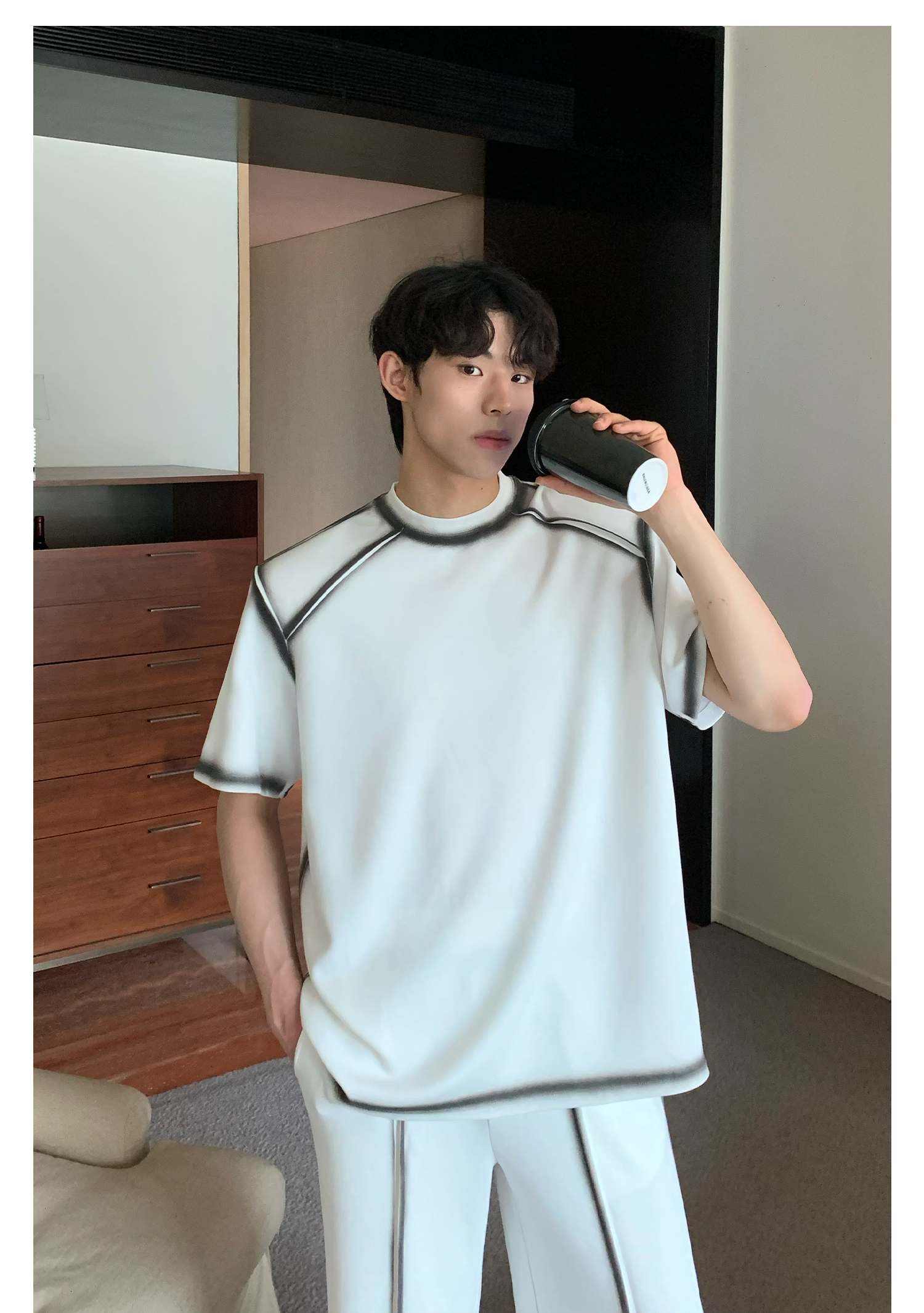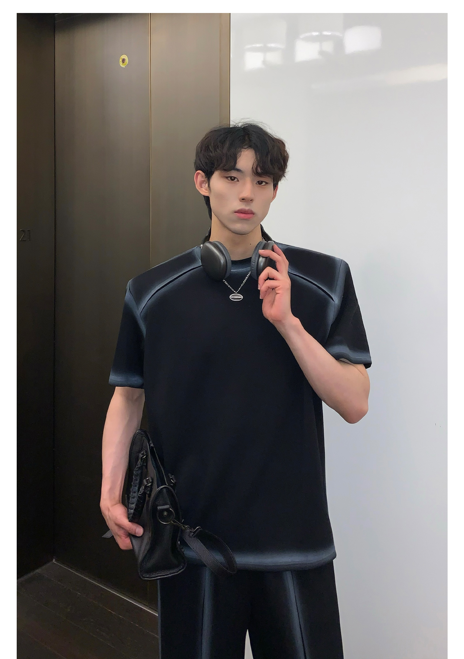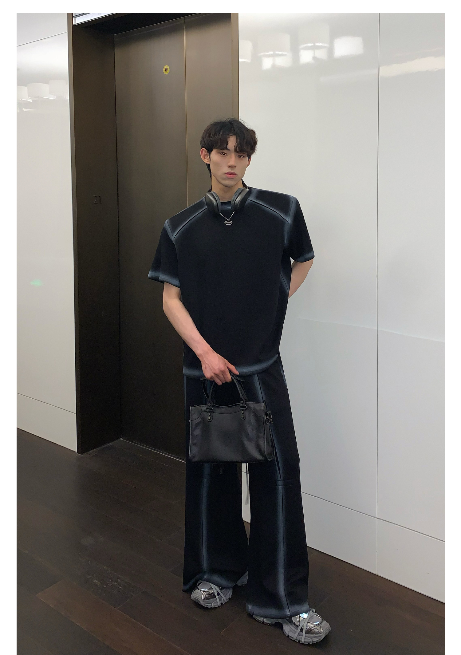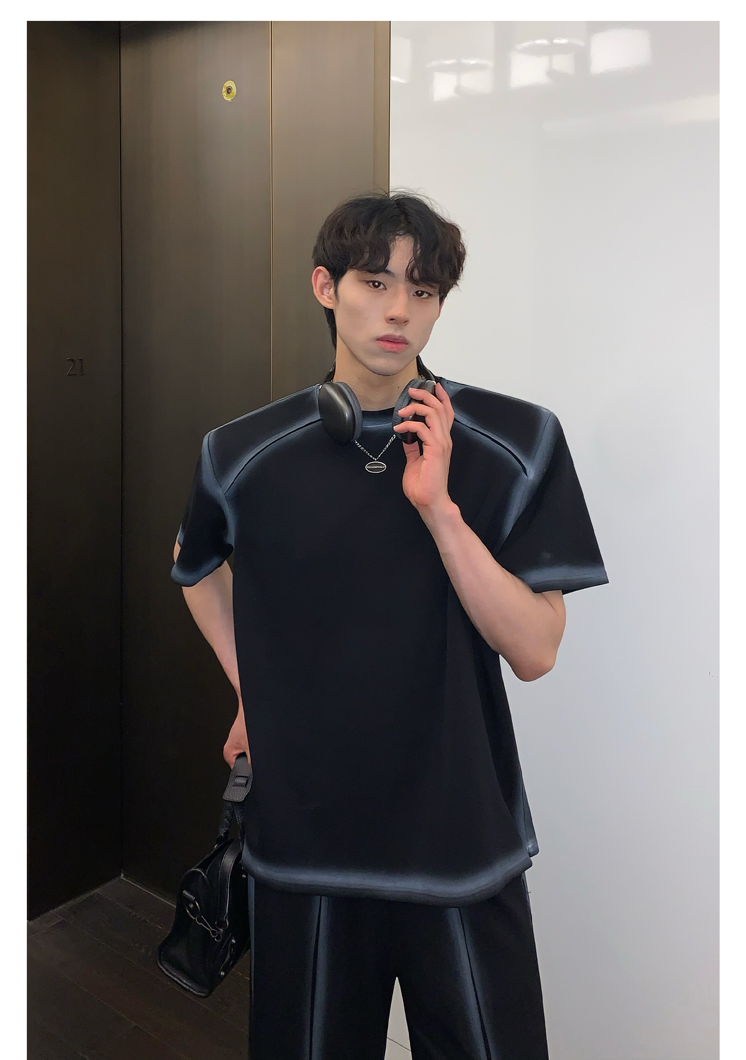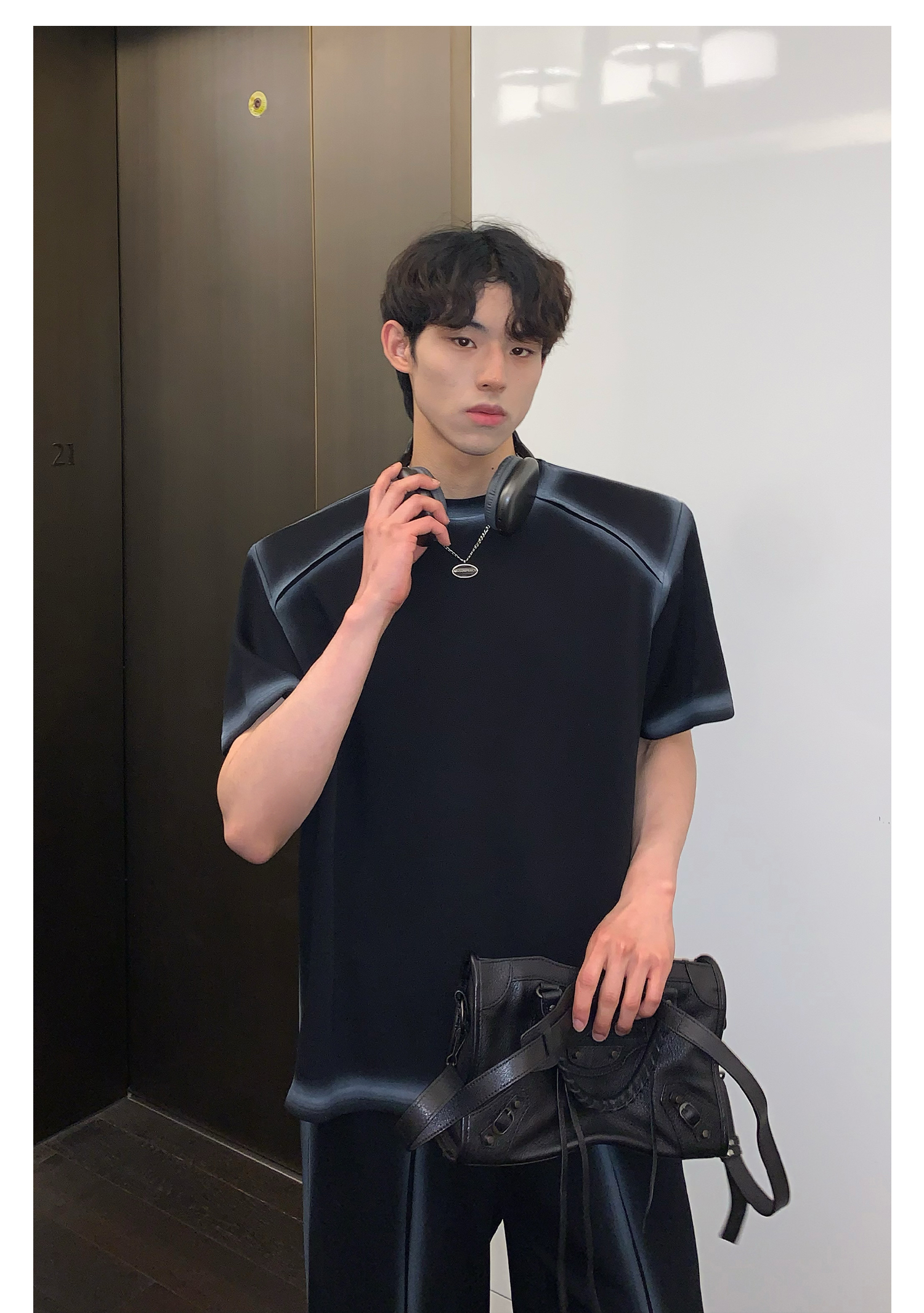 cuibuju 韩国喷染做旧设计感宽松垫肩T恤高腰 潮男休闲裤搭配套装