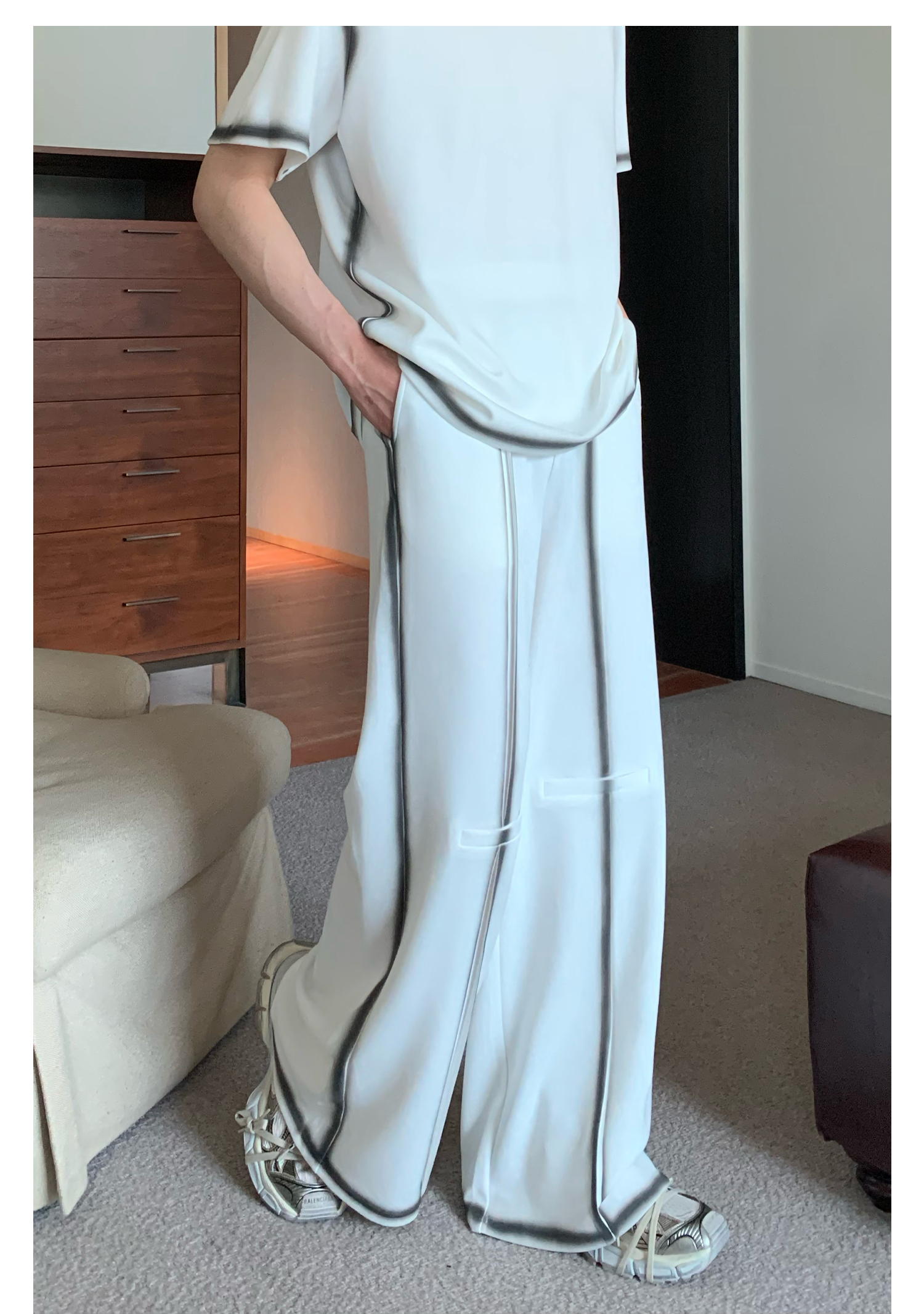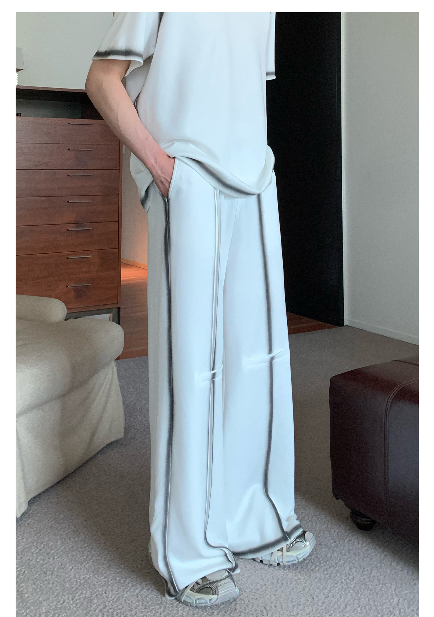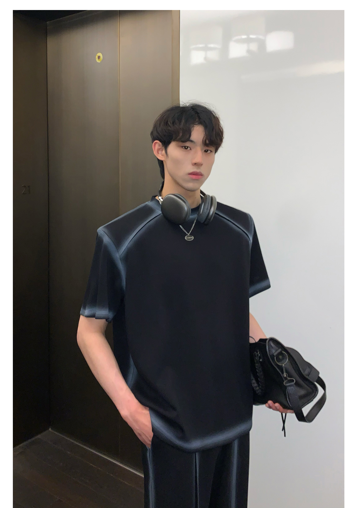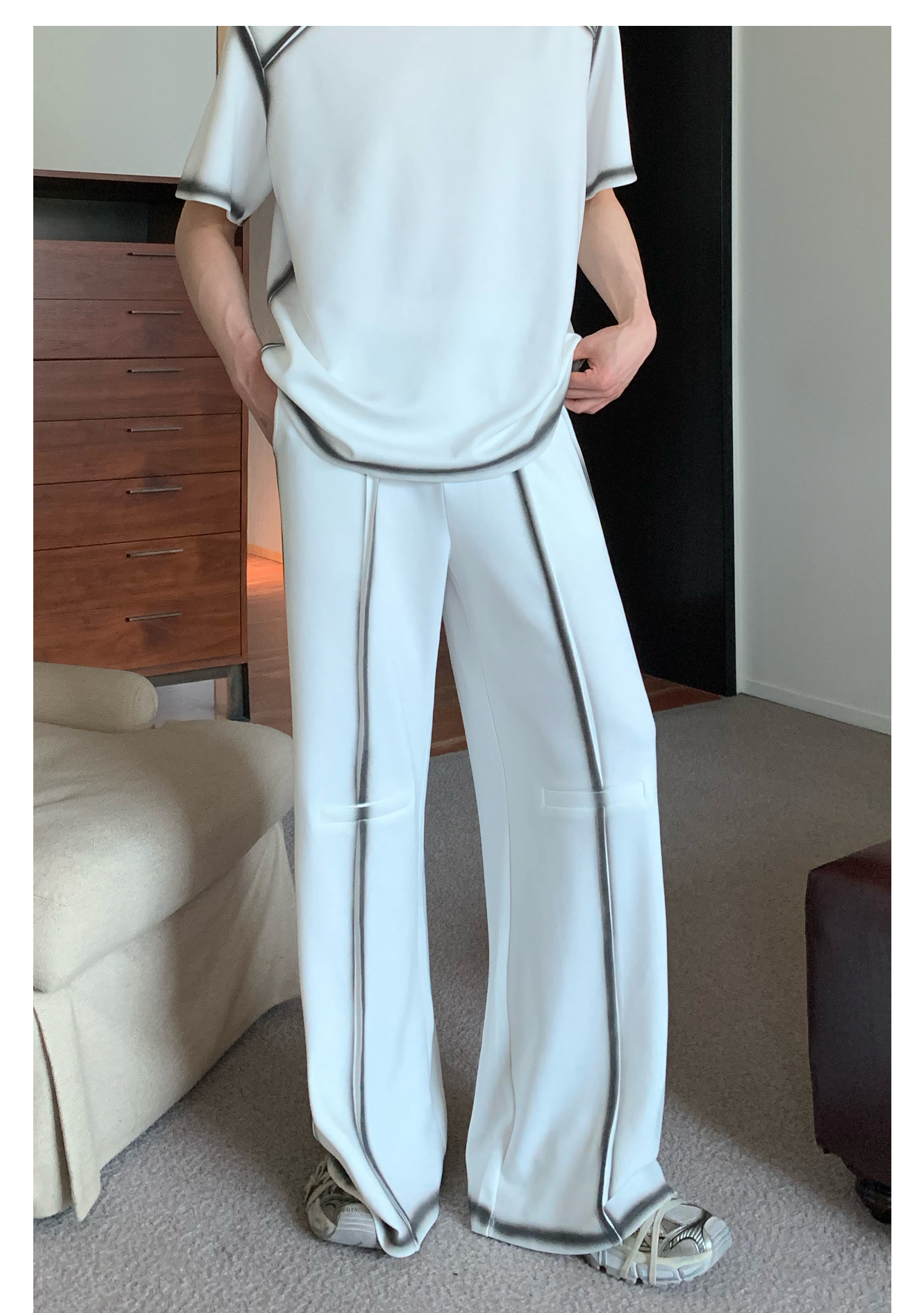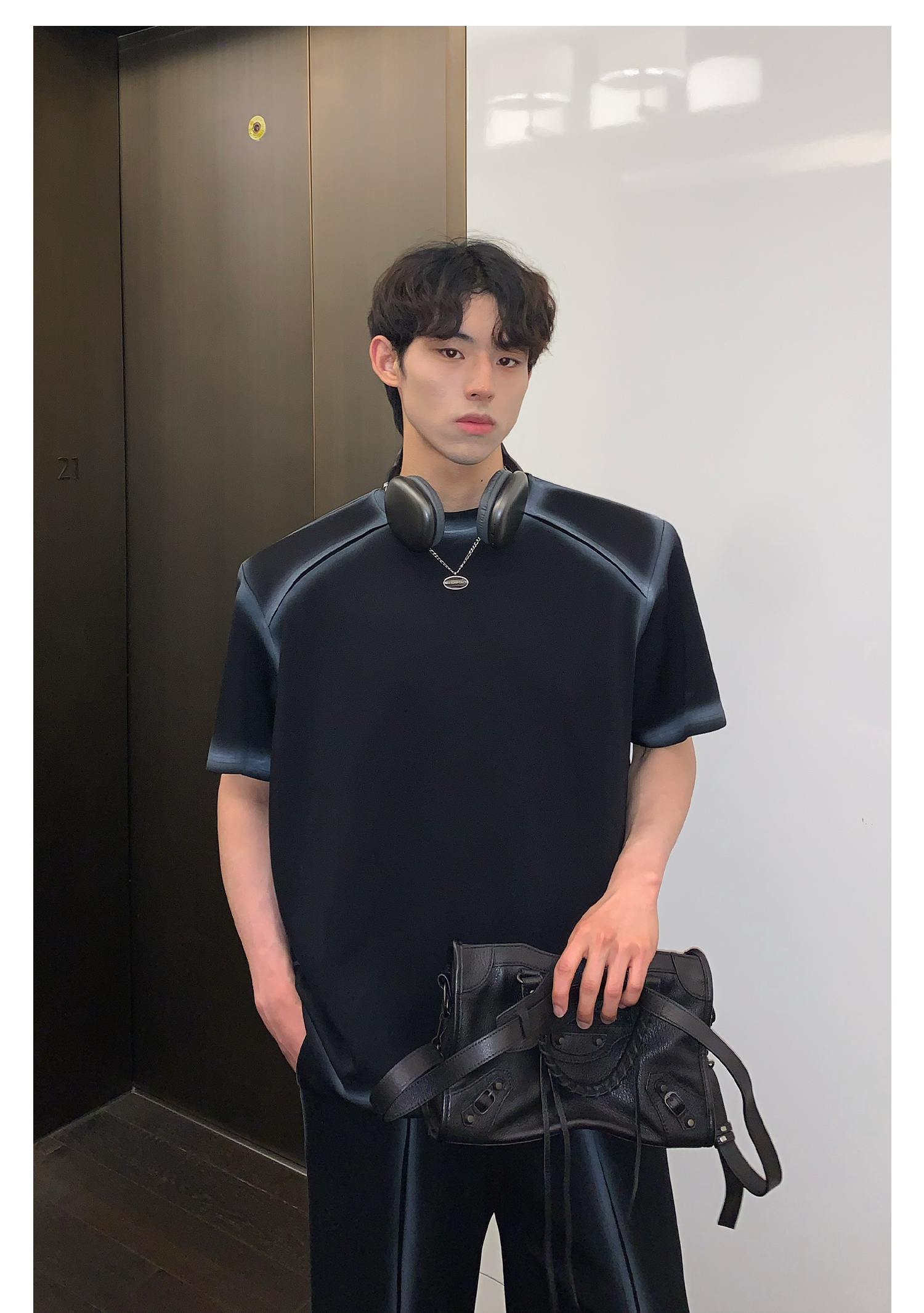 cuibuju 韩国喷染做旧设计感宽松垫肩T恤高腰 潮男休闲裤搭配套装