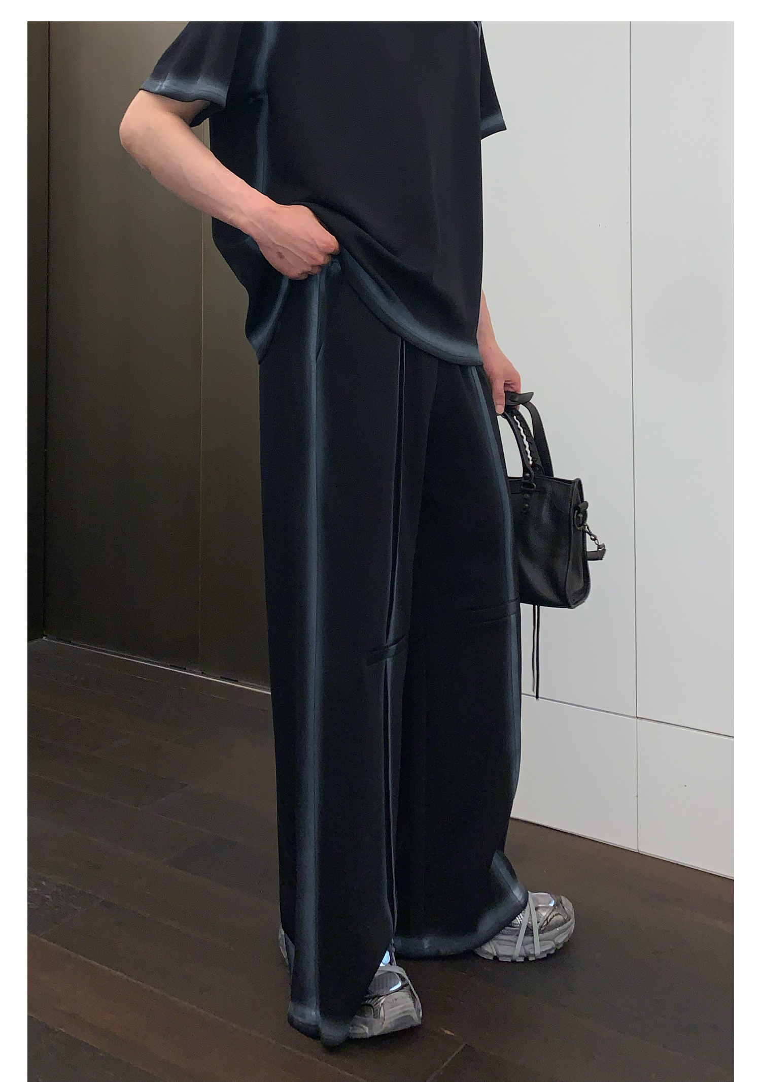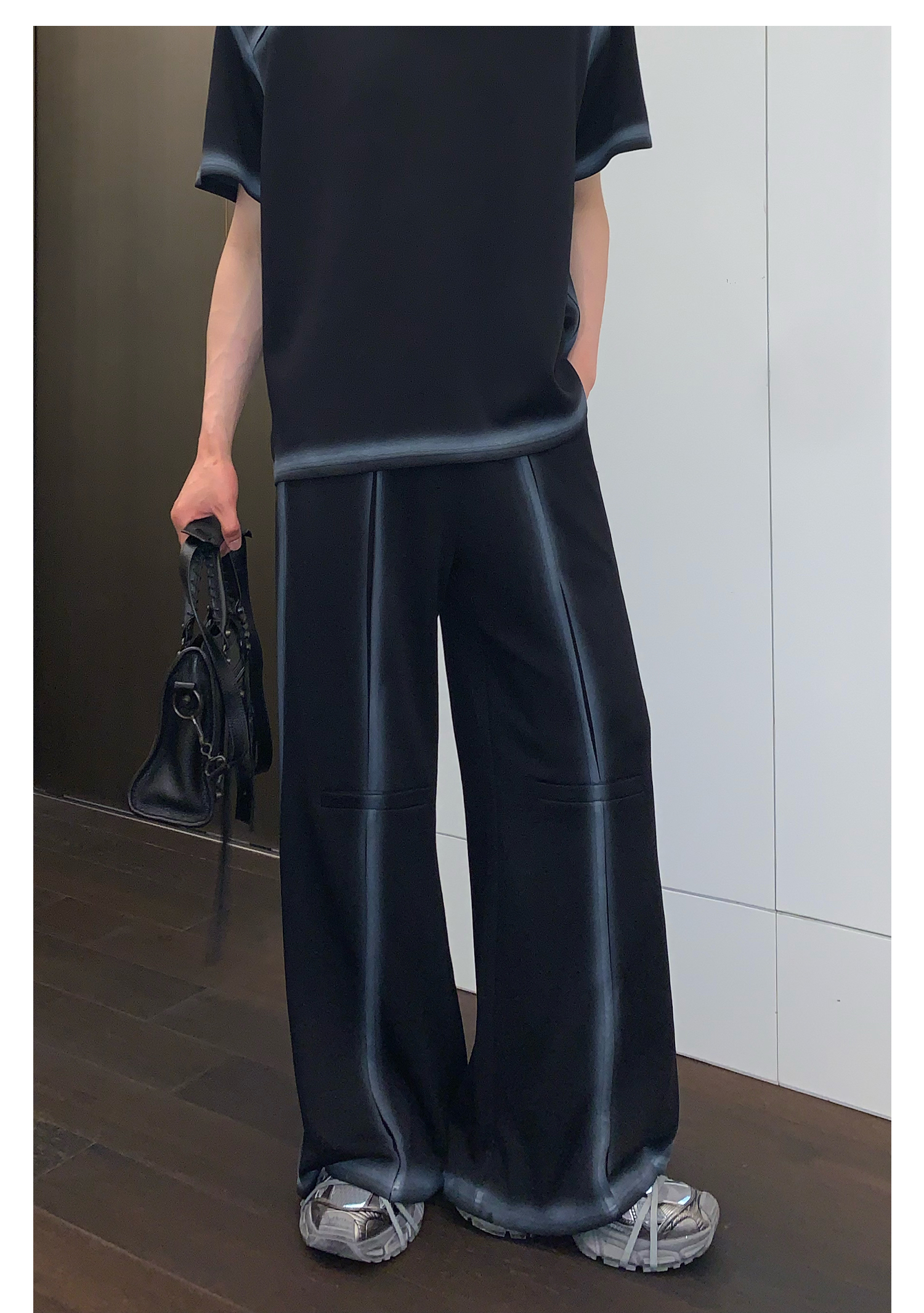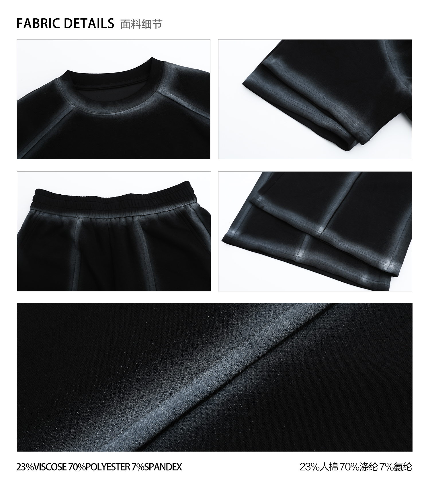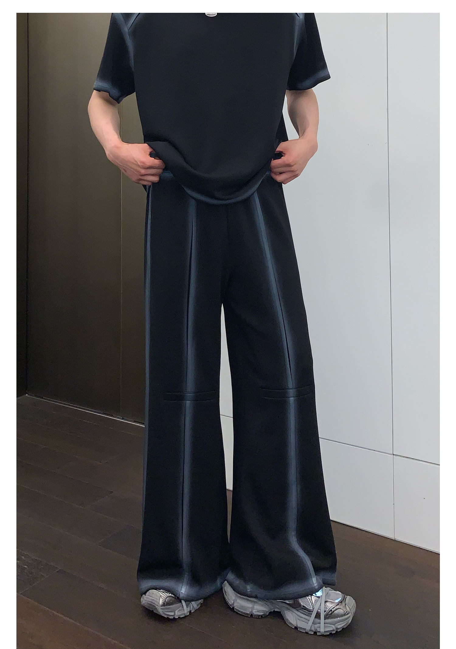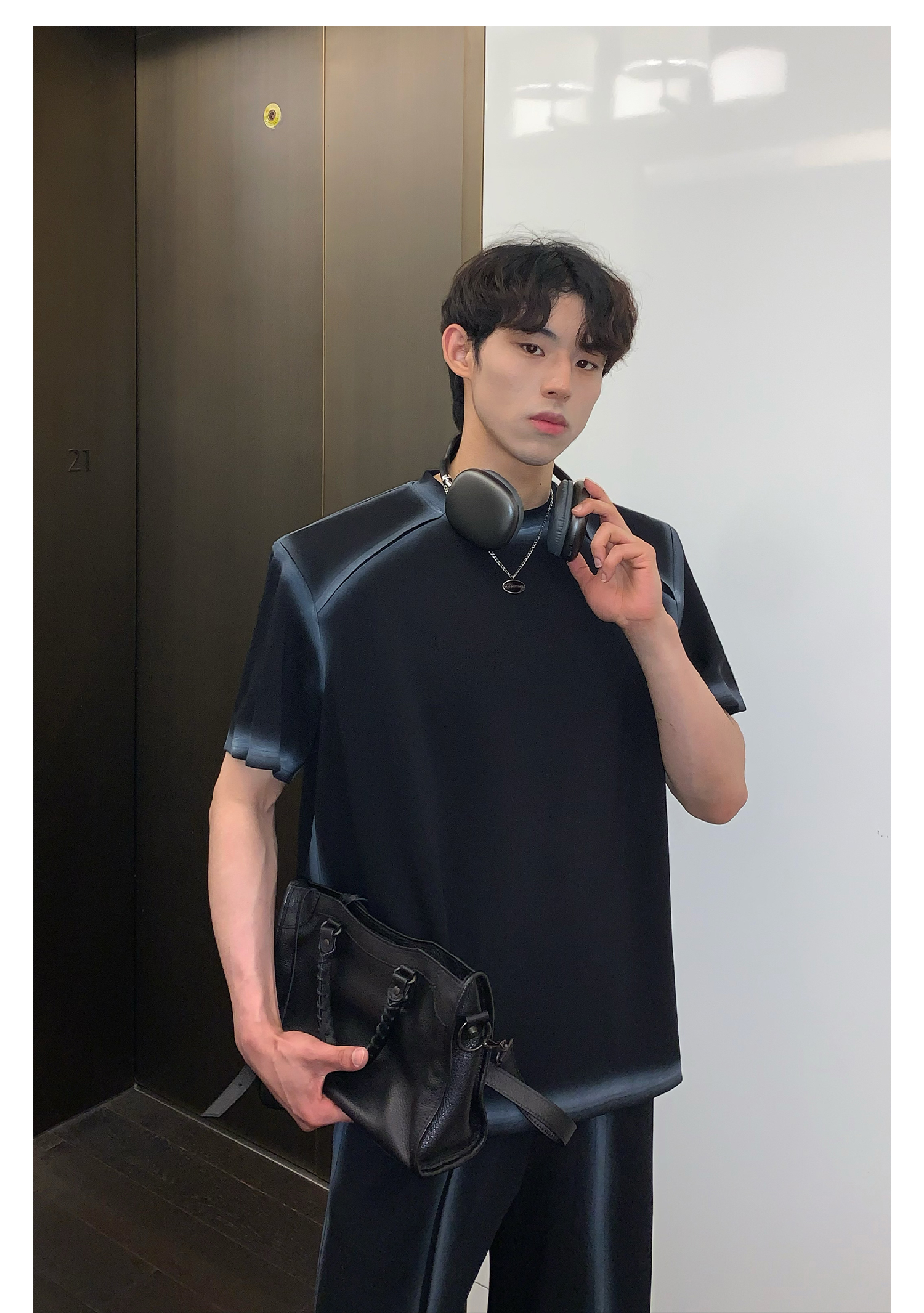 cuibuju 韩国喷染做旧设计感宽松垫肩T恤高腰 潮男休闲裤搭配套装