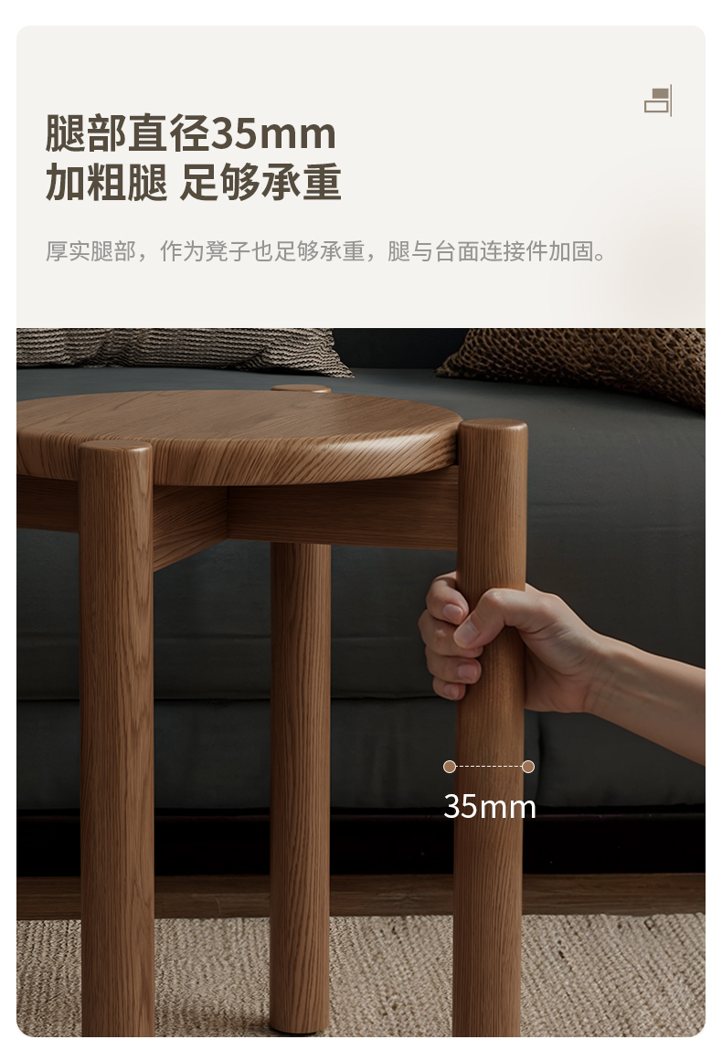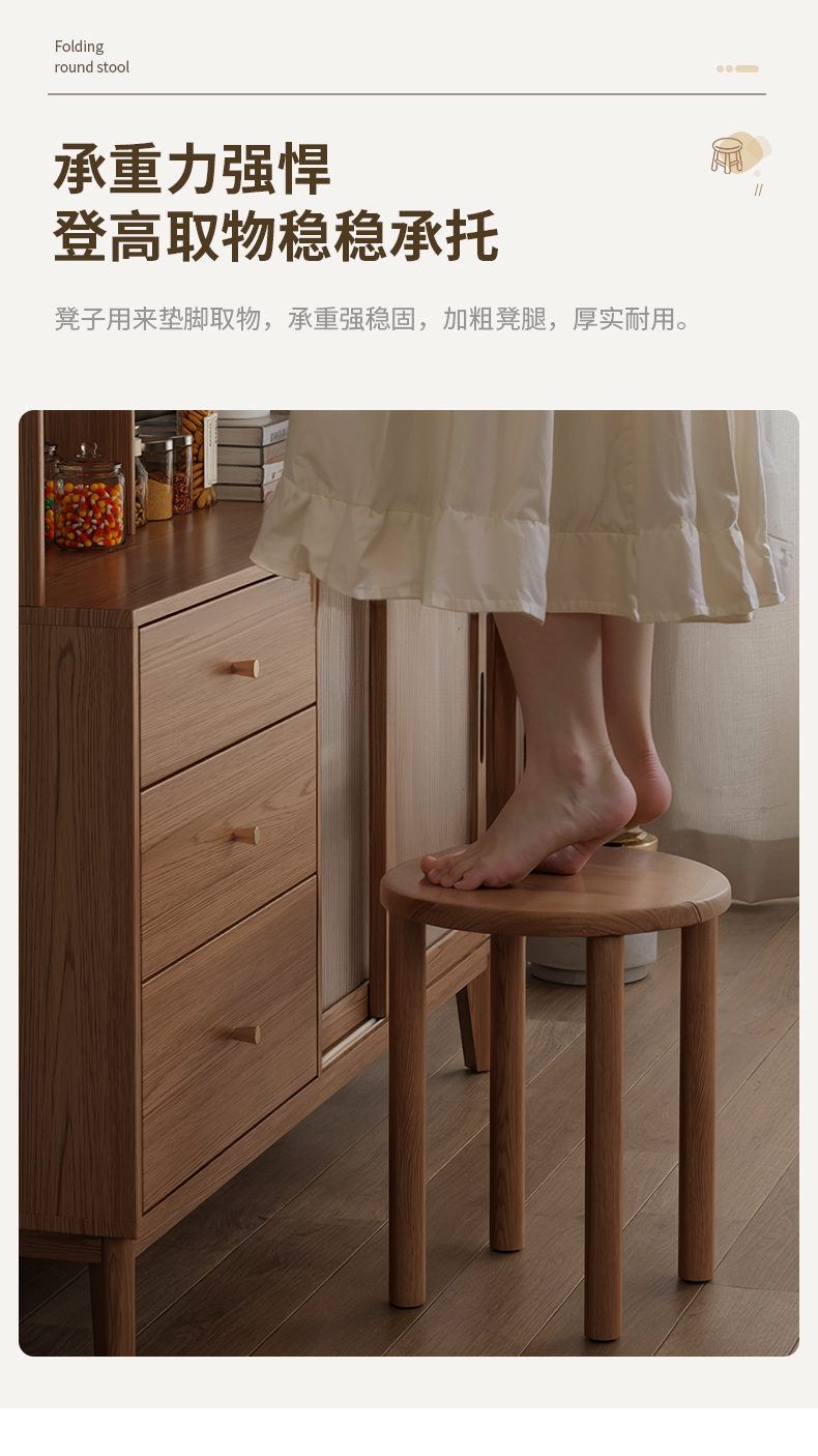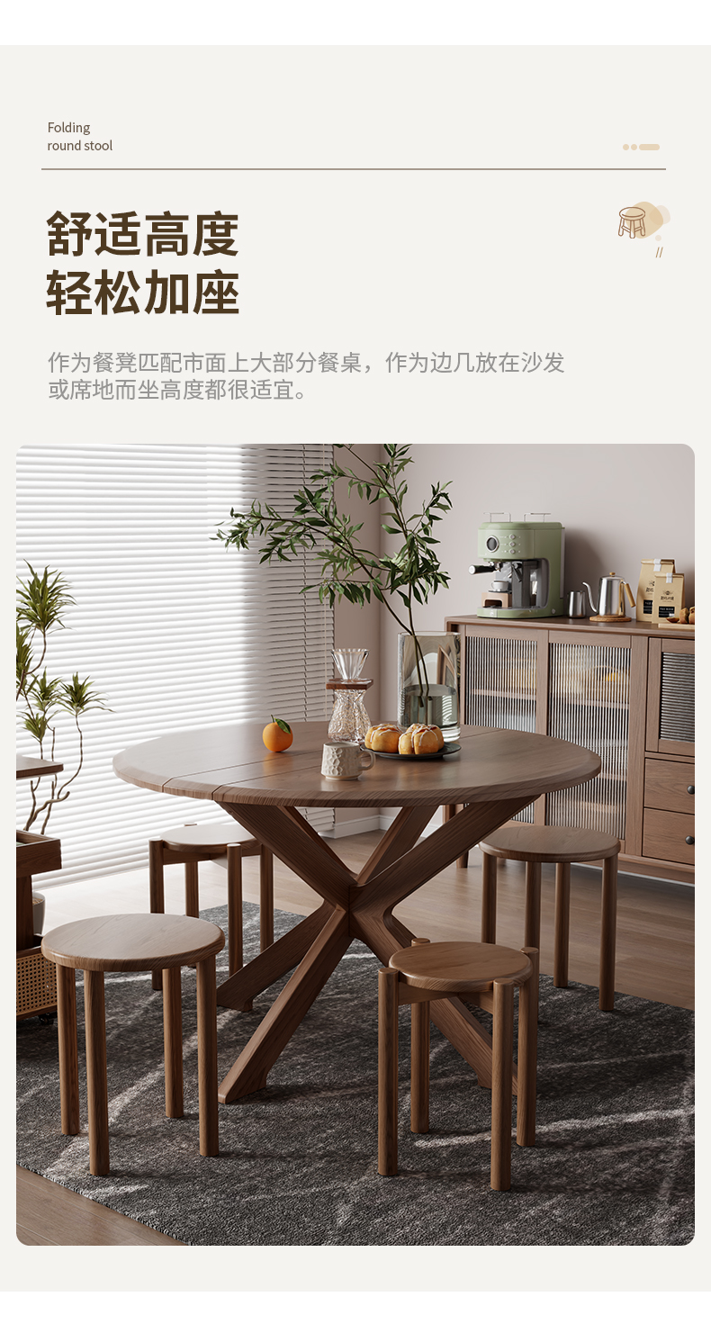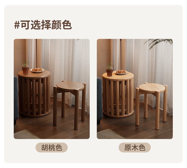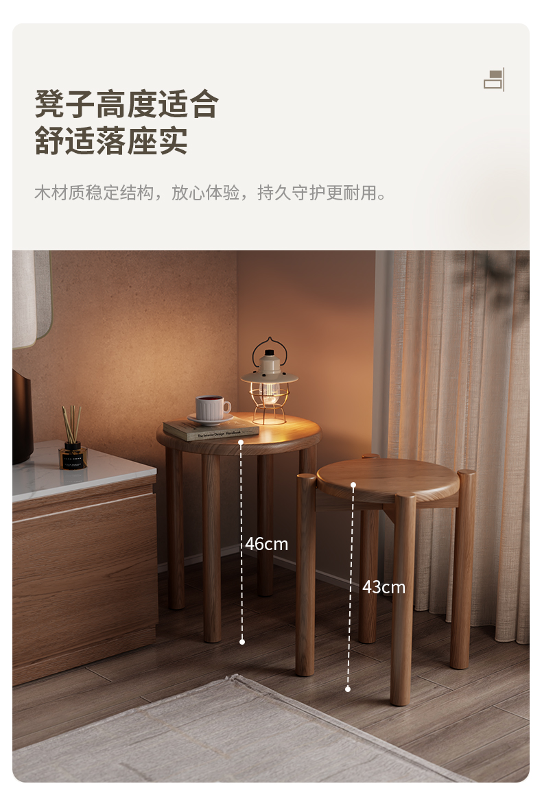冬木实木凳子圆凳可叠放家用矮凳客厅多功能组合边几餐桌凳叠叠乐