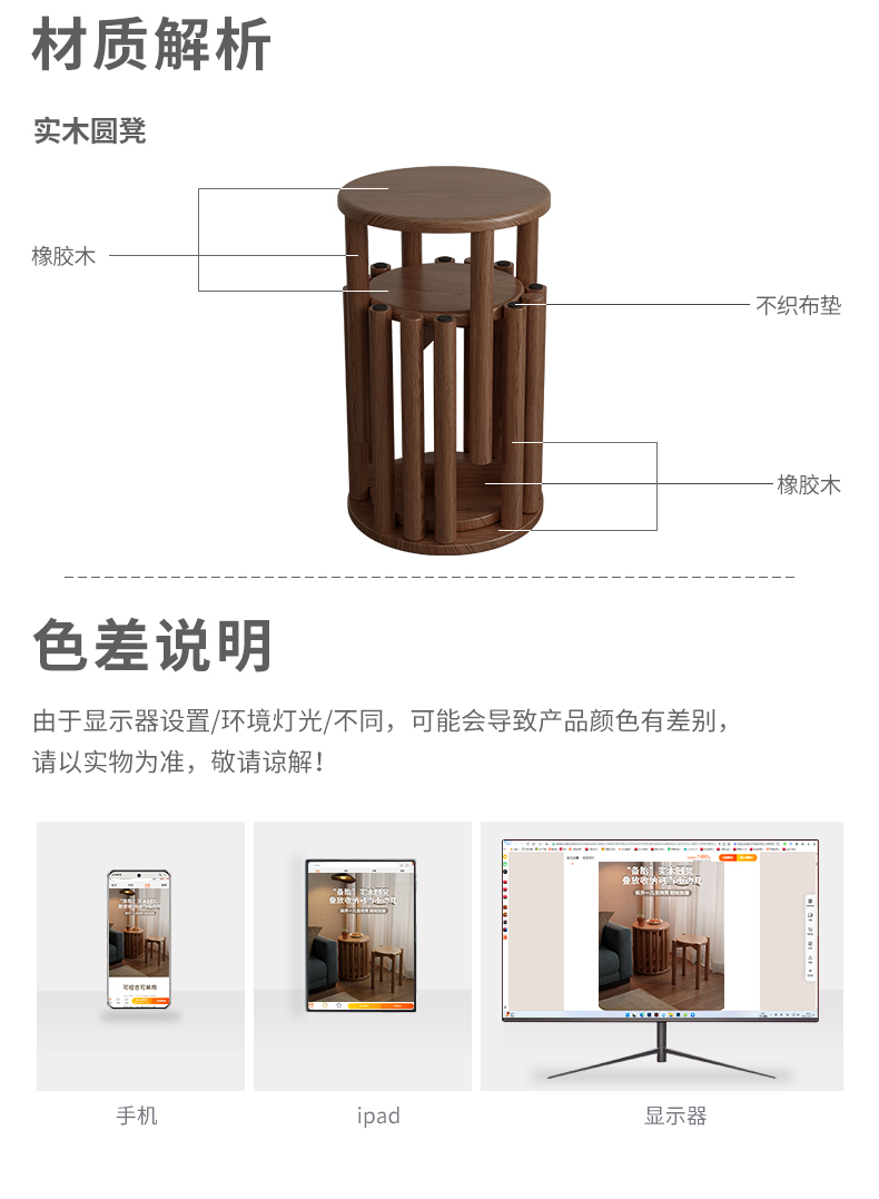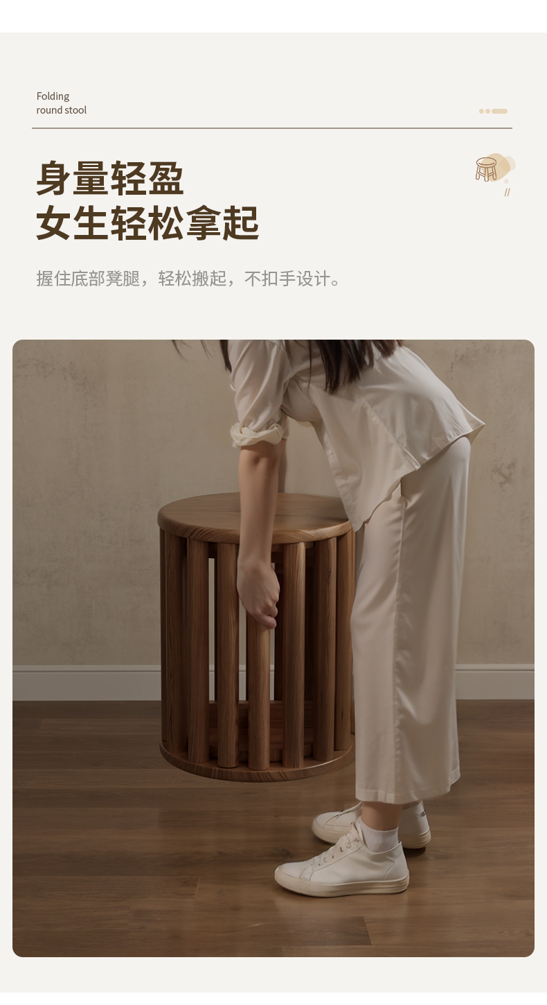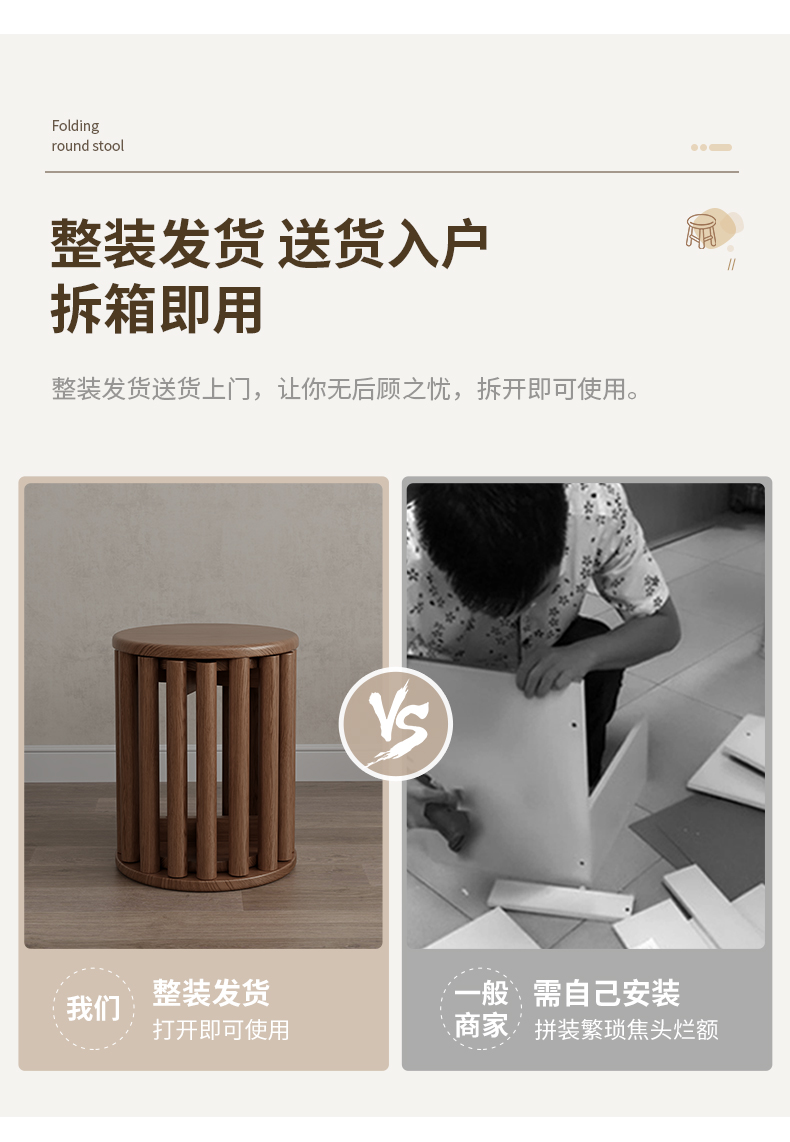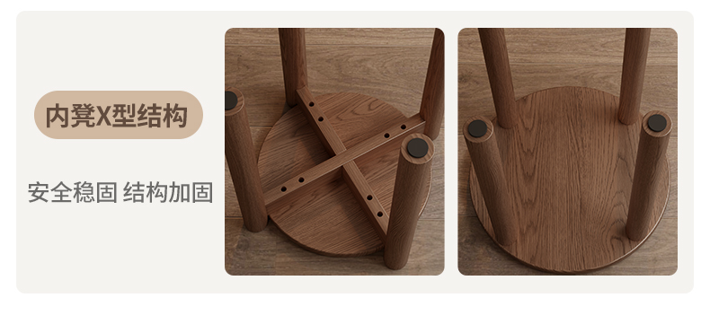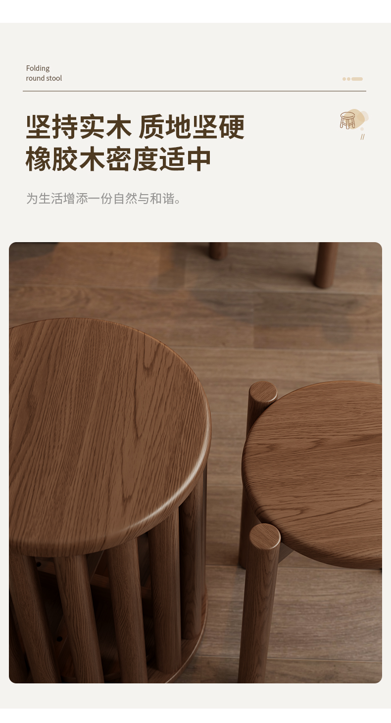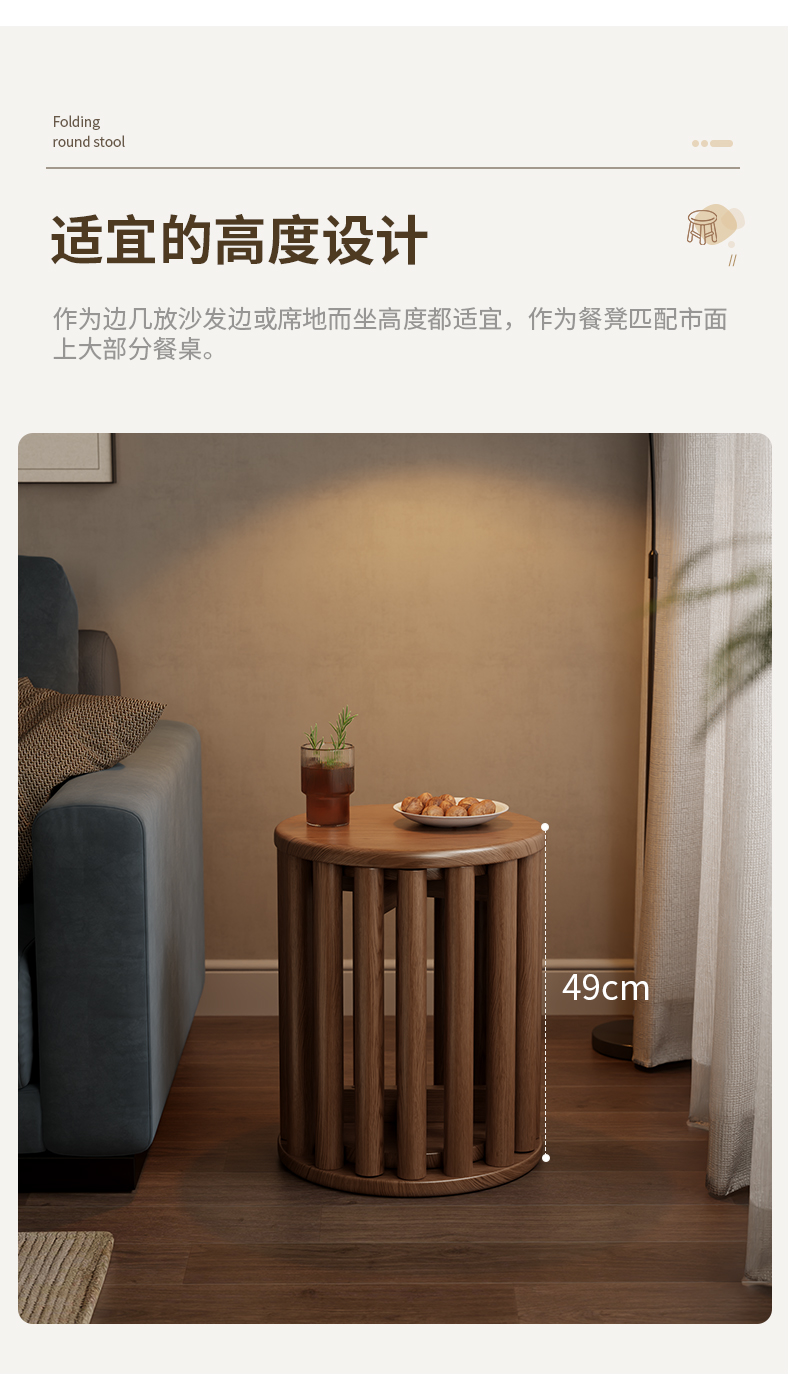 冬木实木凳子圆凳可叠放家用矮凳客厅多功能组合边几餐桌凳叠叠乐