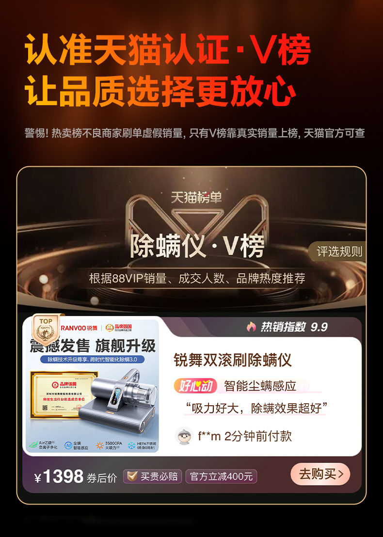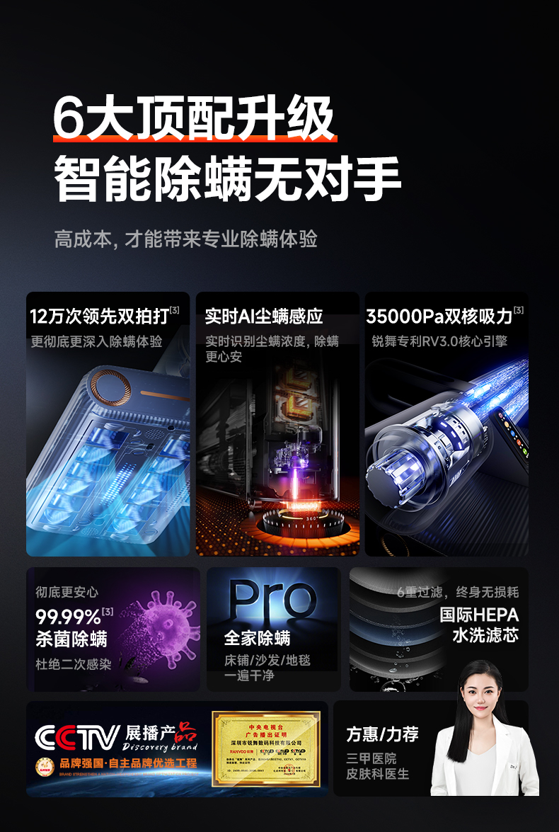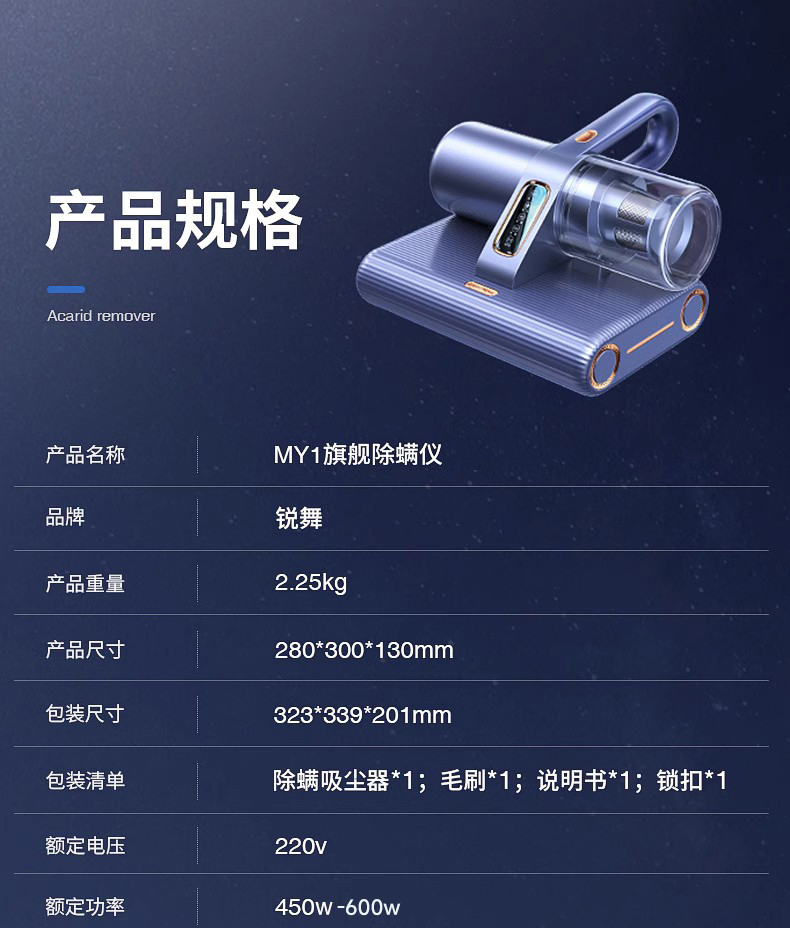 锐舞除螨仪家用床上吸尘器螨虫神器紫外杀菌机官方旗舰大吸力无线