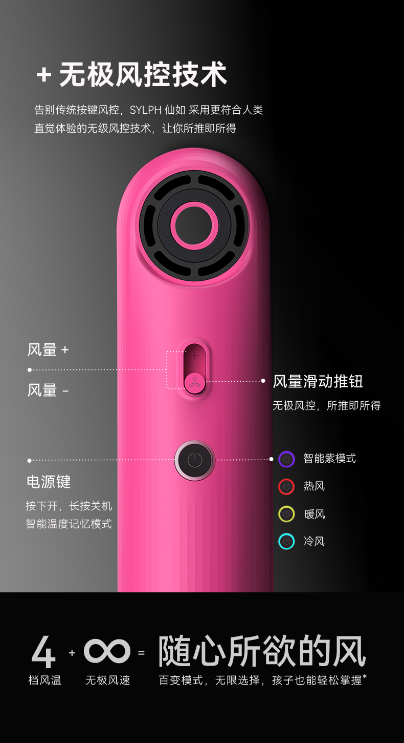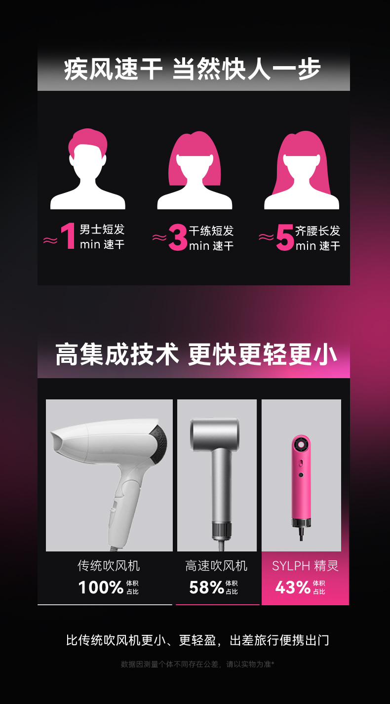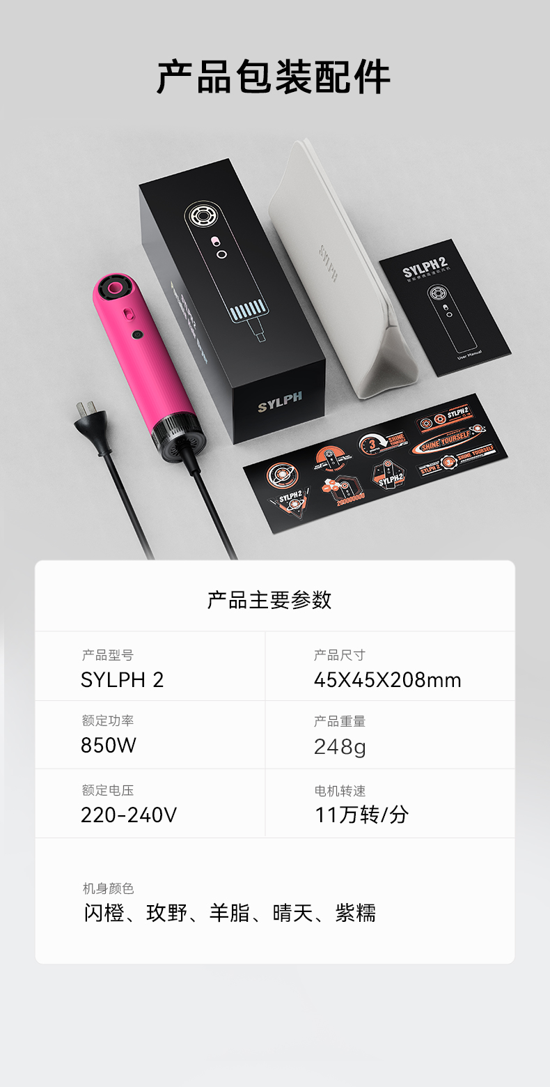 SYLPH仙如精灵2代便携高速电吹风机小型迷你负离子智能旅行小风筒