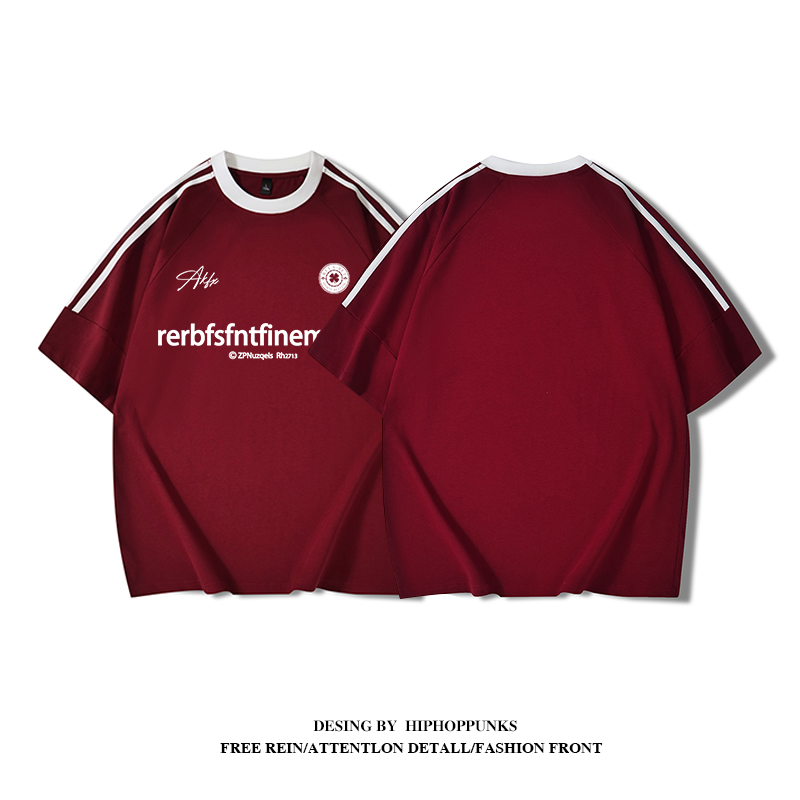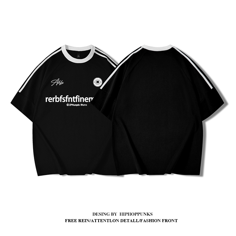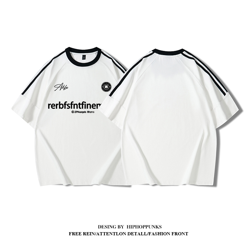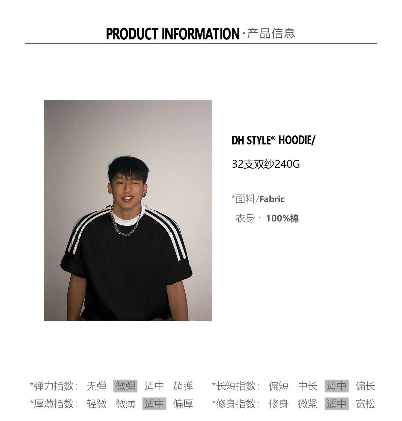 HIP潮牌美式三杠条纹短袖t恤男夏季新款设计感百搭宽松重磅上衣