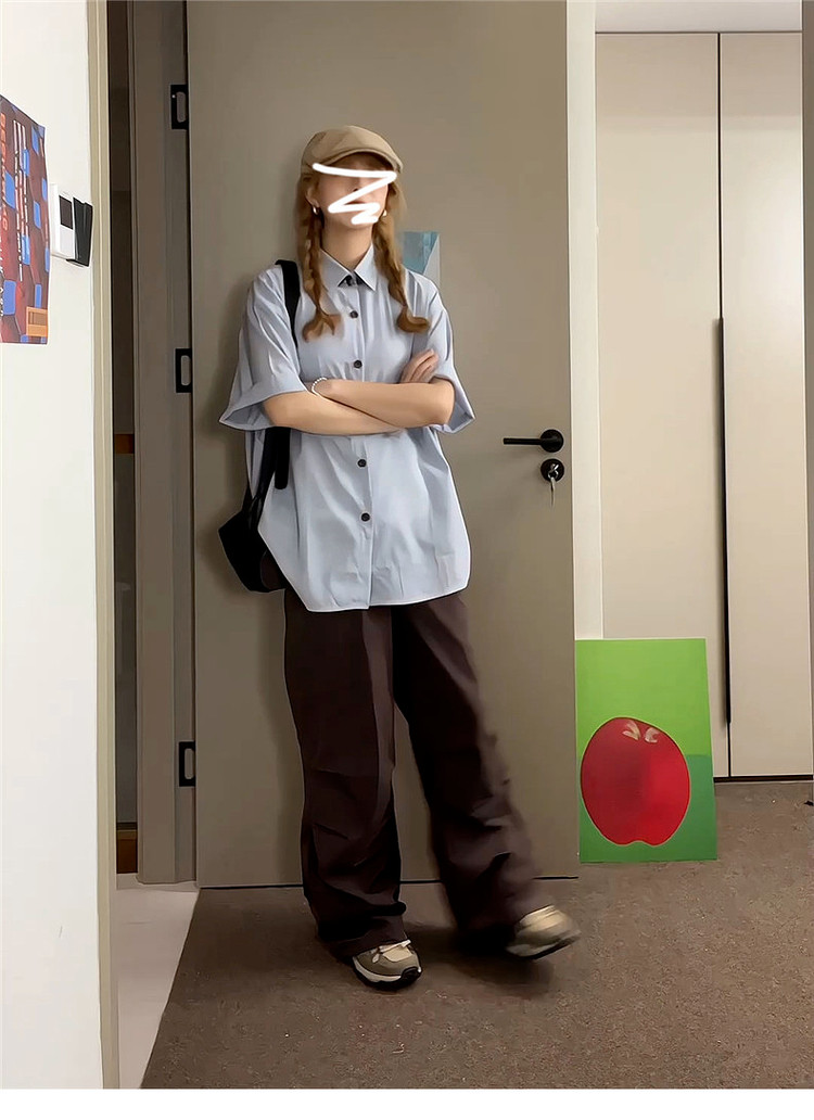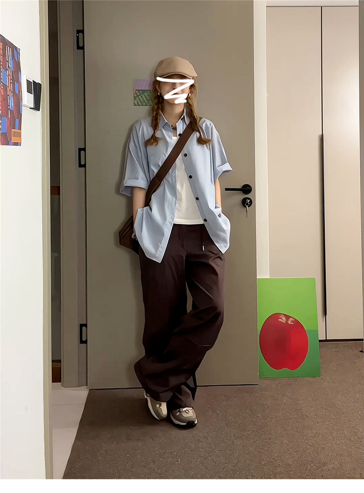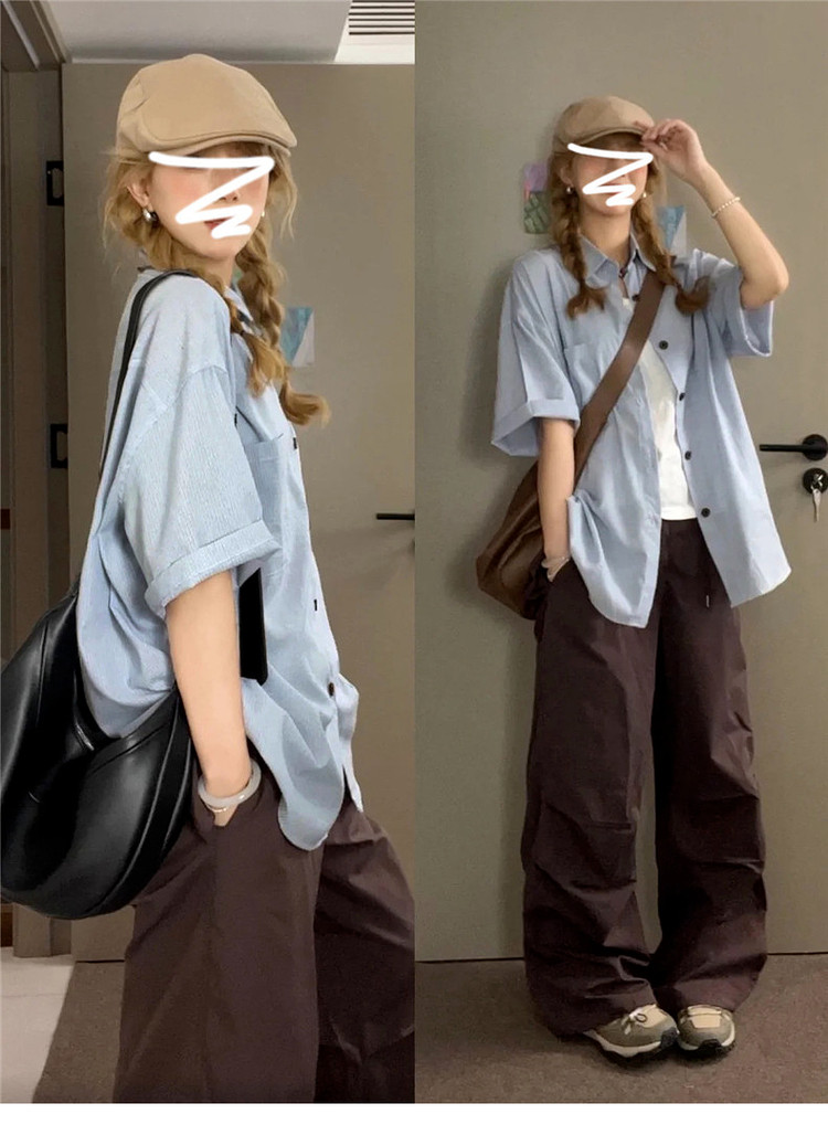 蓝色防晒短袖衬衫外套女夏季2024新款高级感宽松衬衣法式气质上衣