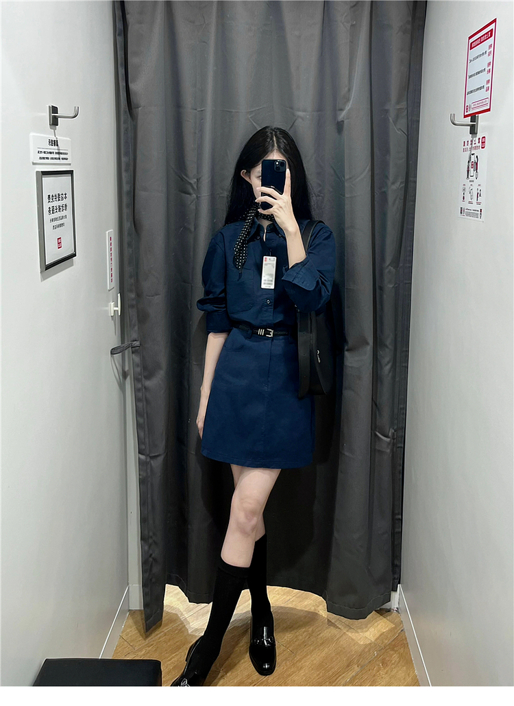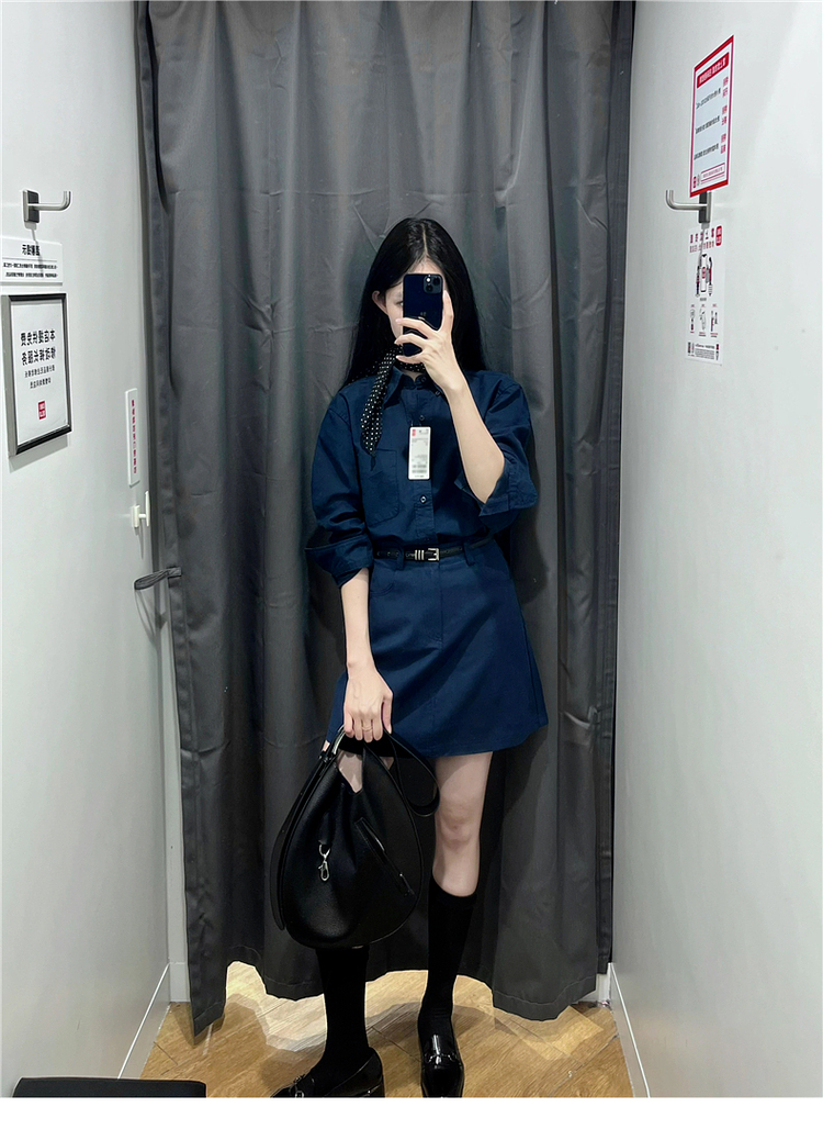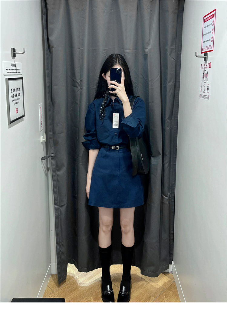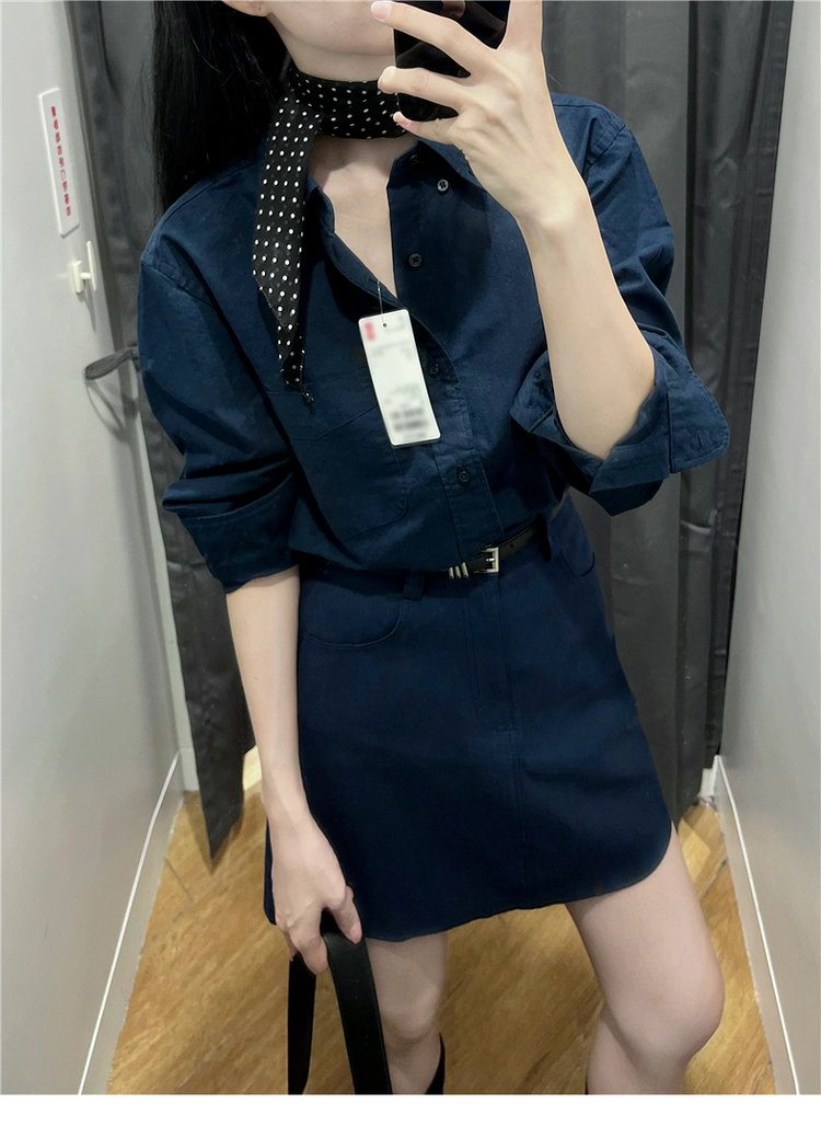 法式气质小个子蓝色收腰衬衫连衣裙子女装2024新款夏季高级感短裙
