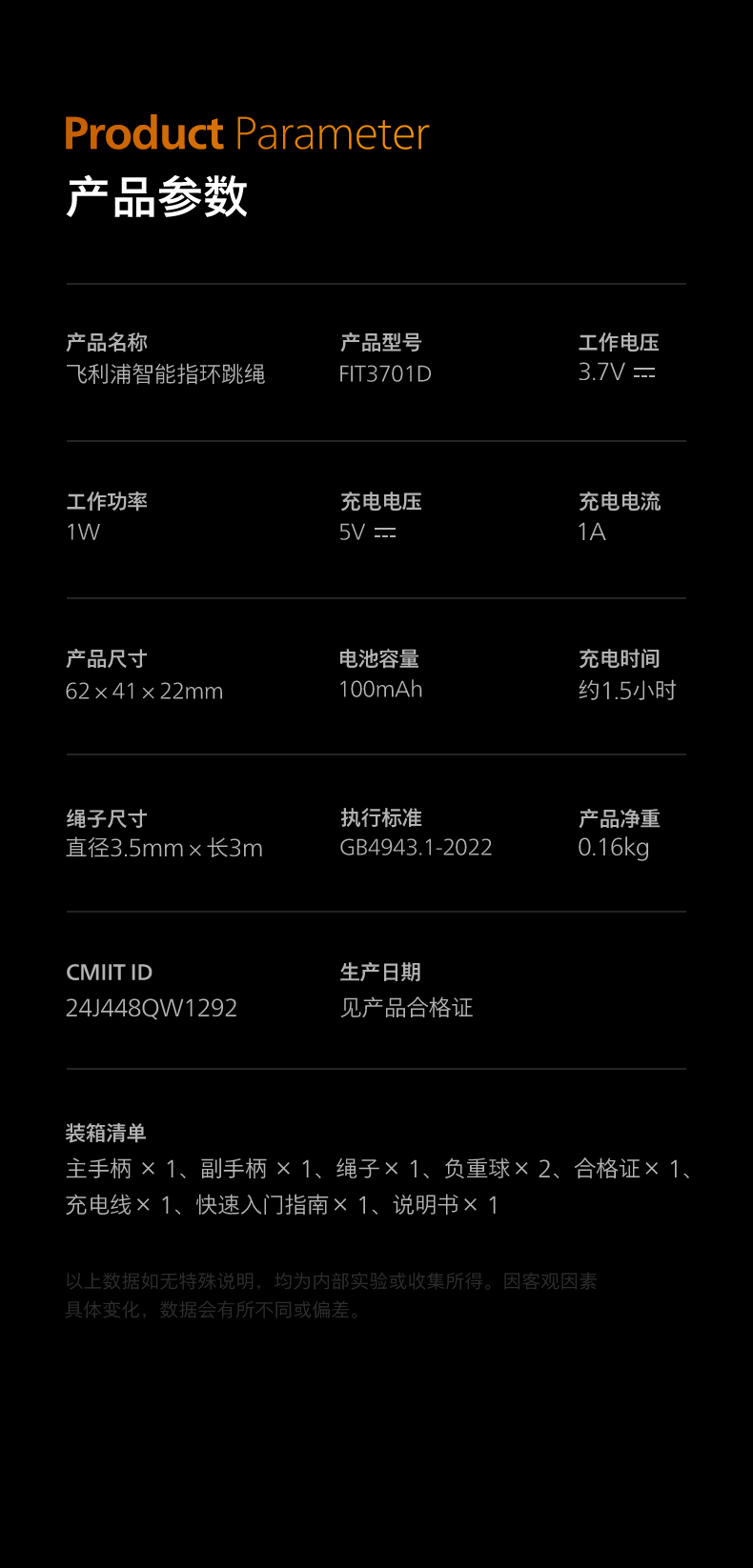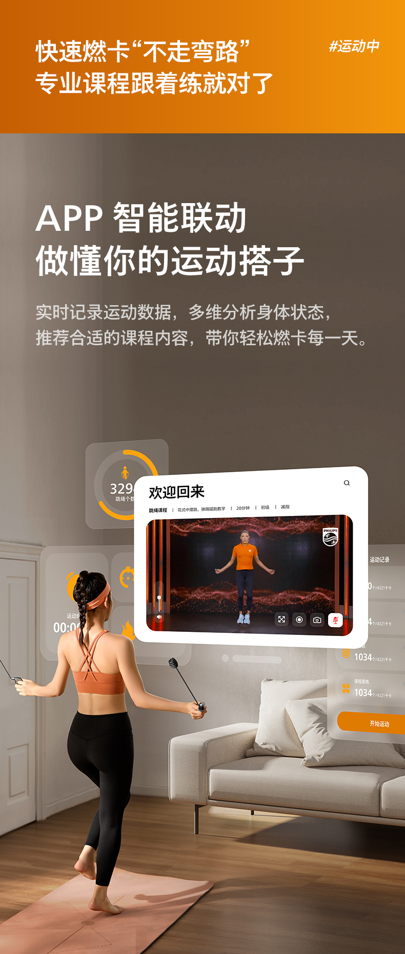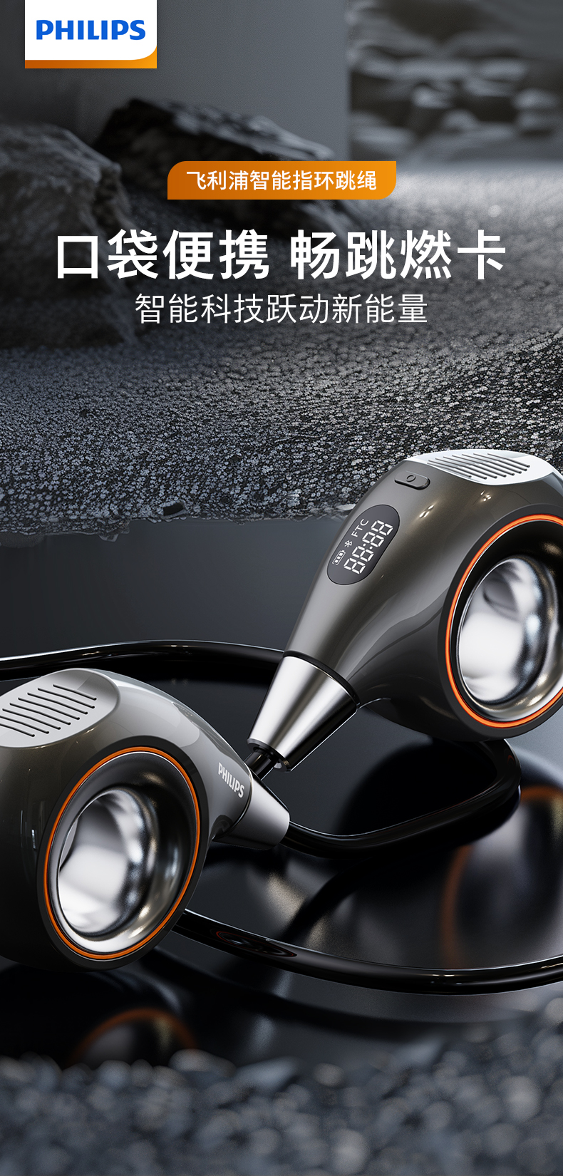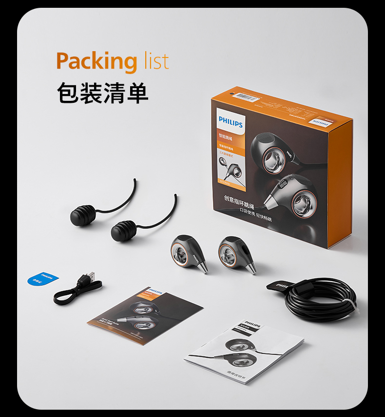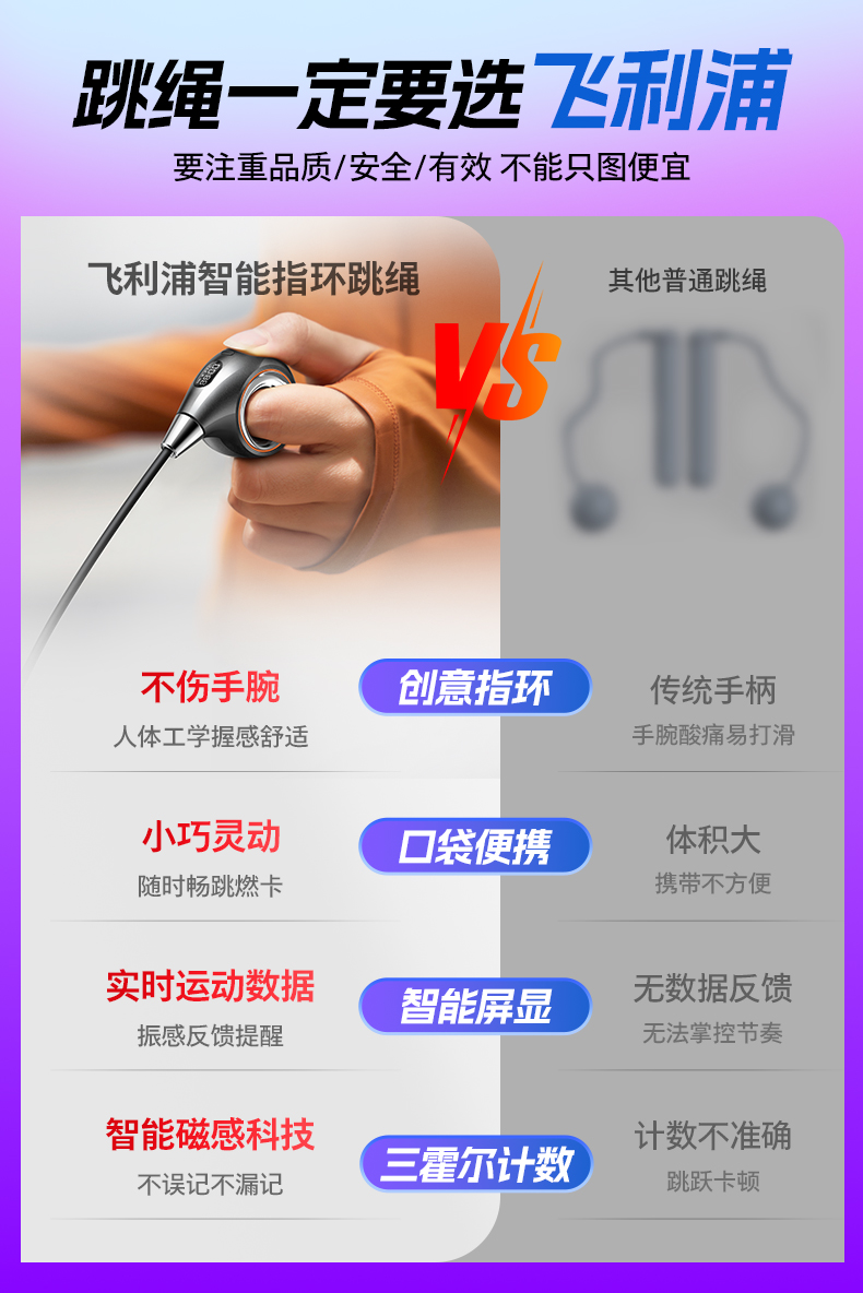 飞利浦智能指环跳绳健身减肥专用女生燃脂无绳款负重计数运动跳绳