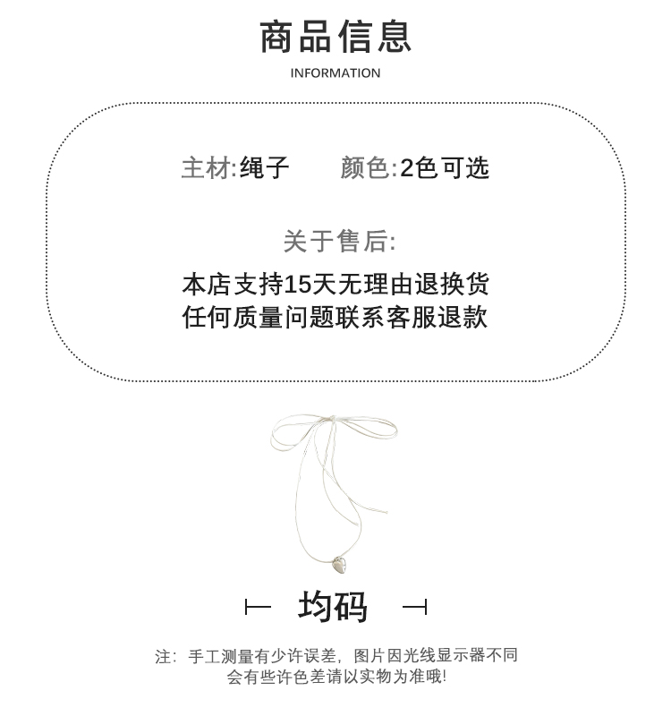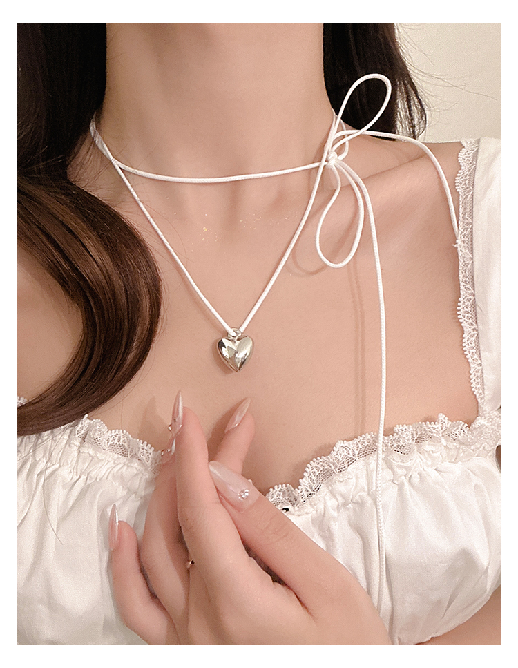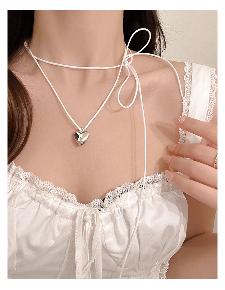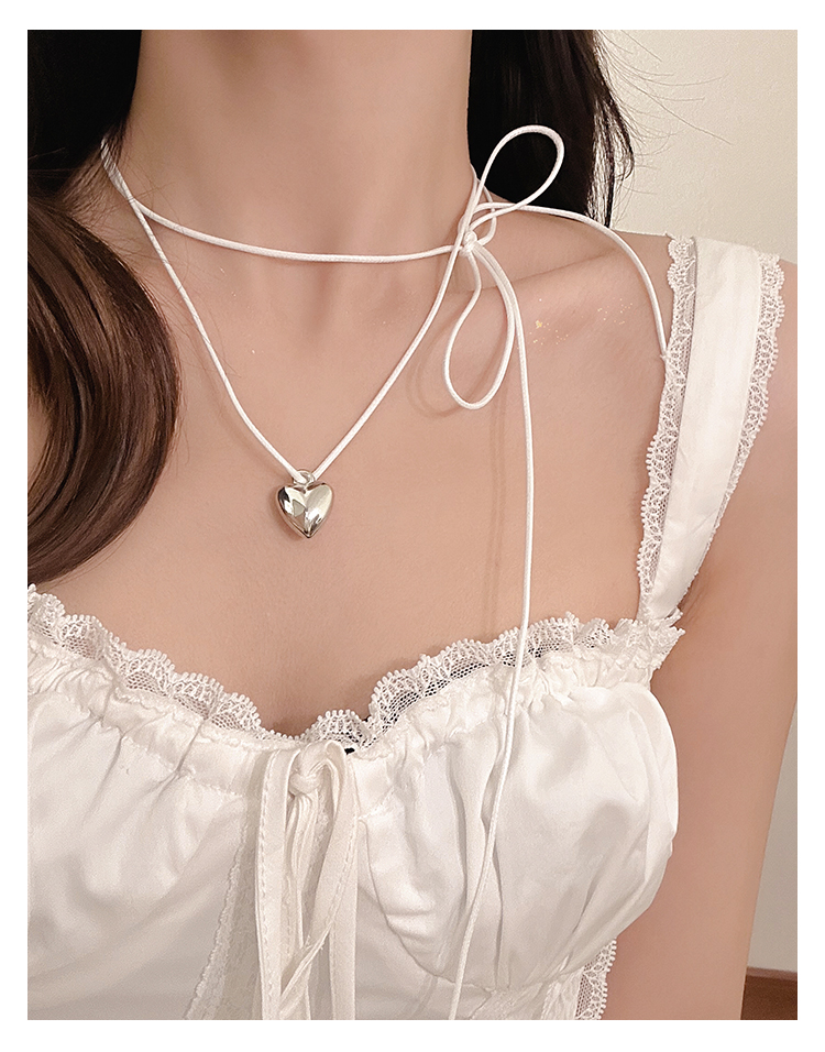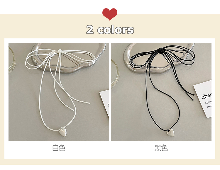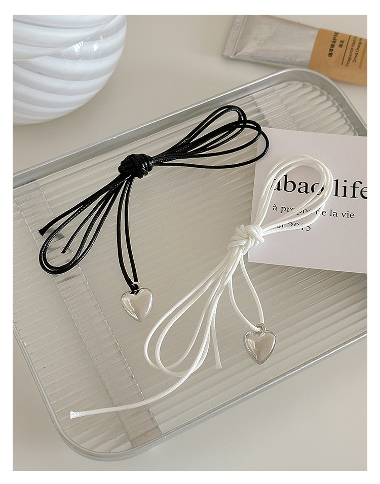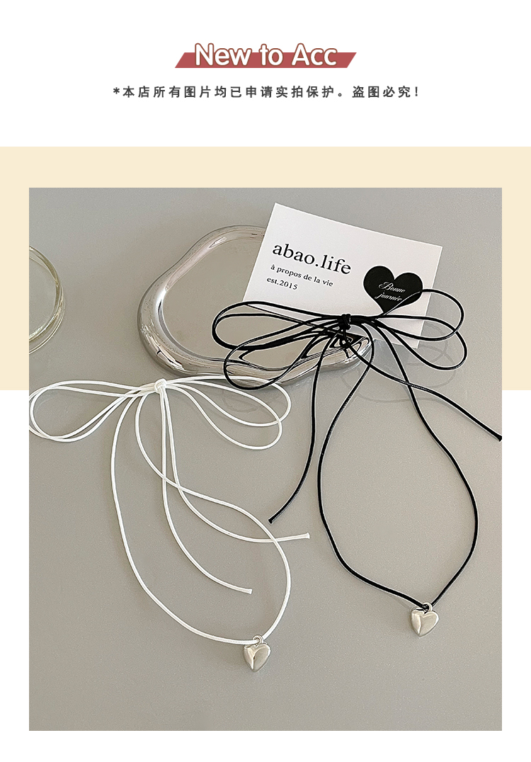 简约百搭爱心吊坠项链女ins风绑带蝴蝶结锁骨链2024新款小众颈饰