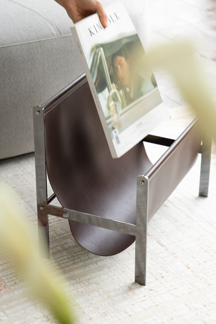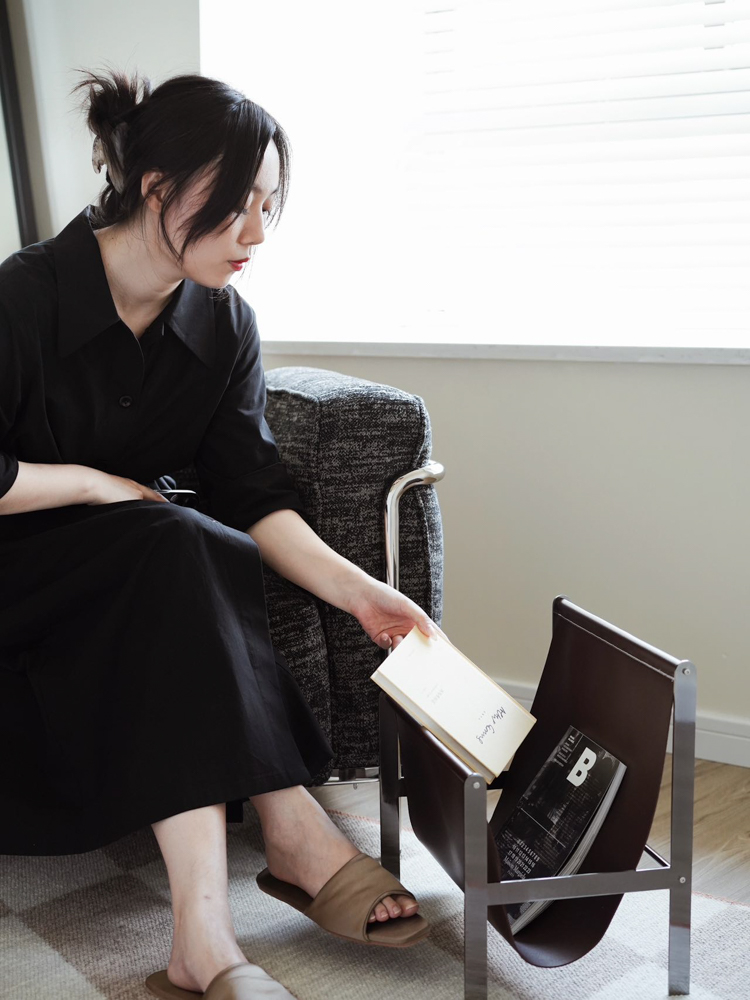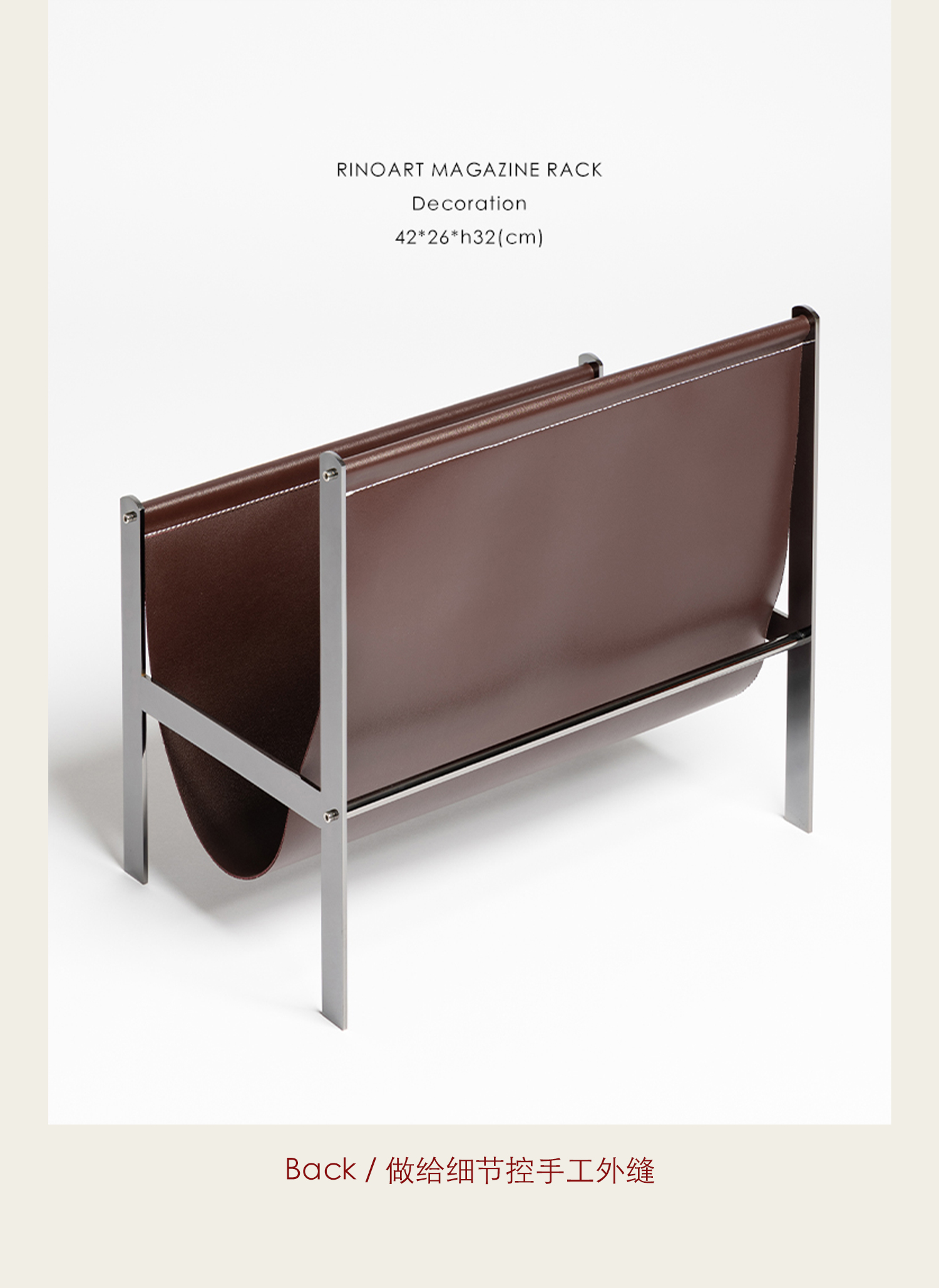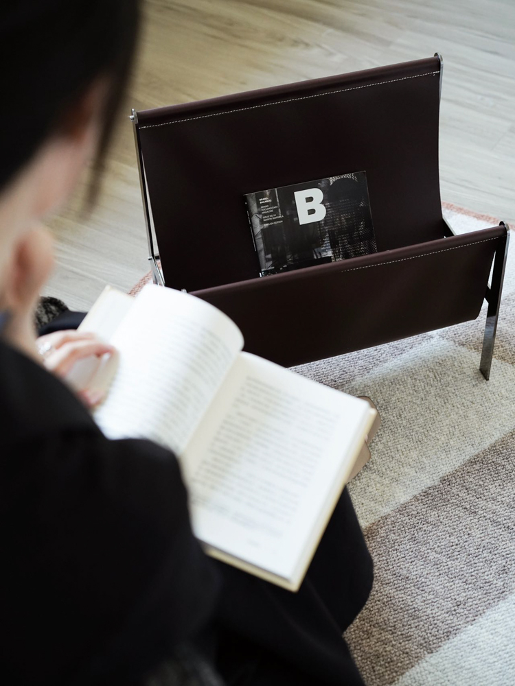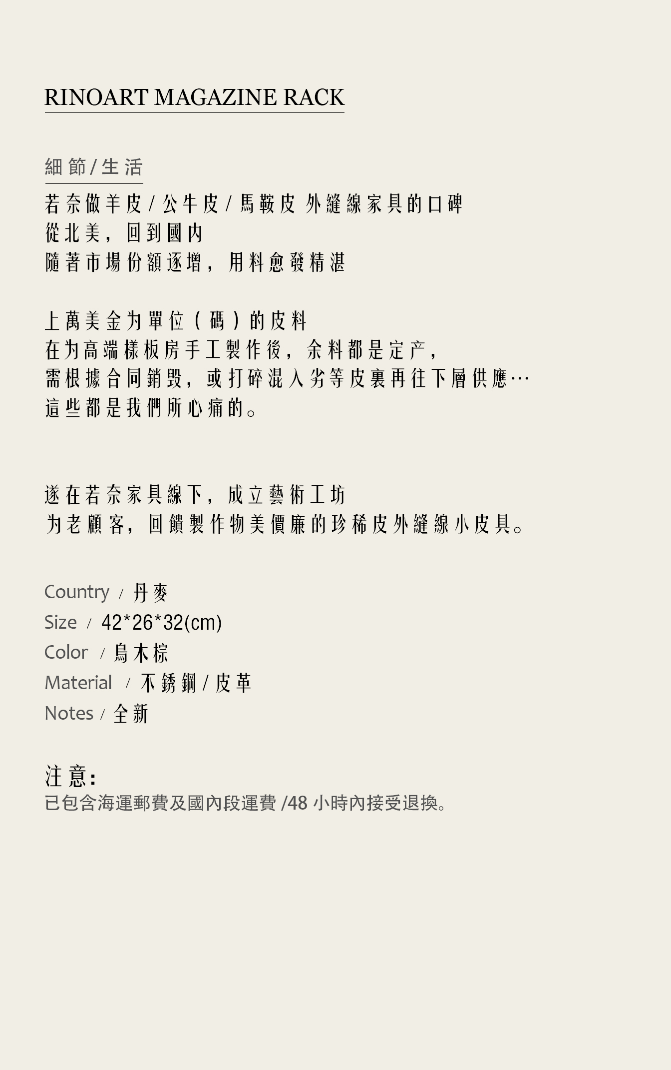 若奈家居 丹麦中古乌木色皮革杂志架书架床头置物架抱枕收纳架
