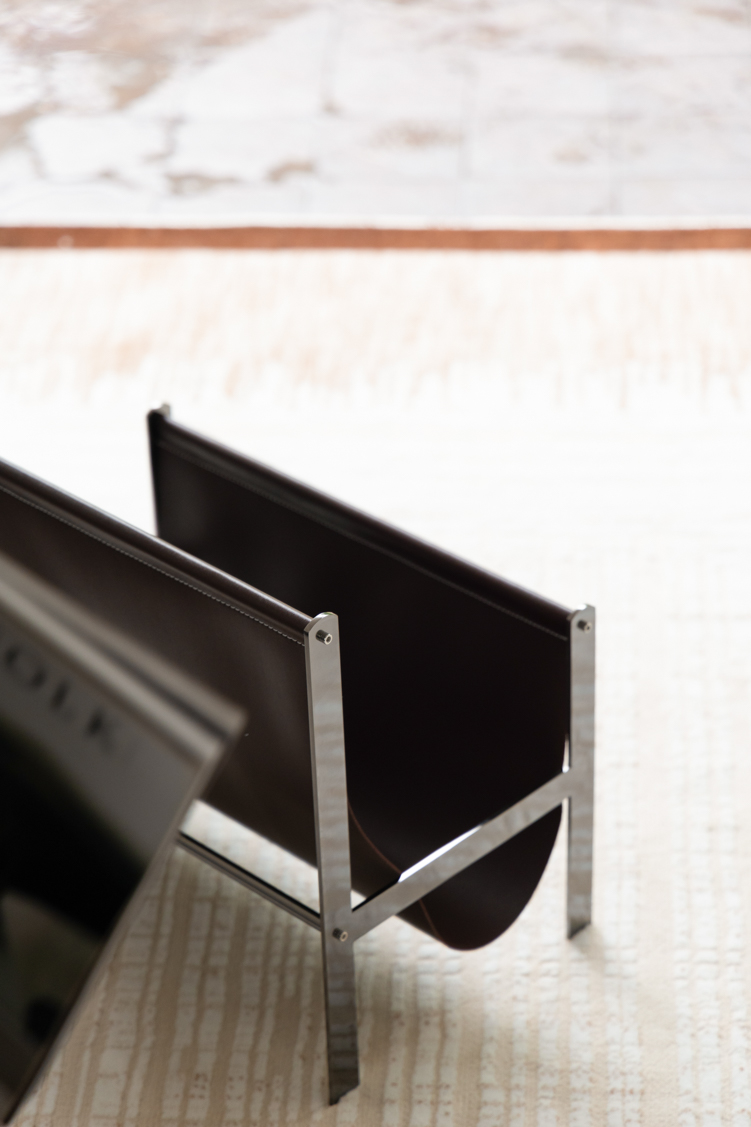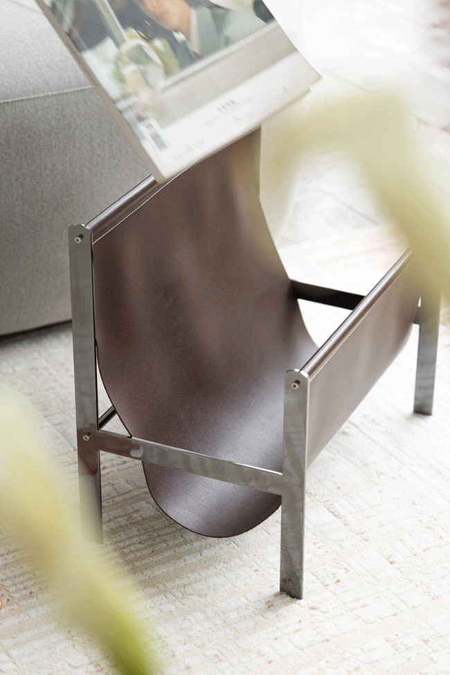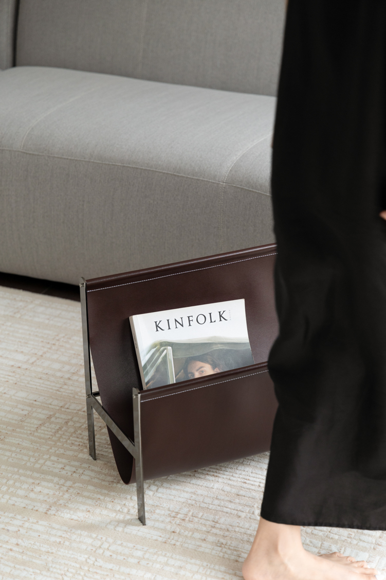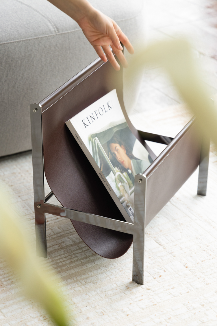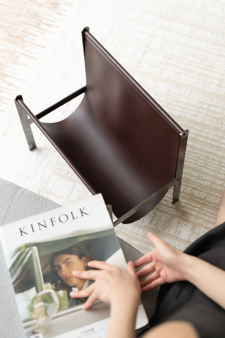 若奈家居 丹麦中古乌木色皮革杂志架书架床头置物架抱枕收纳架