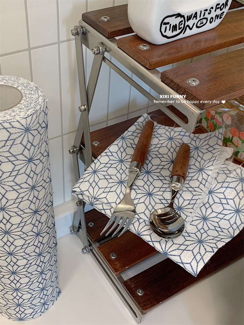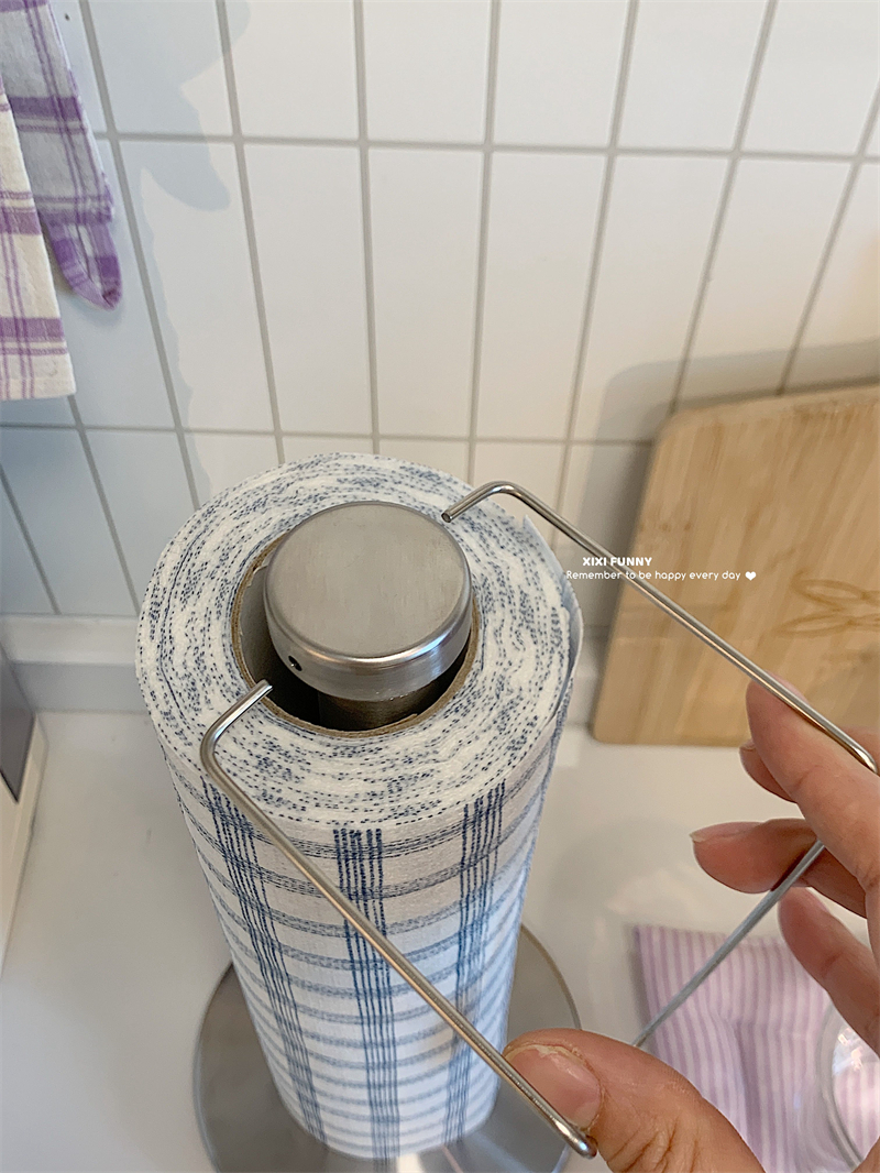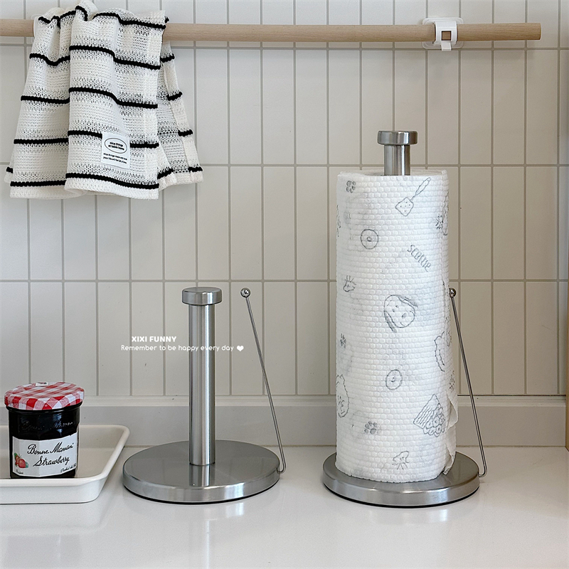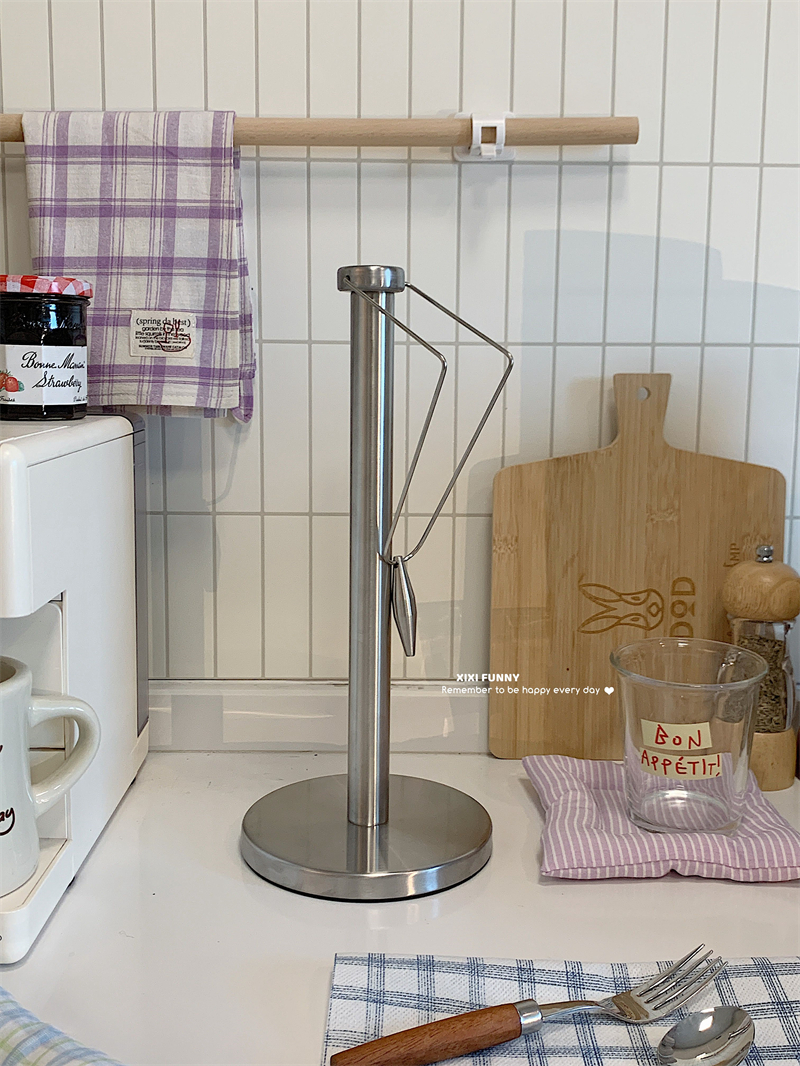 不锈钢厨房卷纸架台面立式纸巾架叉腰大卷筒纸架保鲜膜收纳置物架