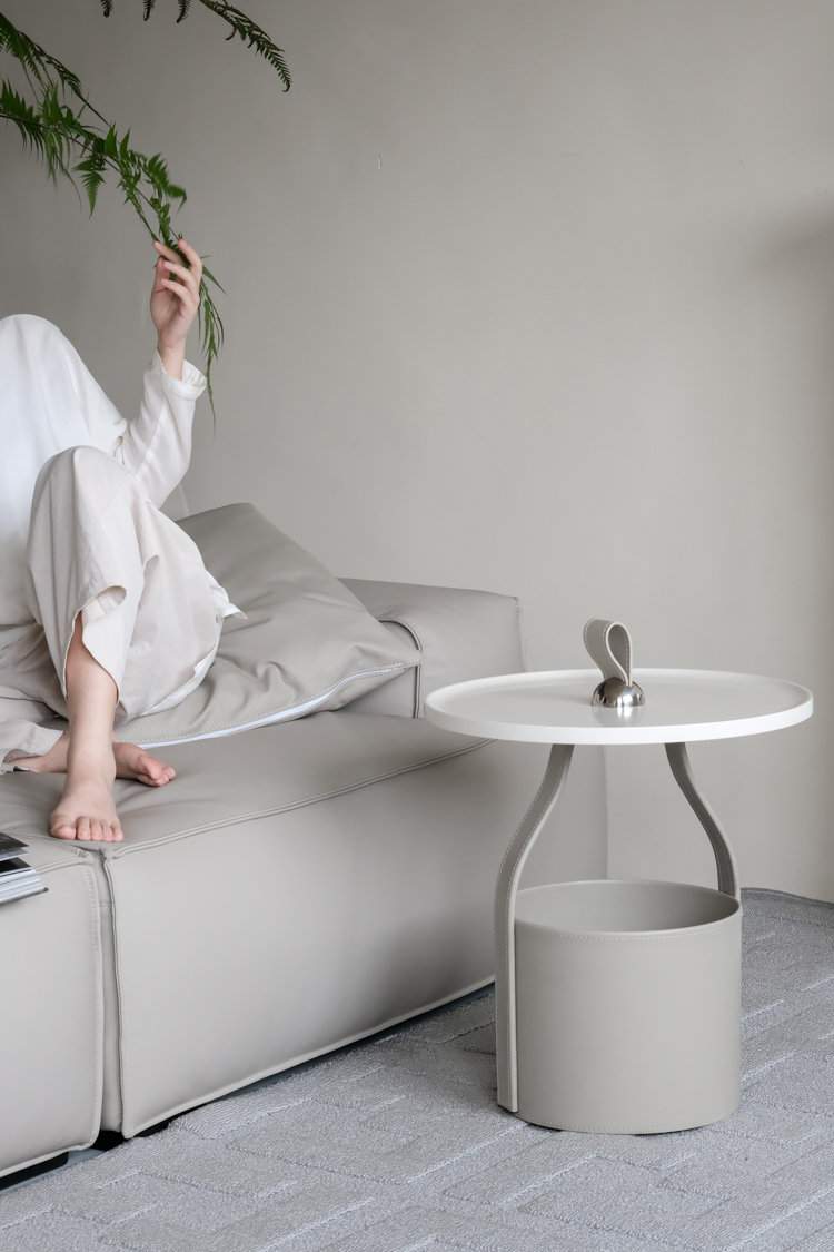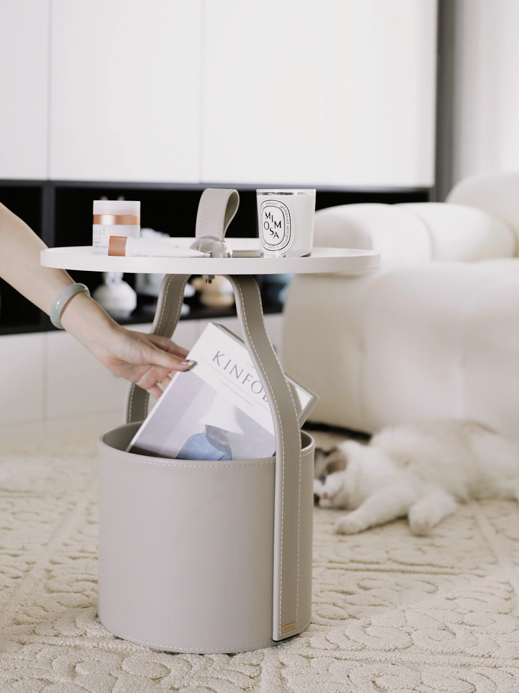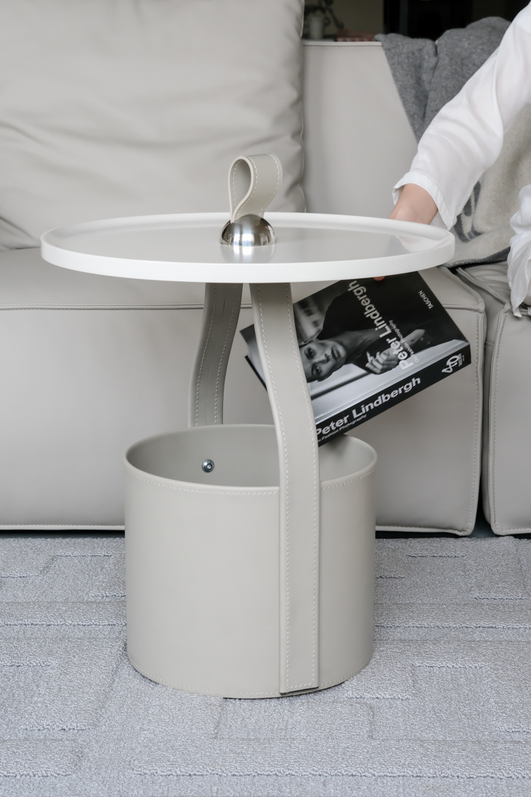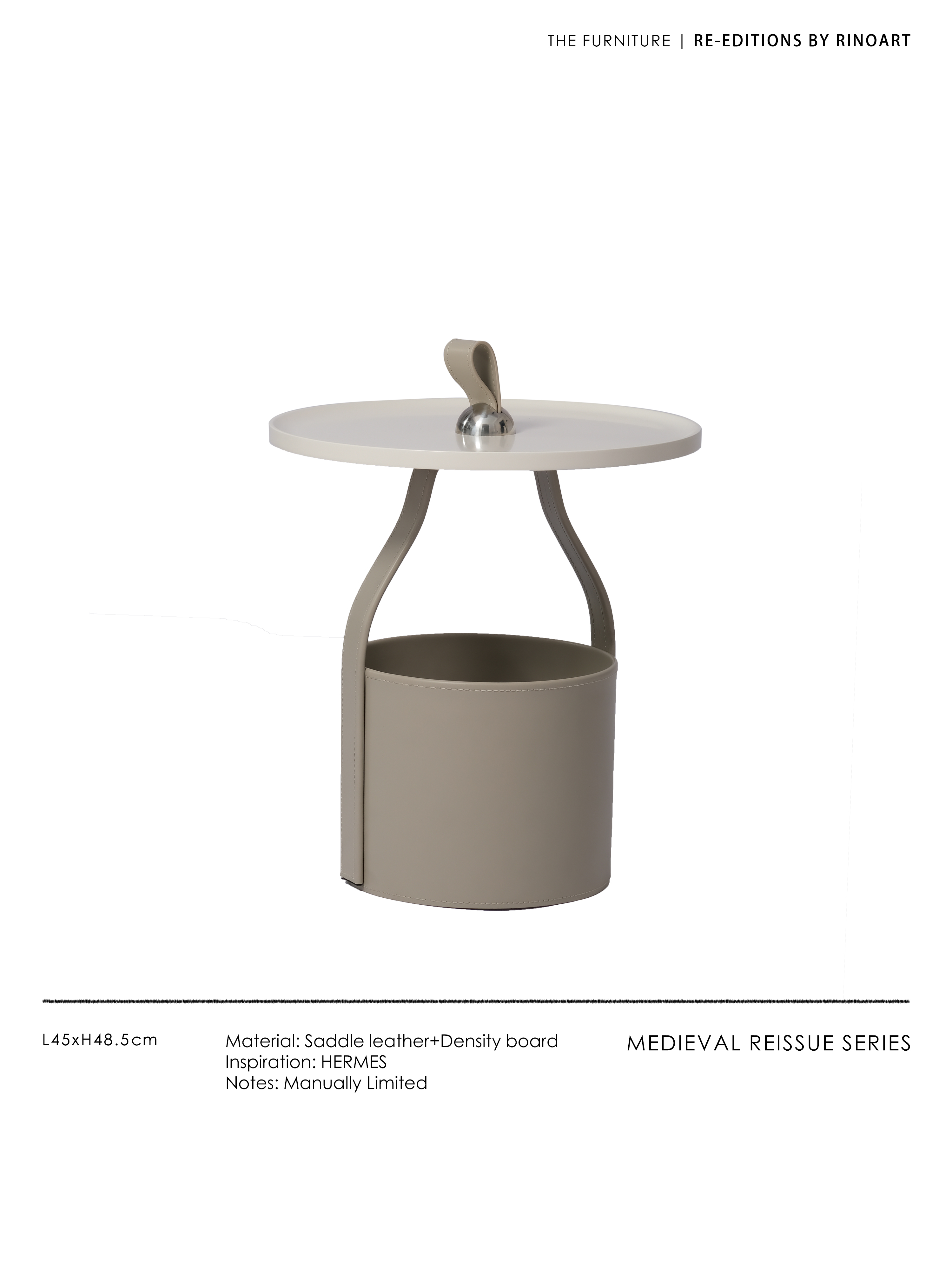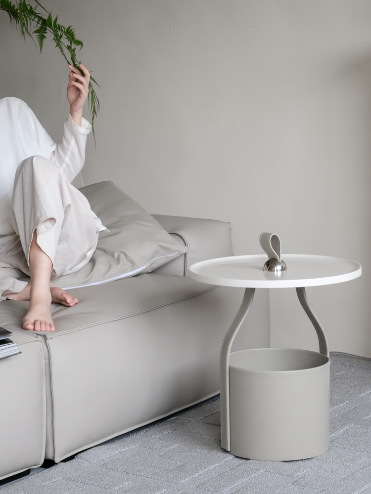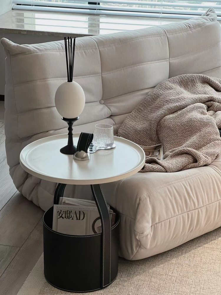 若奈限定冰川灰!HERM@S创意艺术手工马鞍皮沙发边几轻奢手拎茶几