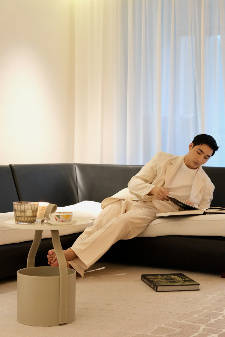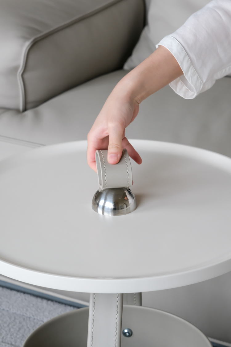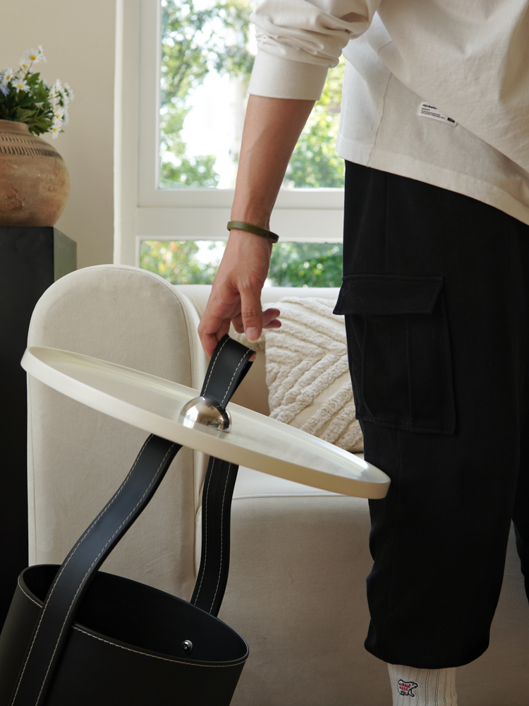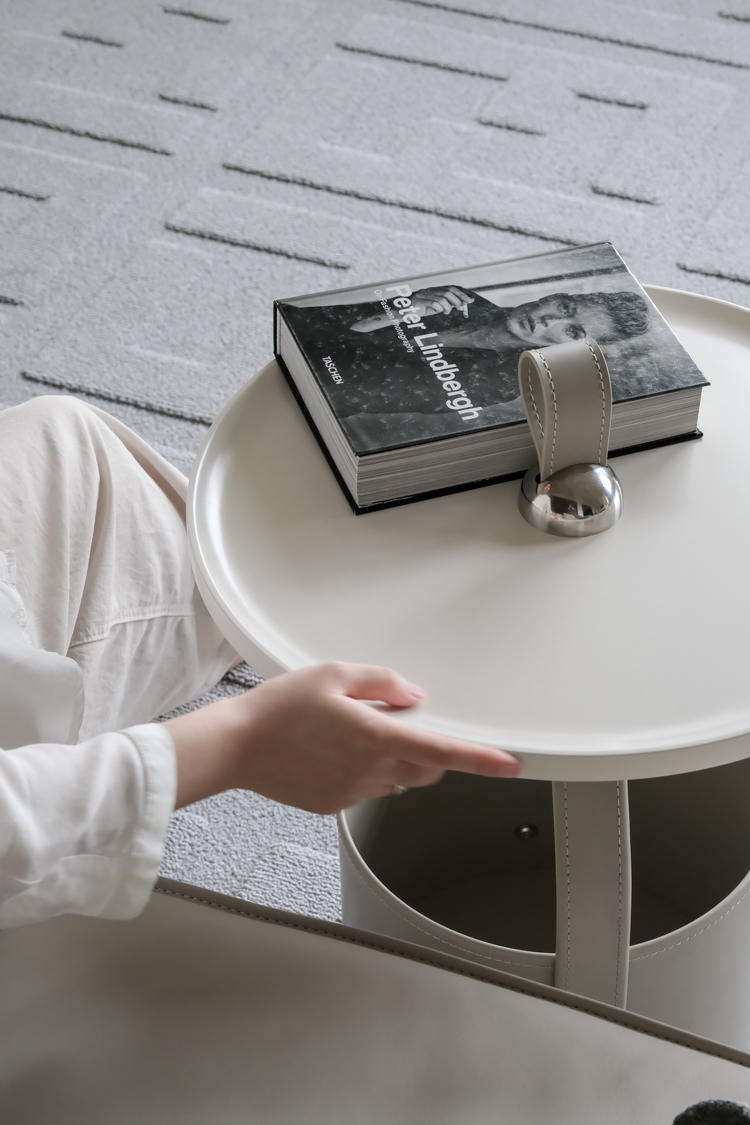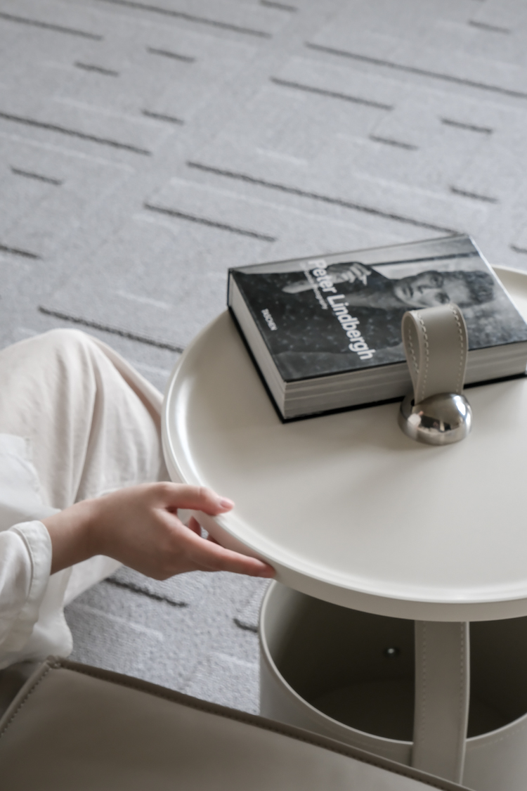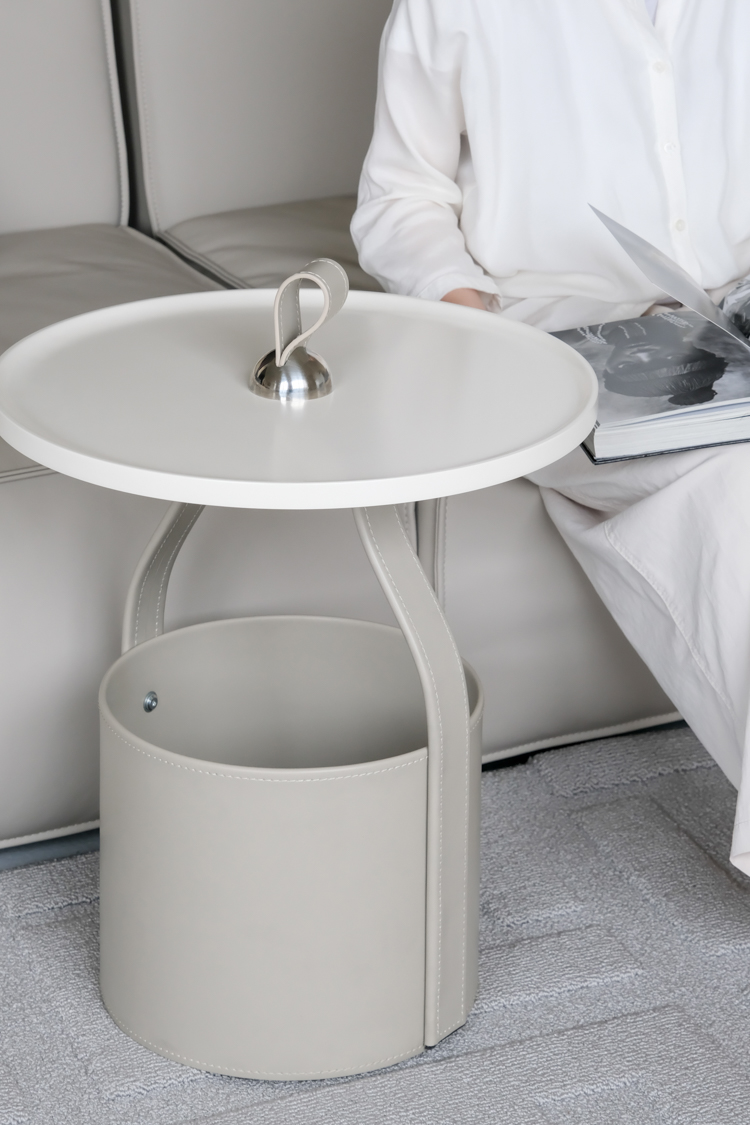 若奈限定冰川灰!HERM@S创意艺术手工马鞍皮沙发边几轻奢手拎茶几