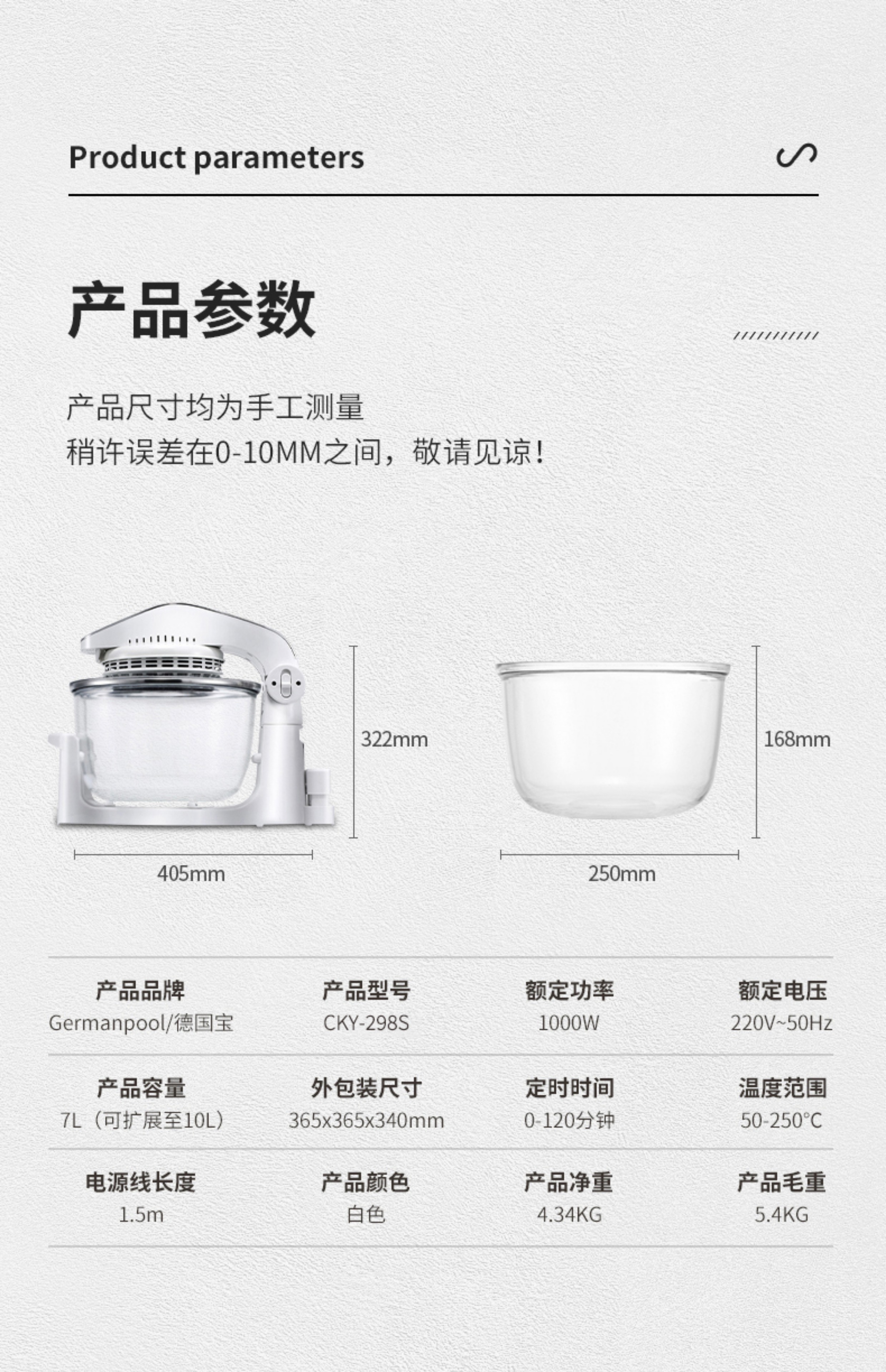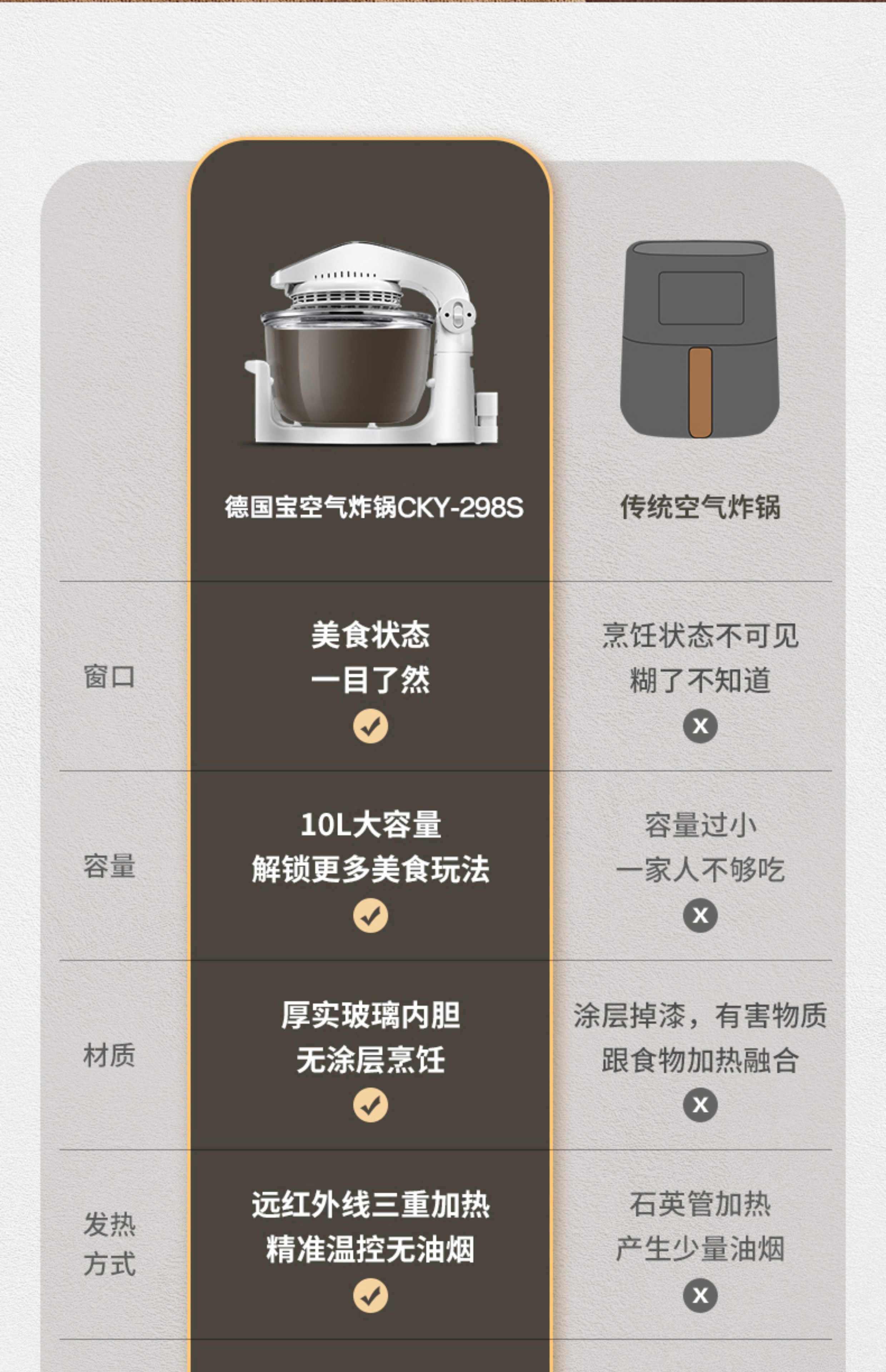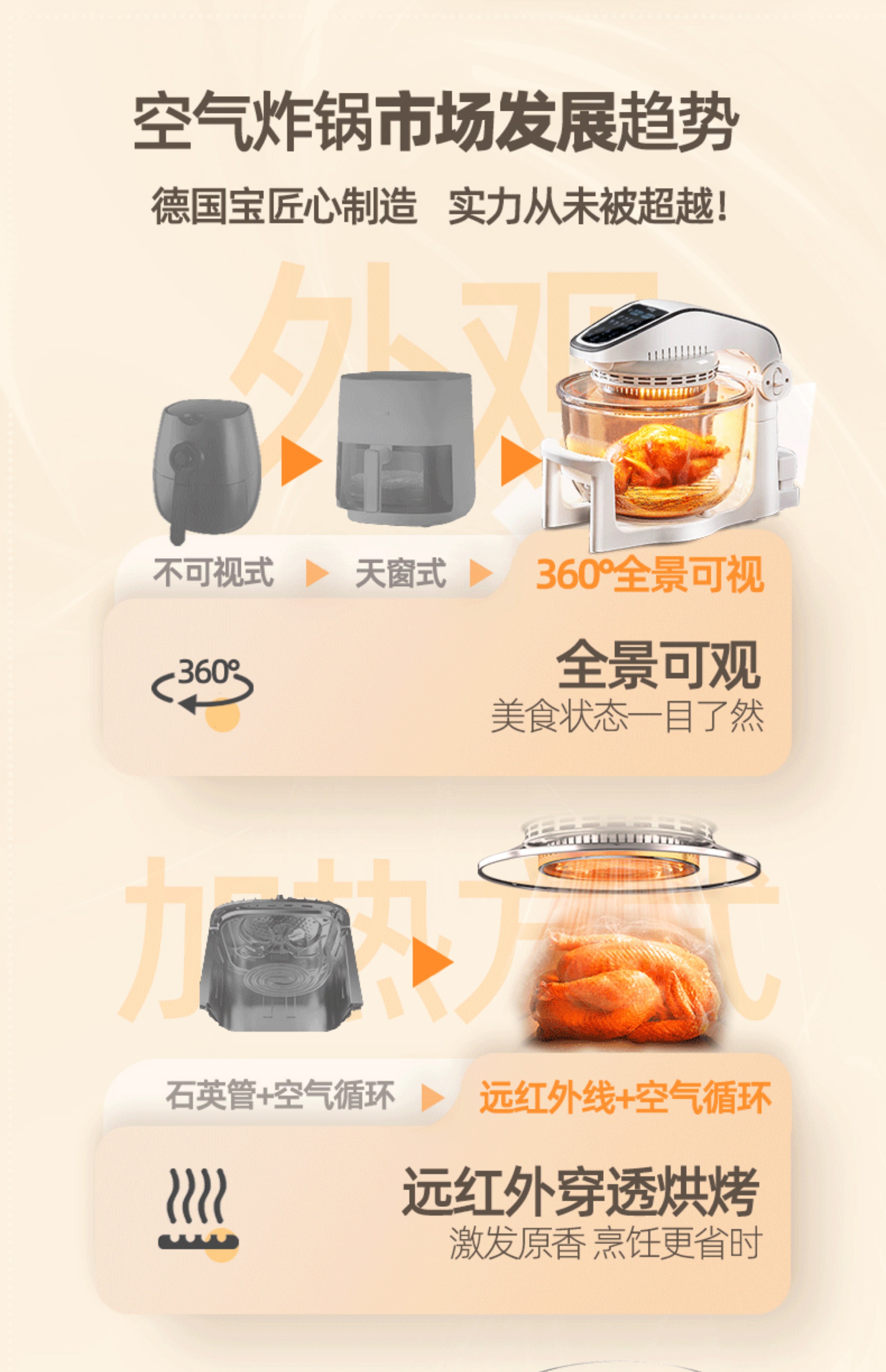 德国宝玻璃空气炸锅 家用无油烟电炸锅多功能光波炉可视薯条机