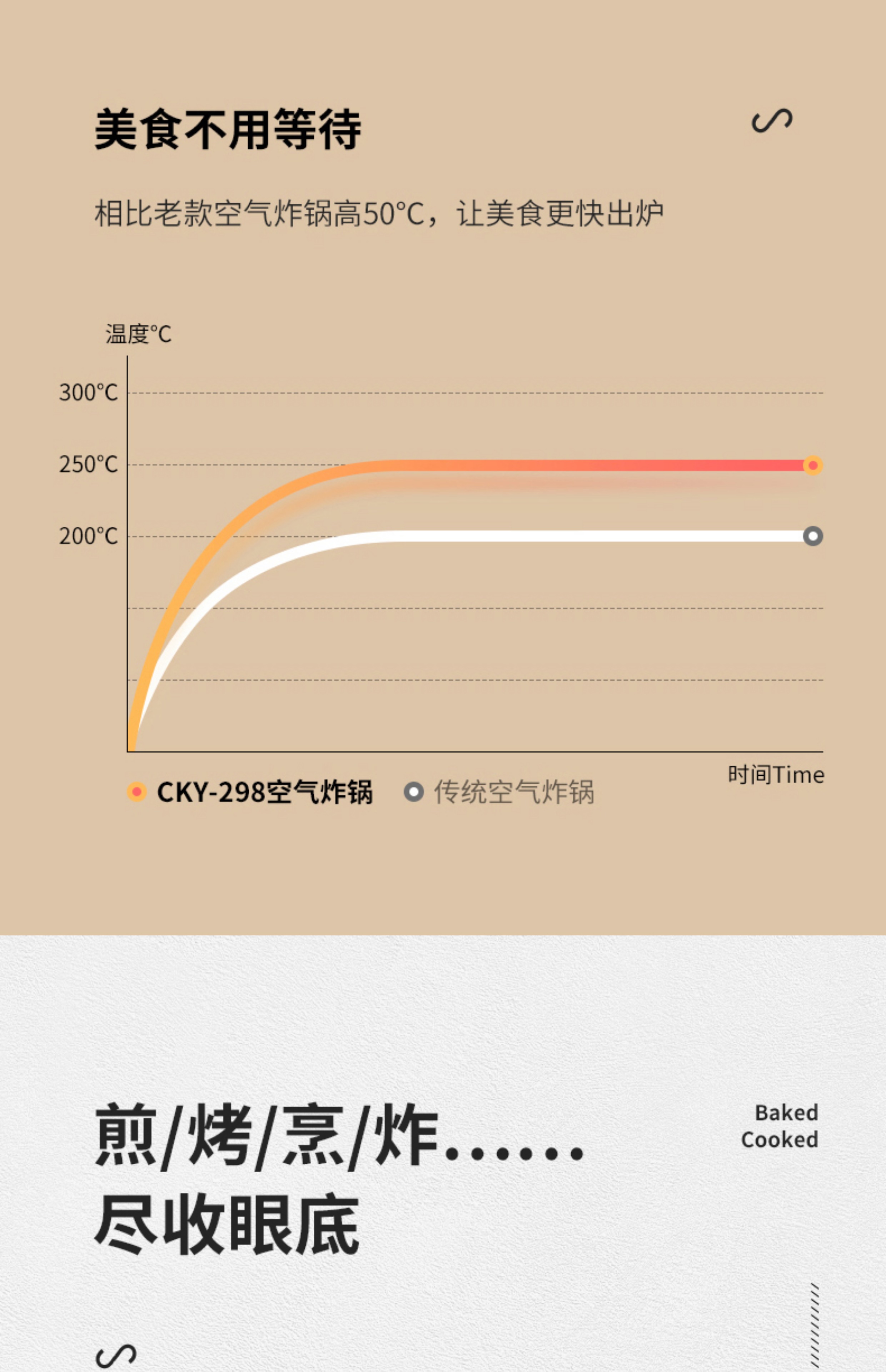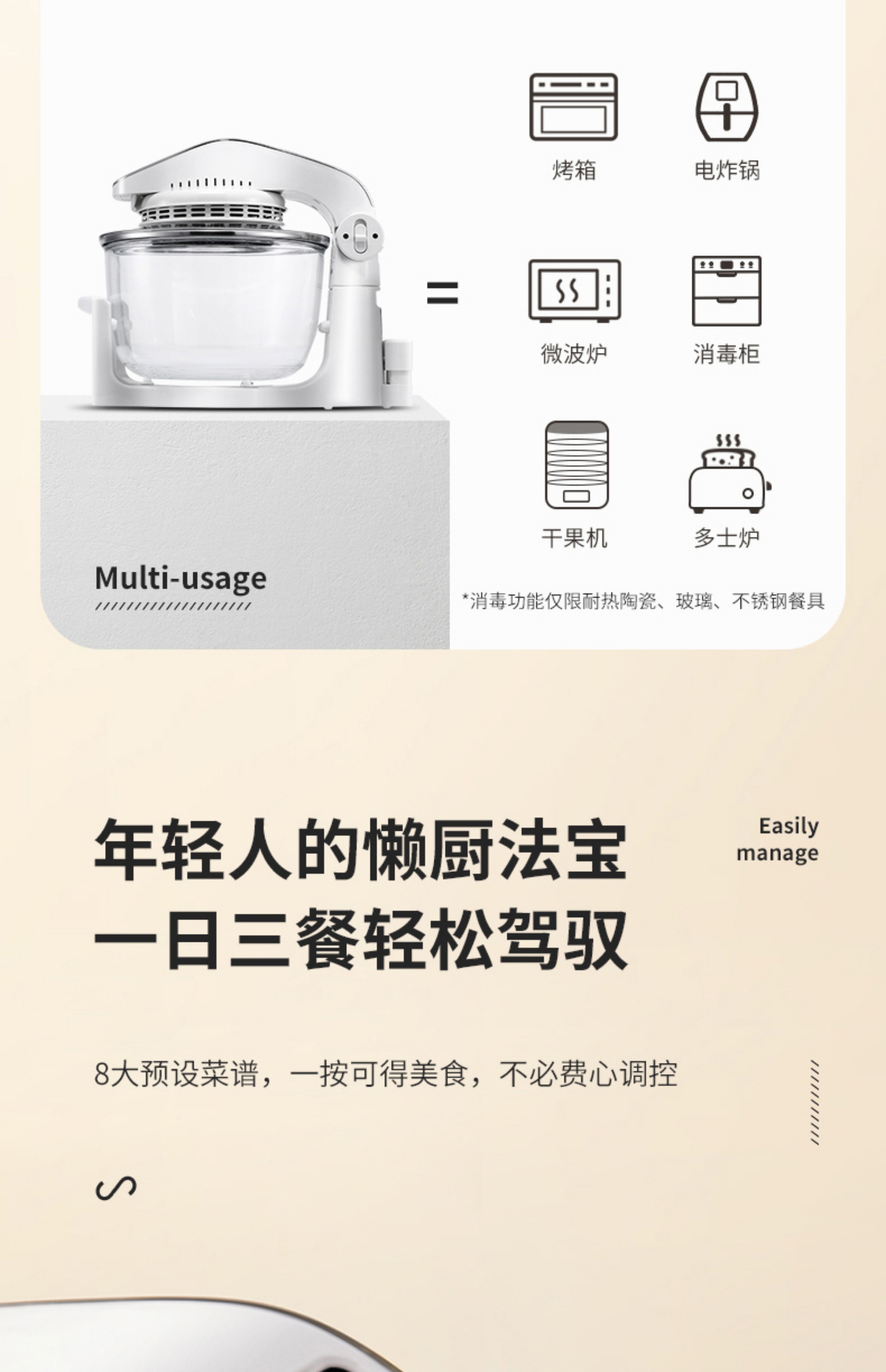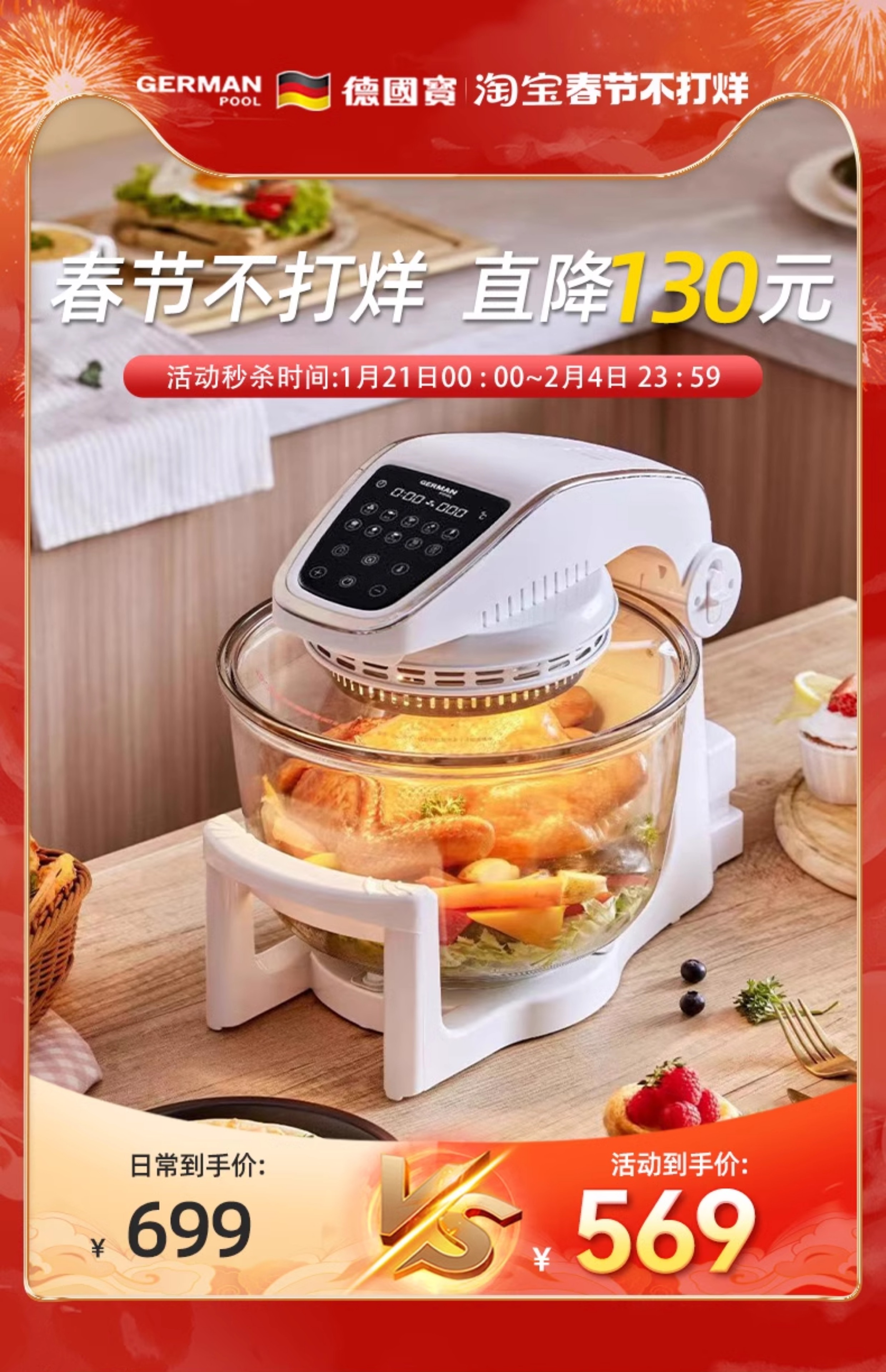 德国宝玻璃空气炸锅 家用无油烟电炸锅多功能光波炉可视薯条机