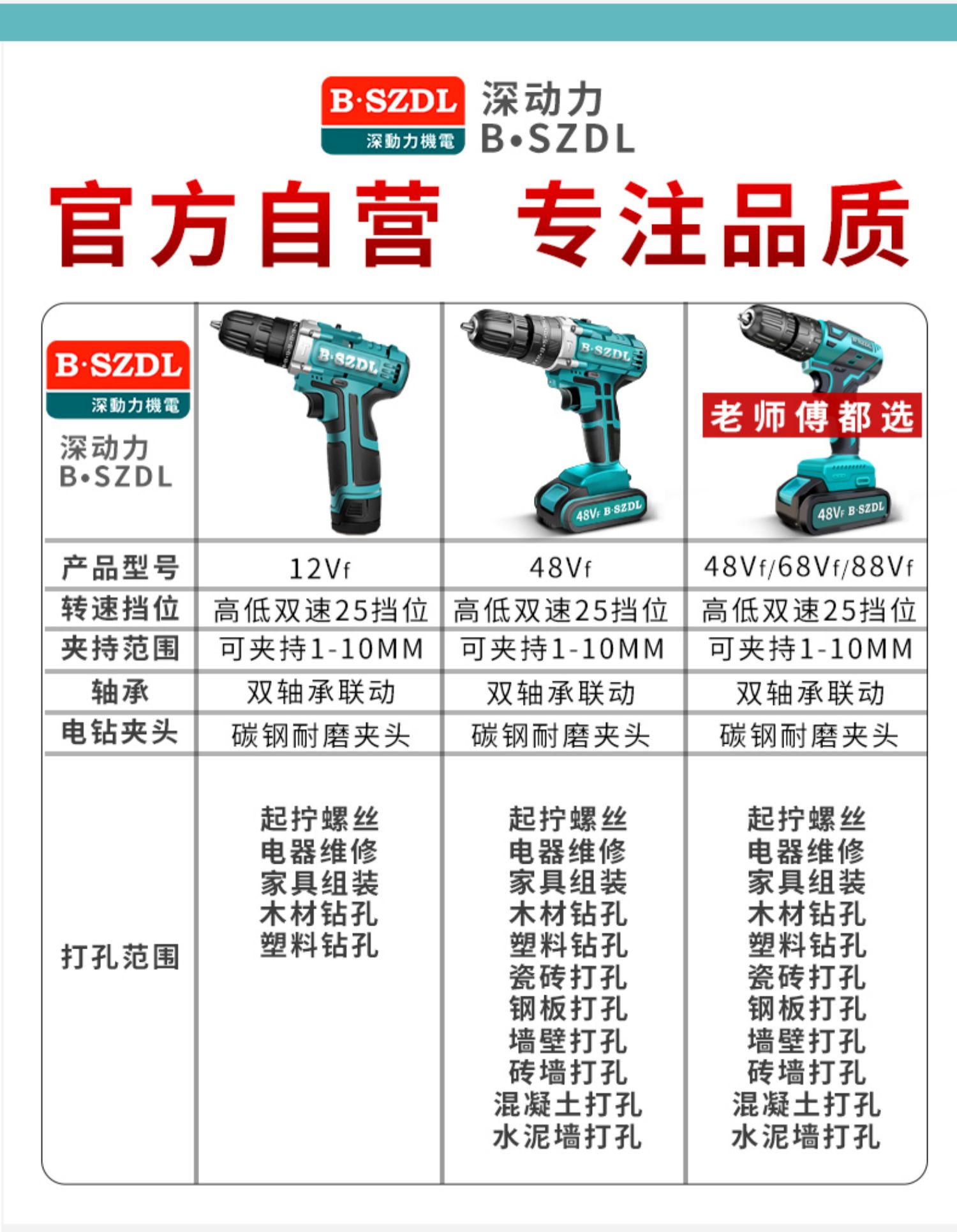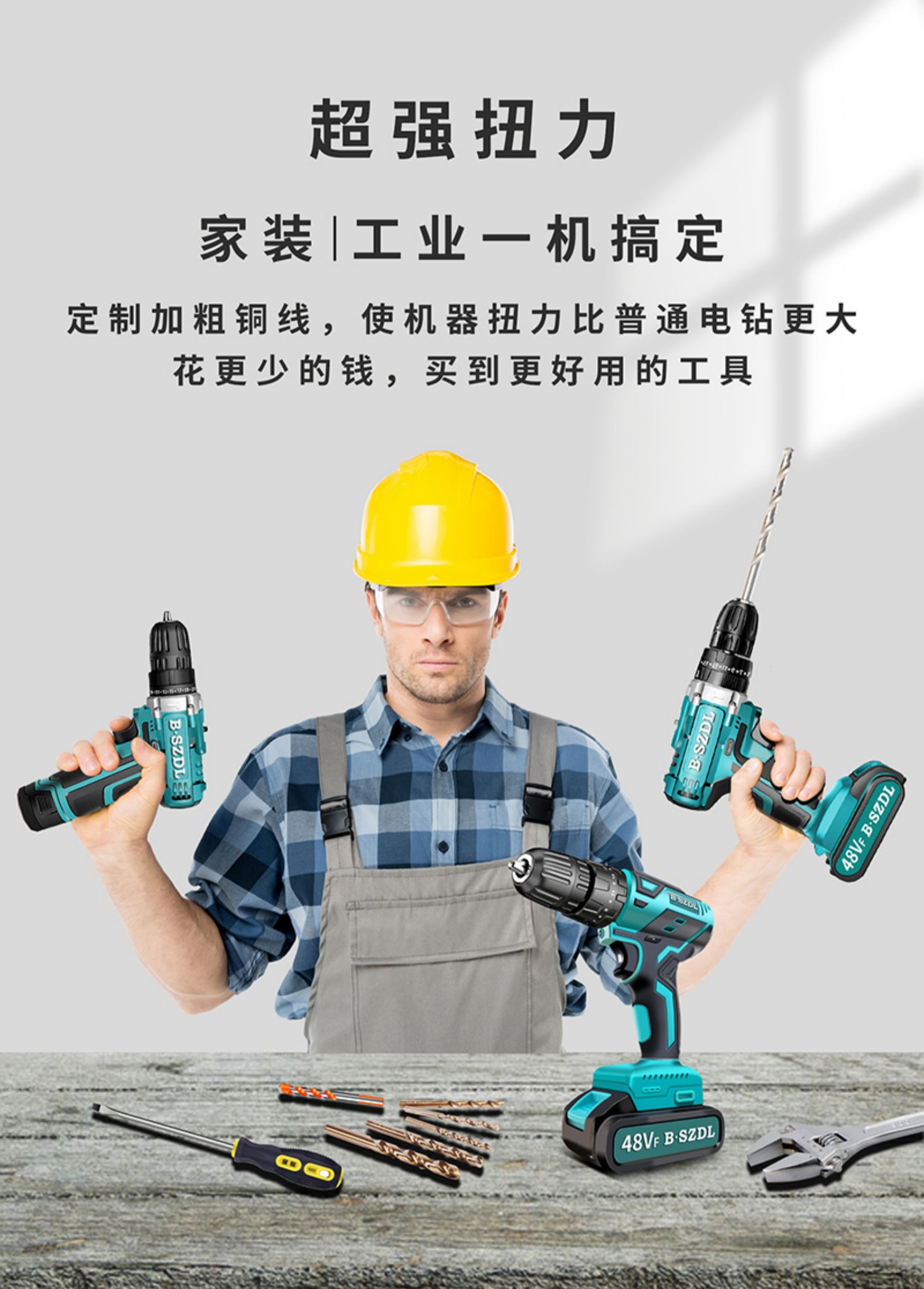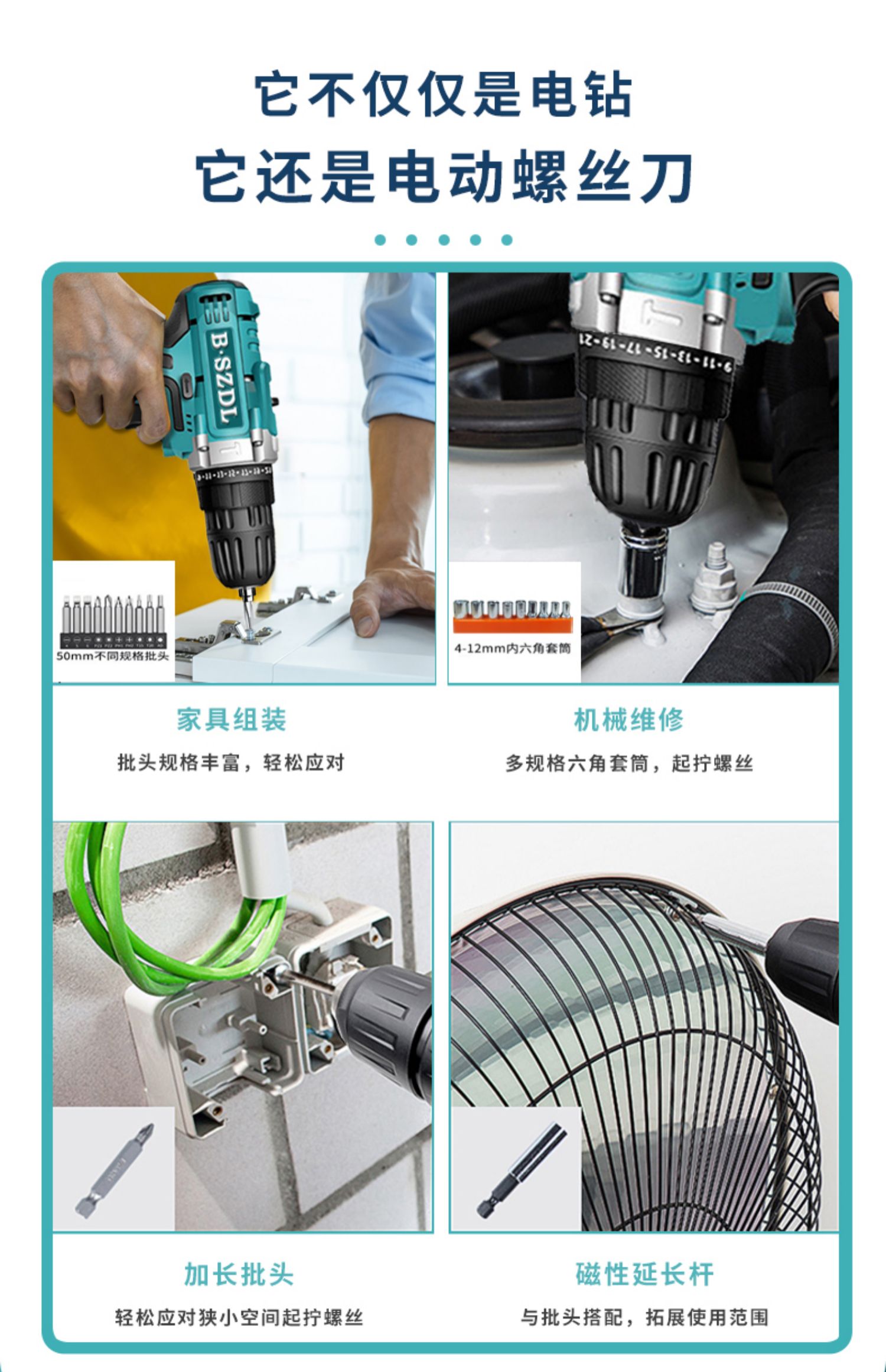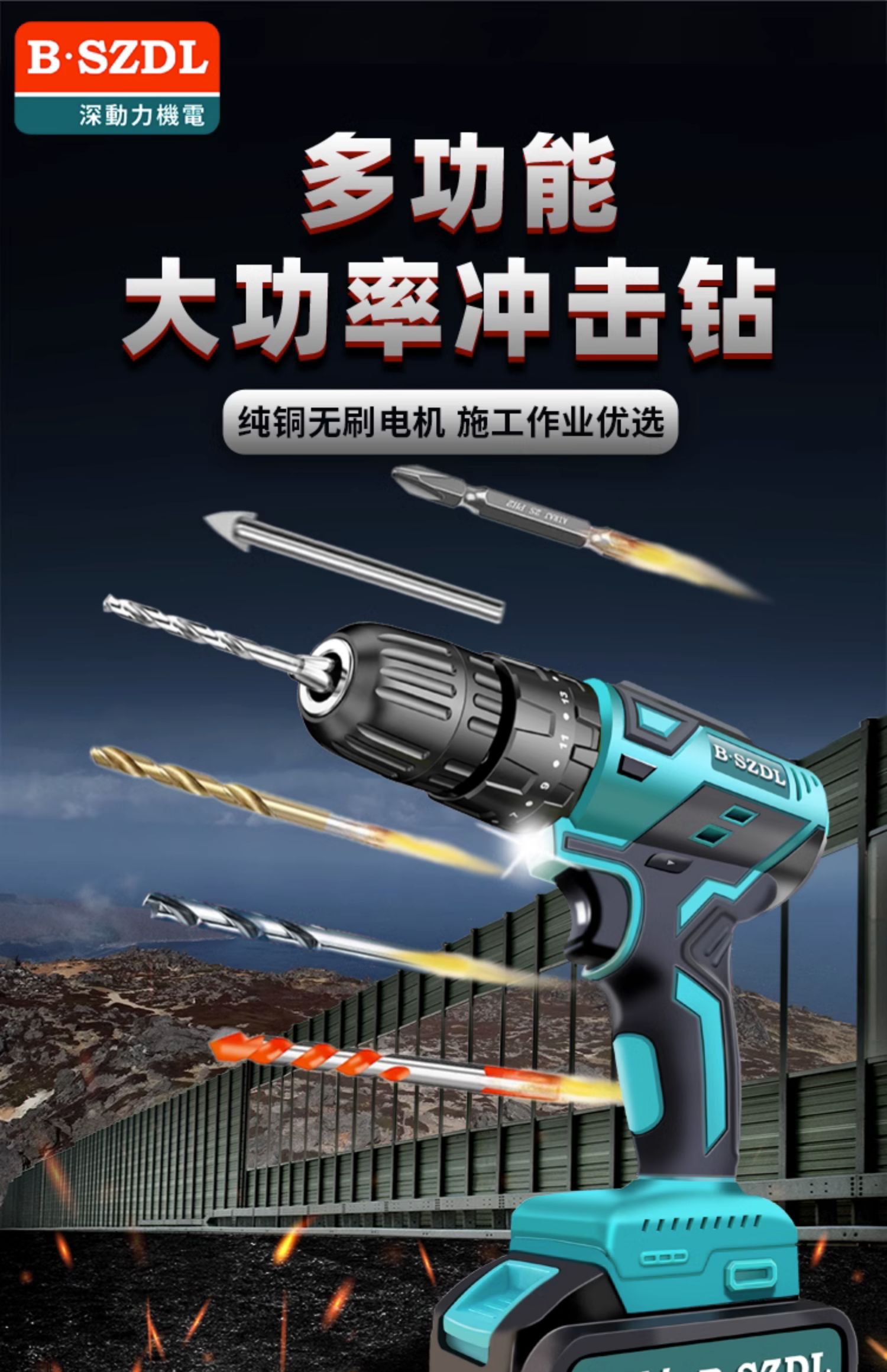 德国技术多功能手电钻转锂电无刷手枪钻充电手钻冲击钻电动螺丝刀