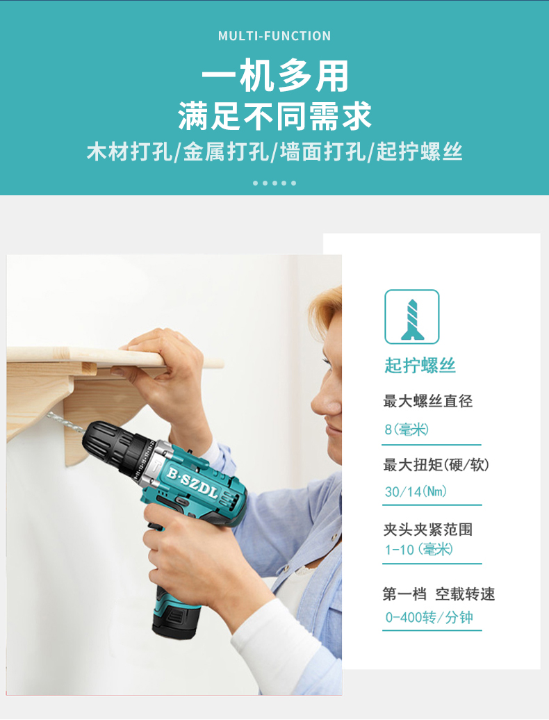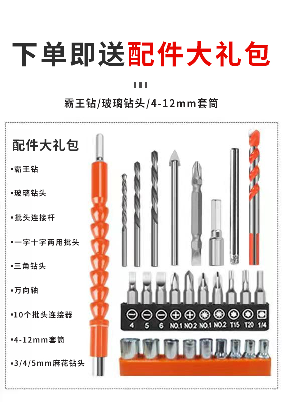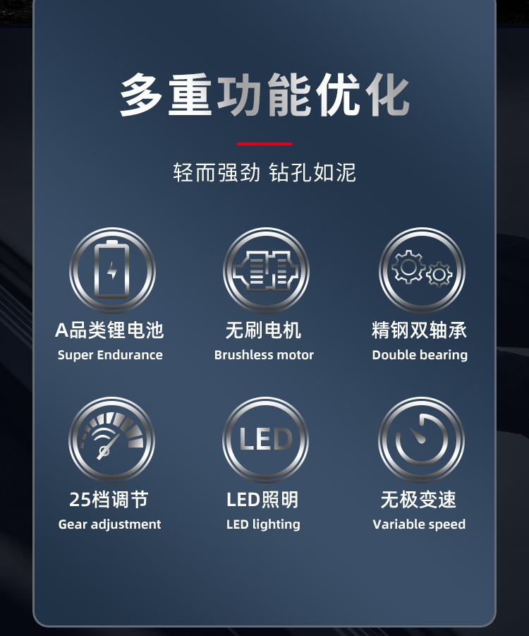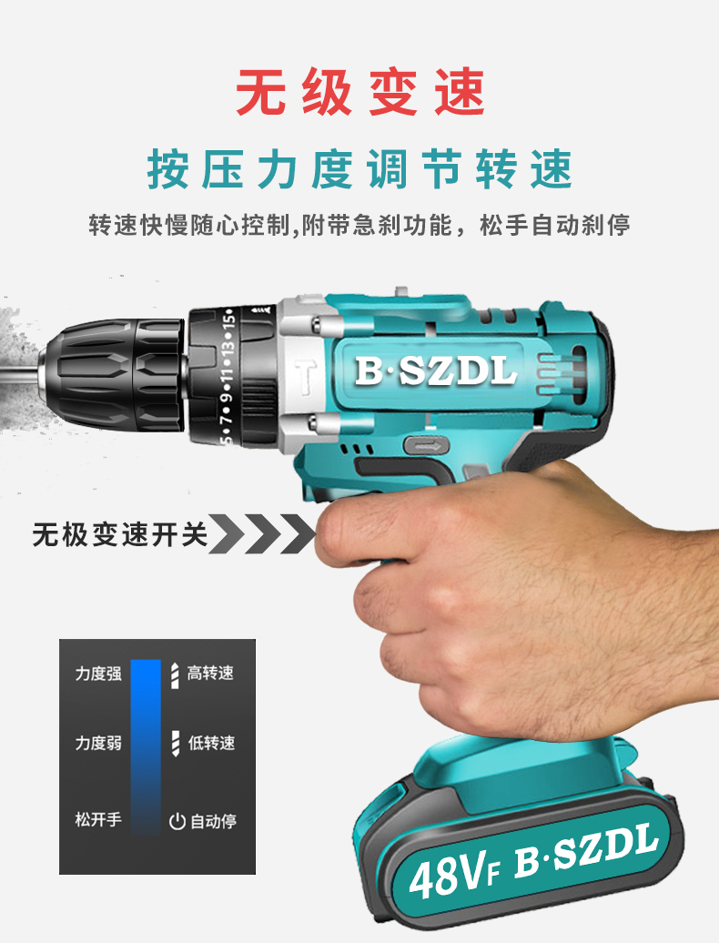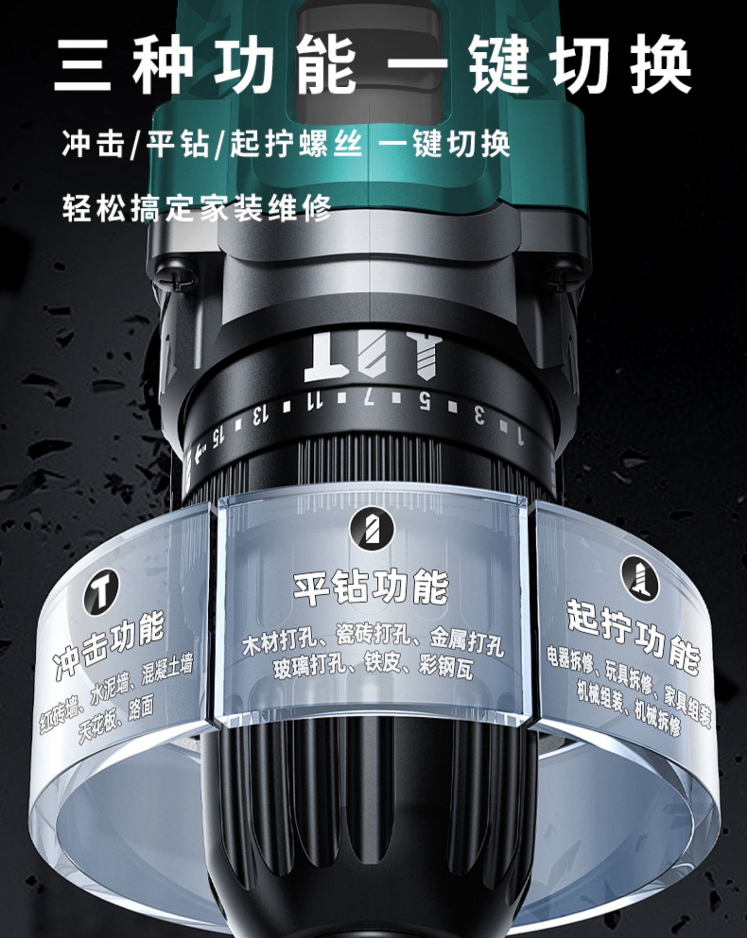 德国技术多功能手电钻转锂电无刷手枪钻充电手钻冲击钻电动螺丝刀