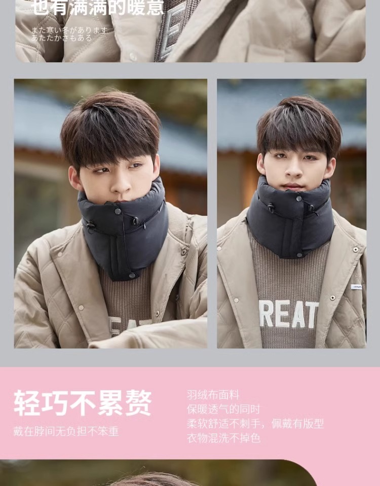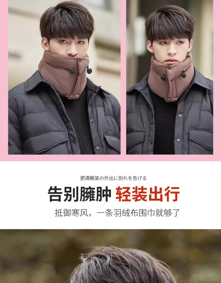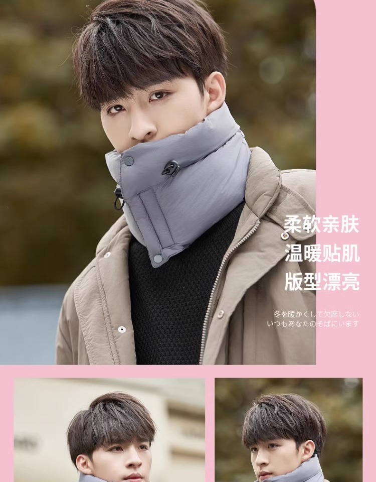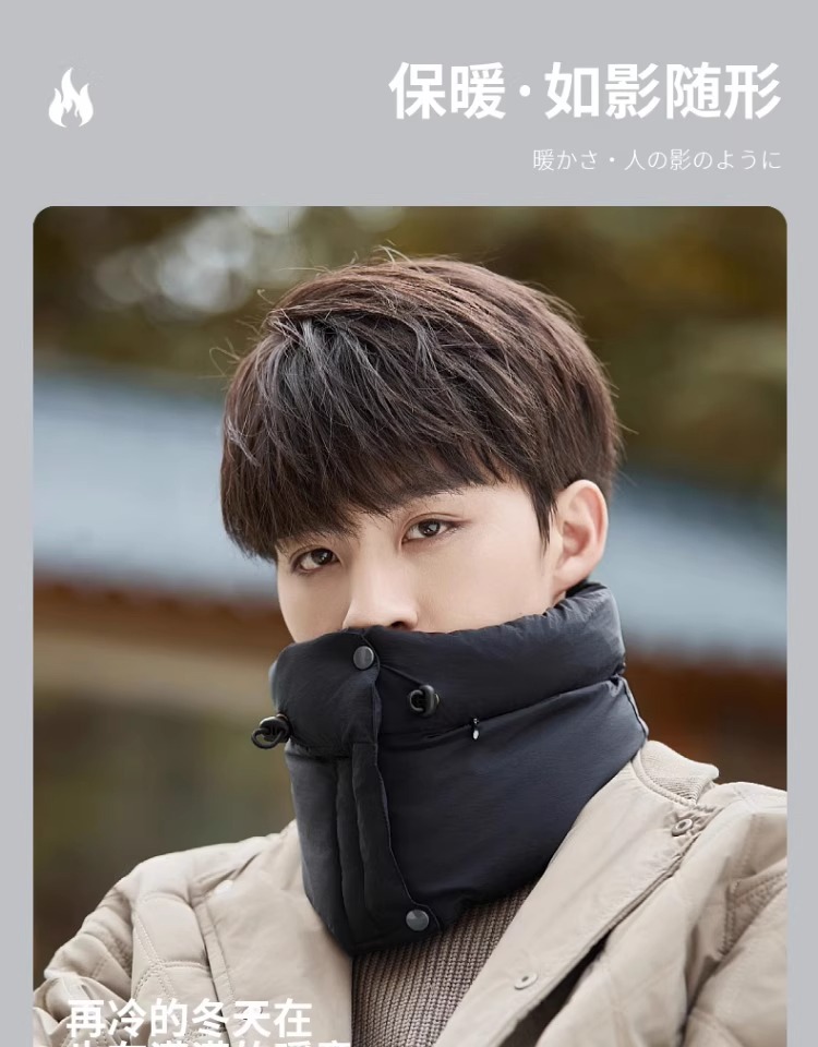 保暖围脖男护颈冬季骑行面罩加厚防风围巾羽绒棉电动车防寒神器女