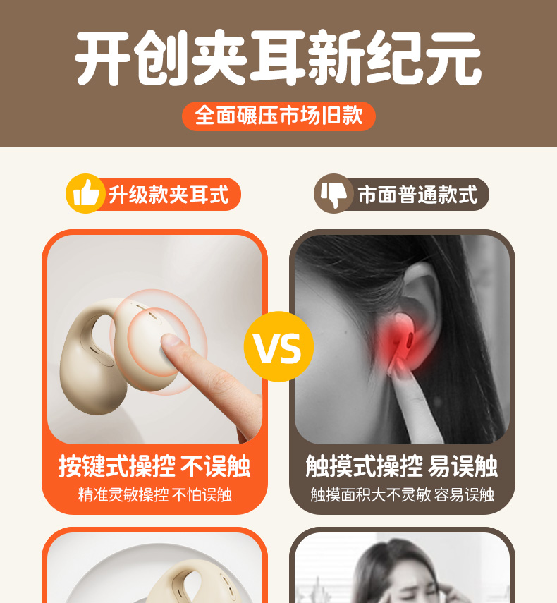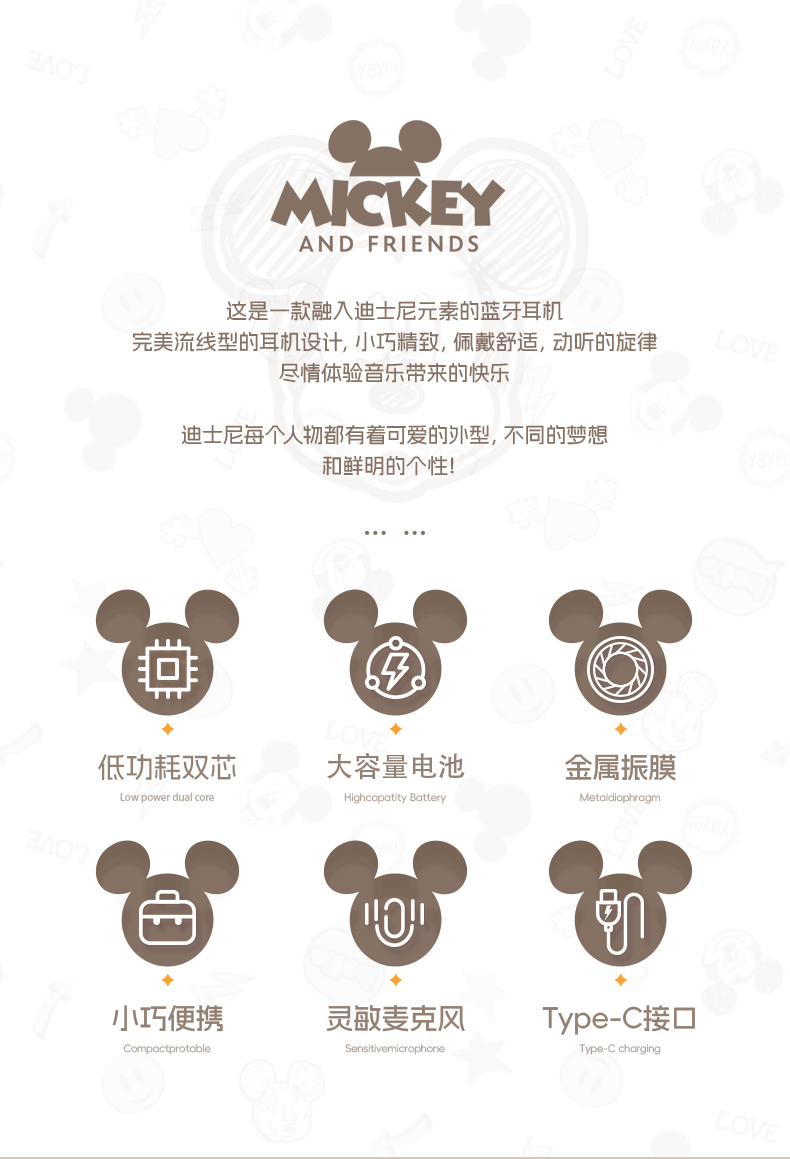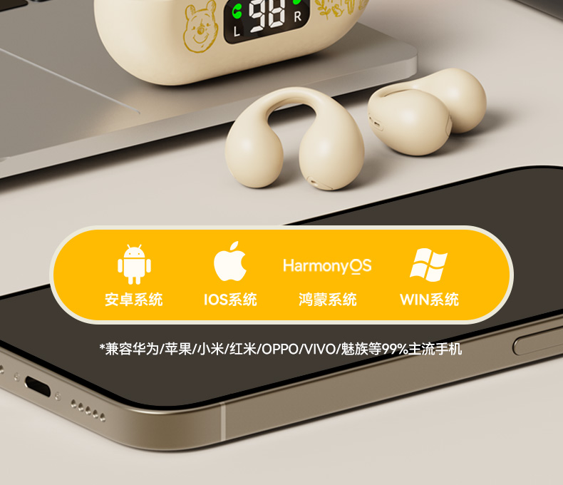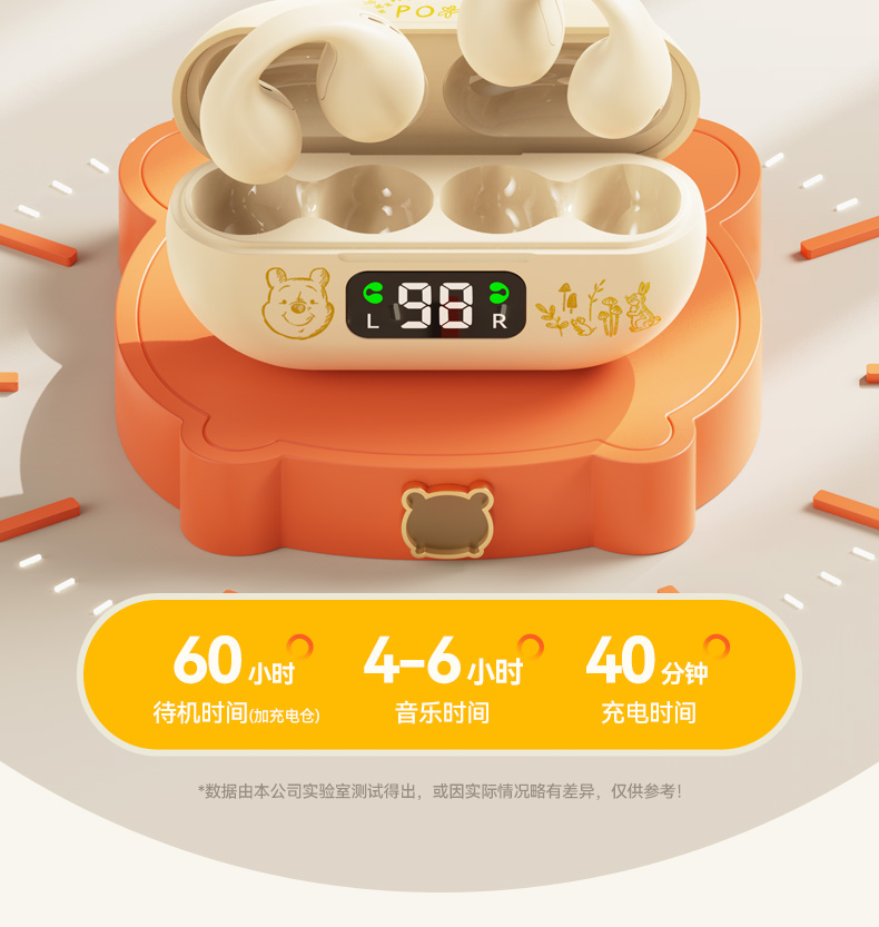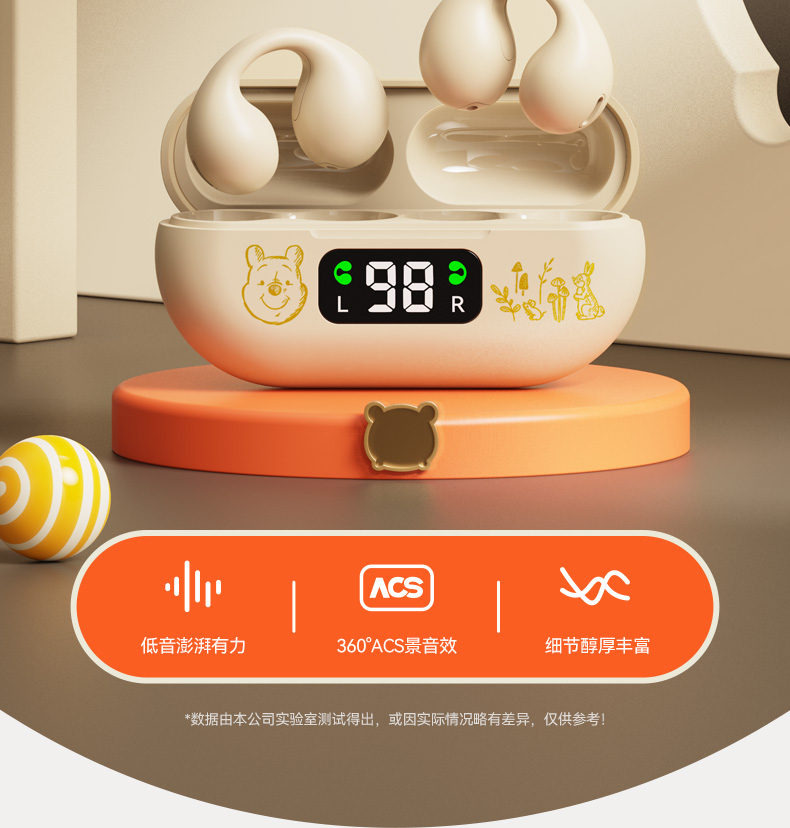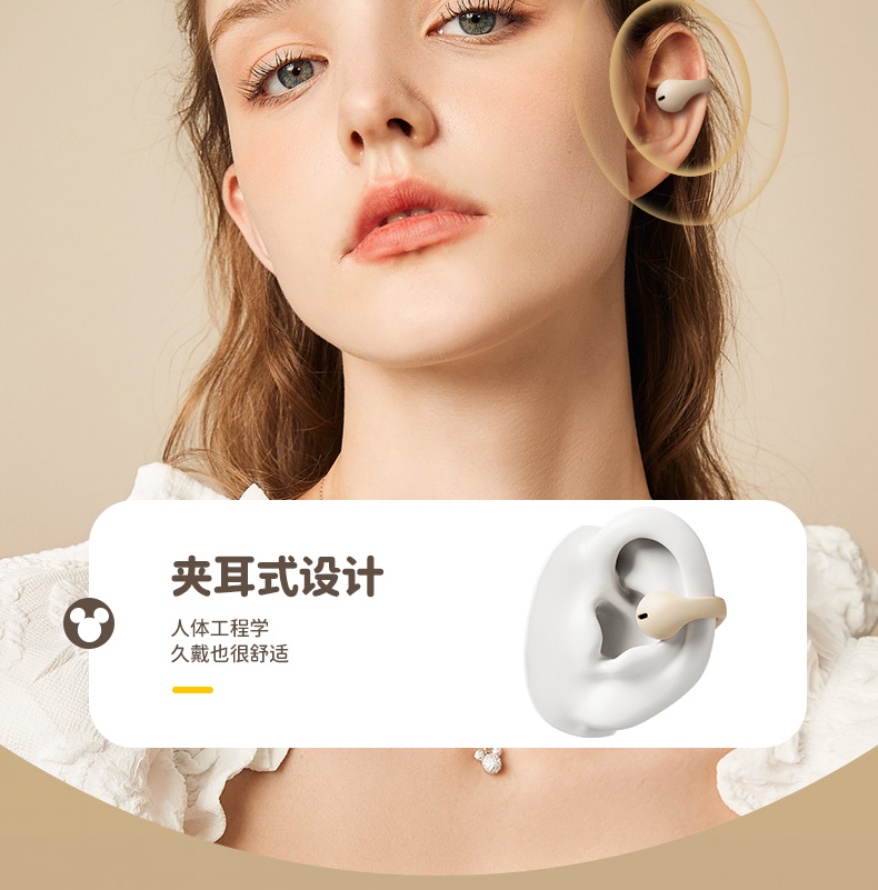 迪士尼联名正品蓝牙耳机骨传导运动不入耳无线耳夹式新款2024女男