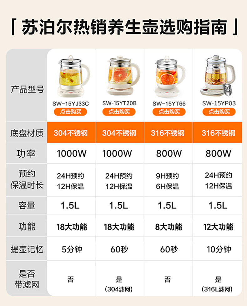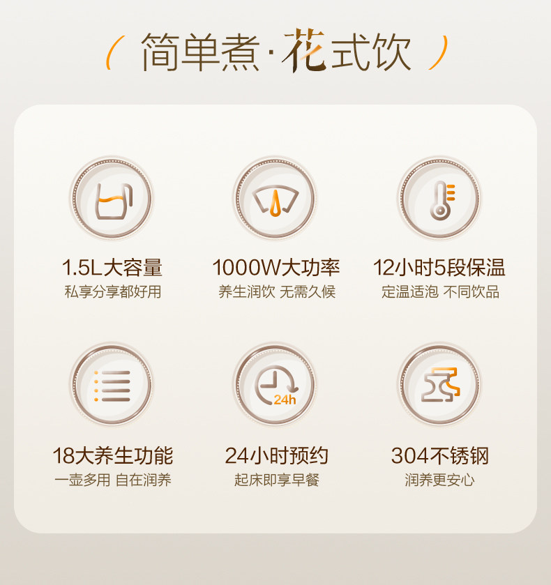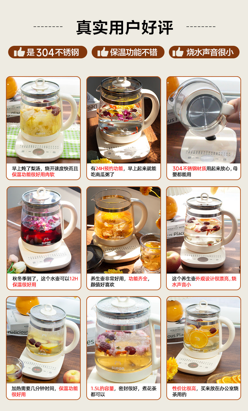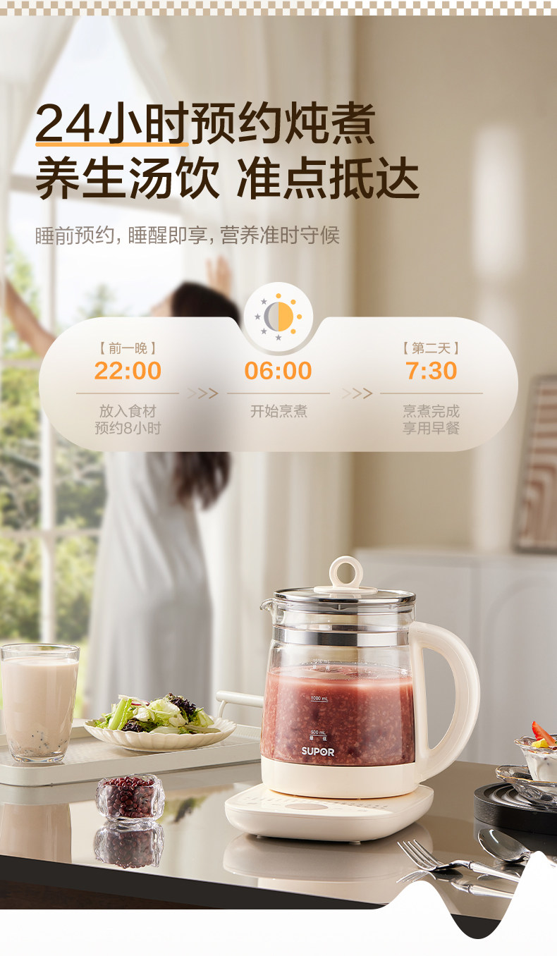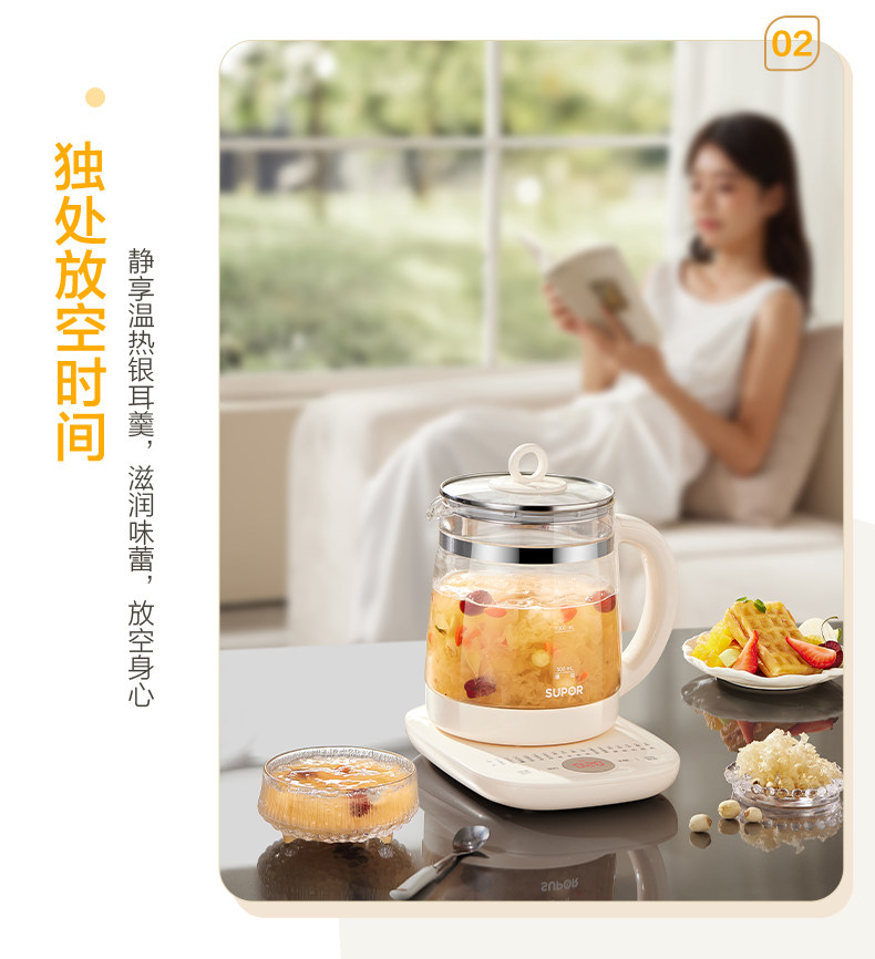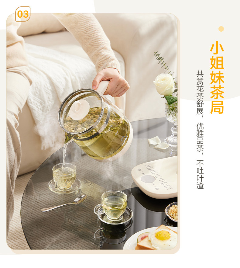 苏泊尔养生壶 米白色高硼硅玻璃体 微电脑触控式煮茶壶 220V办公室小型家用