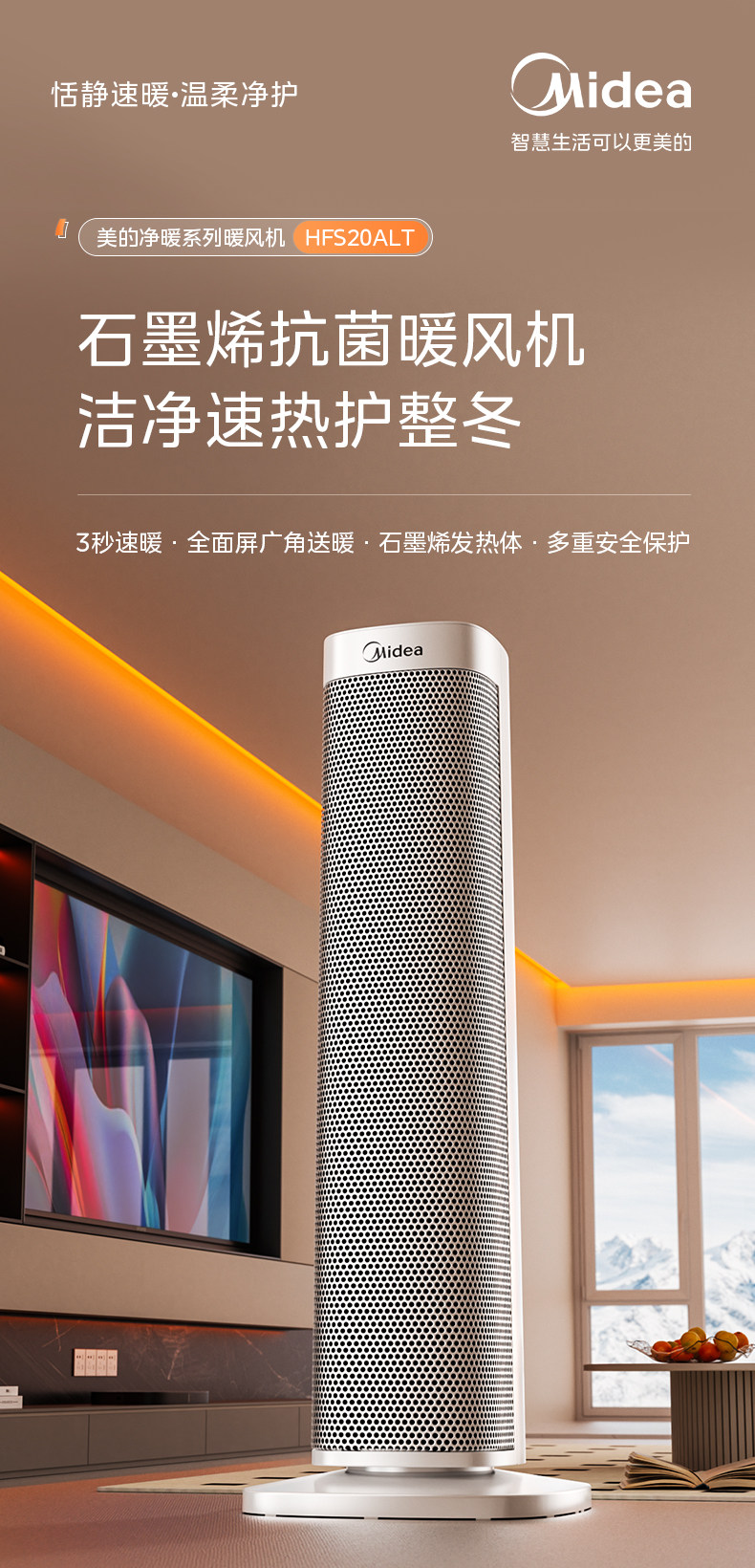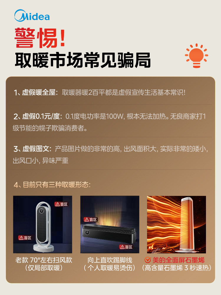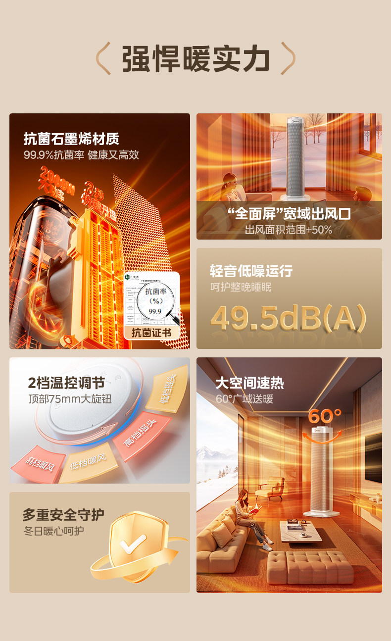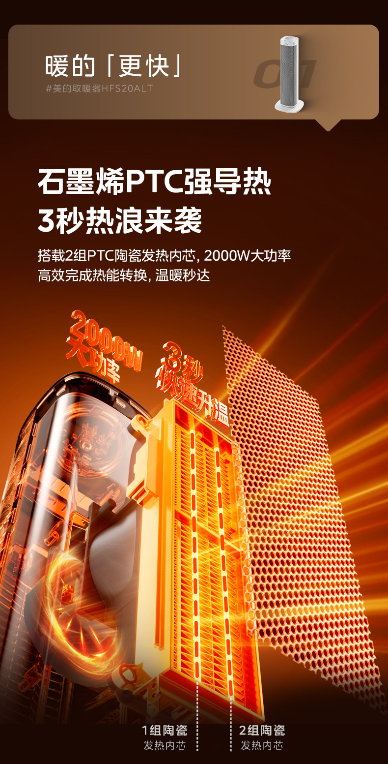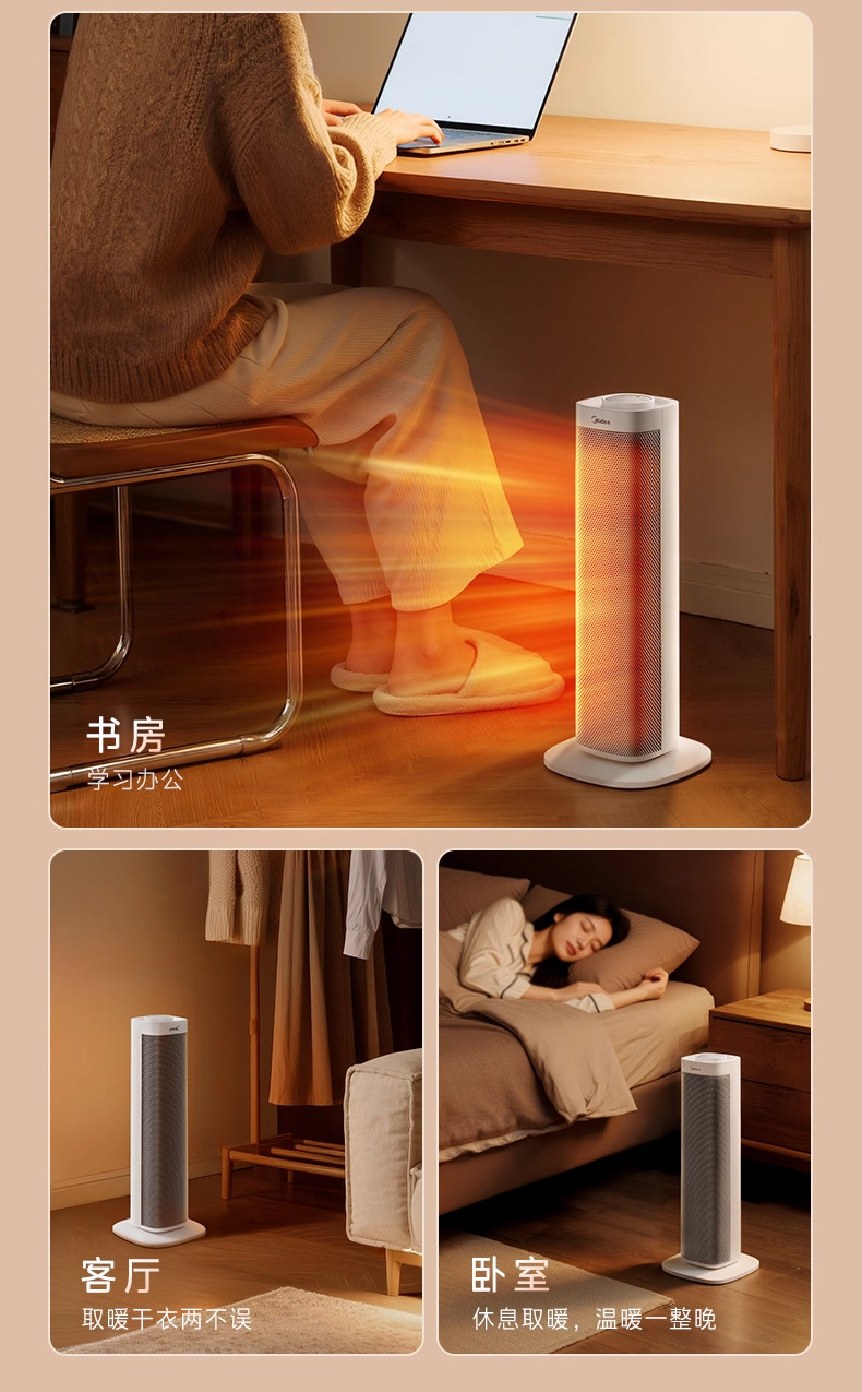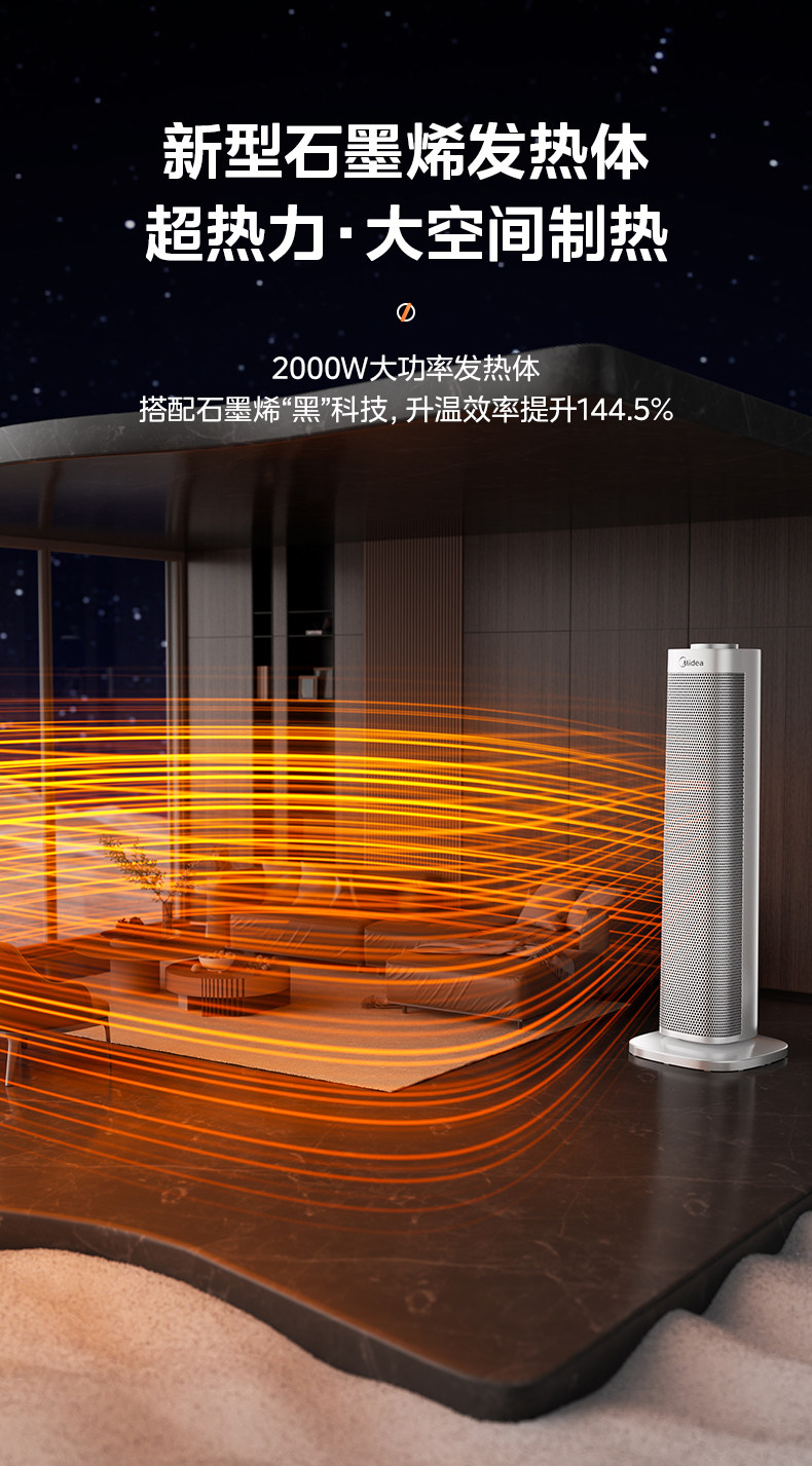 美的暖风机取暖器家用石墨烯电暖气炉节能小太阳2025新款神器冬季
