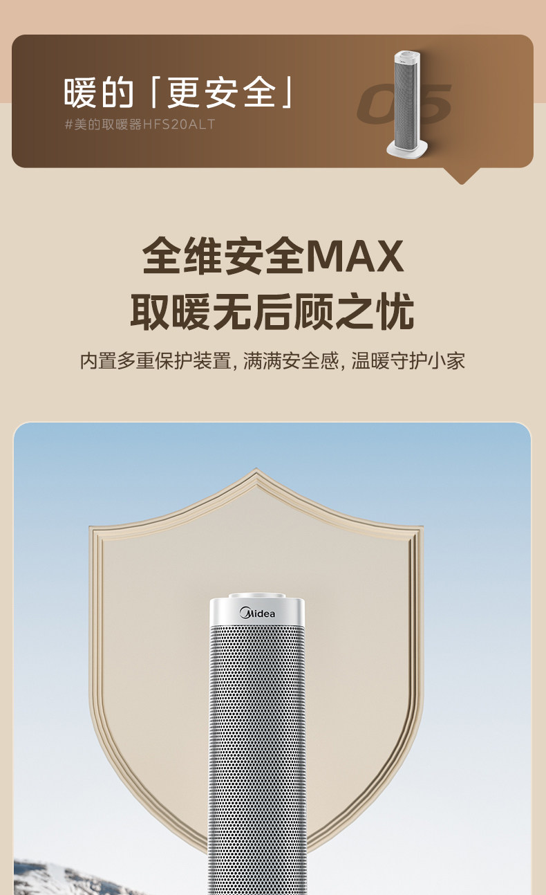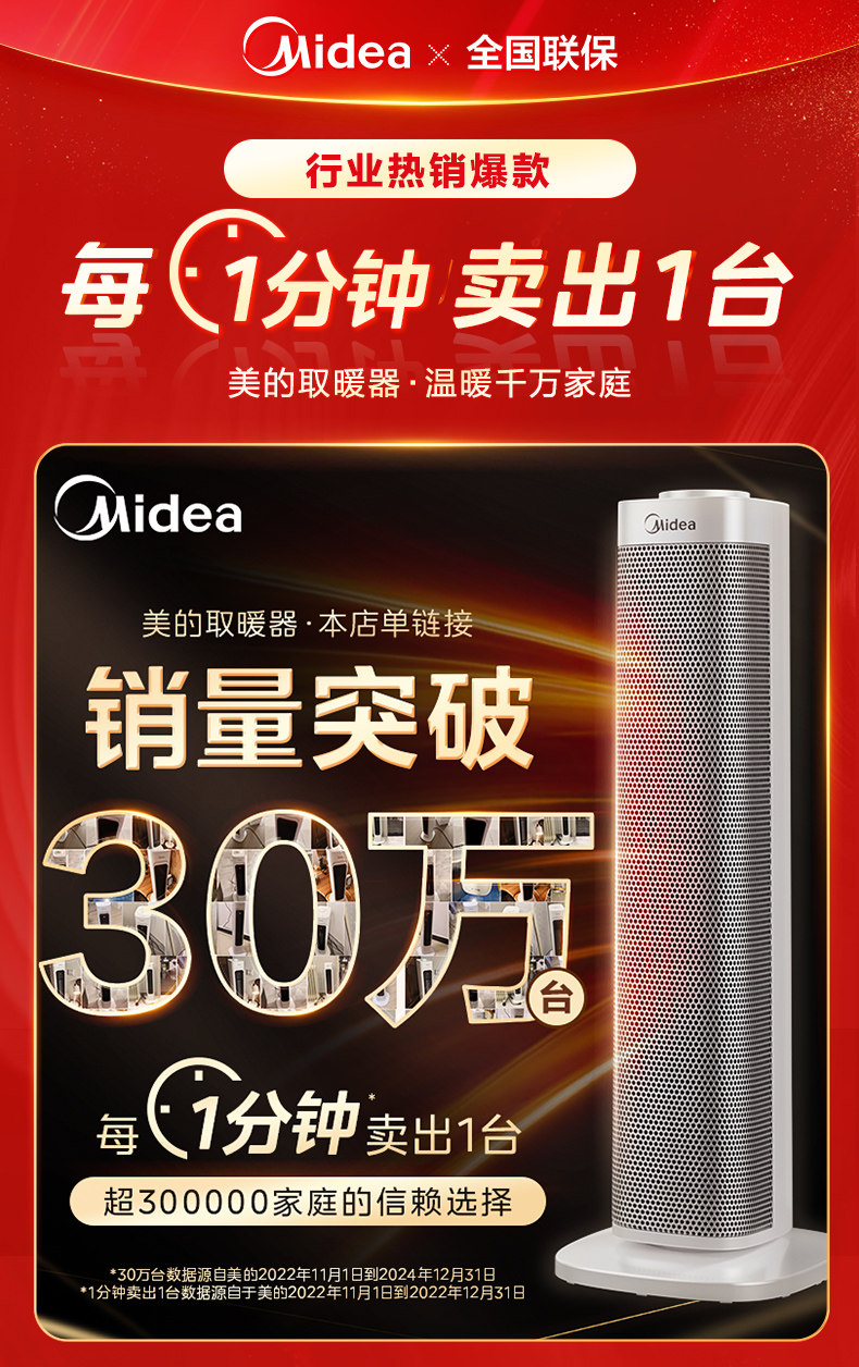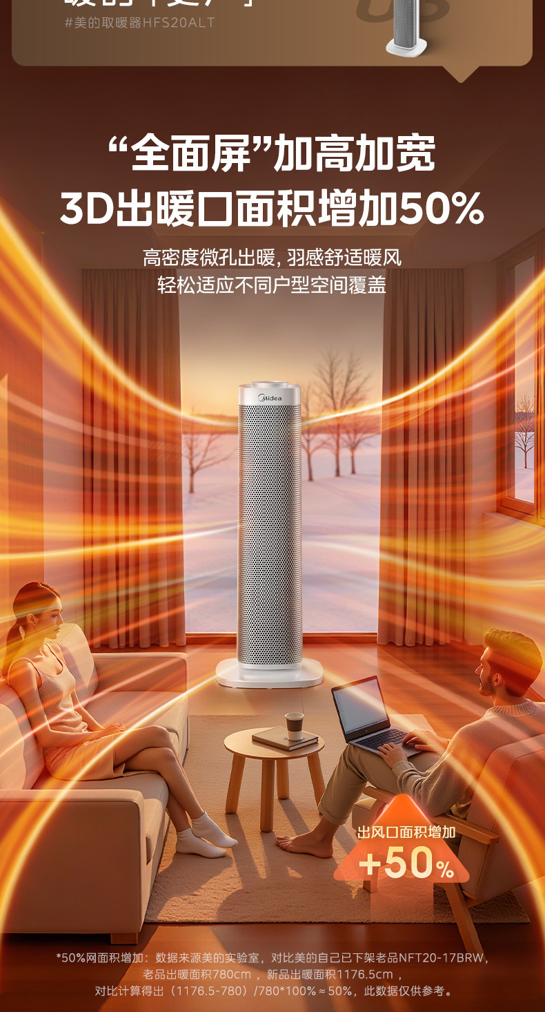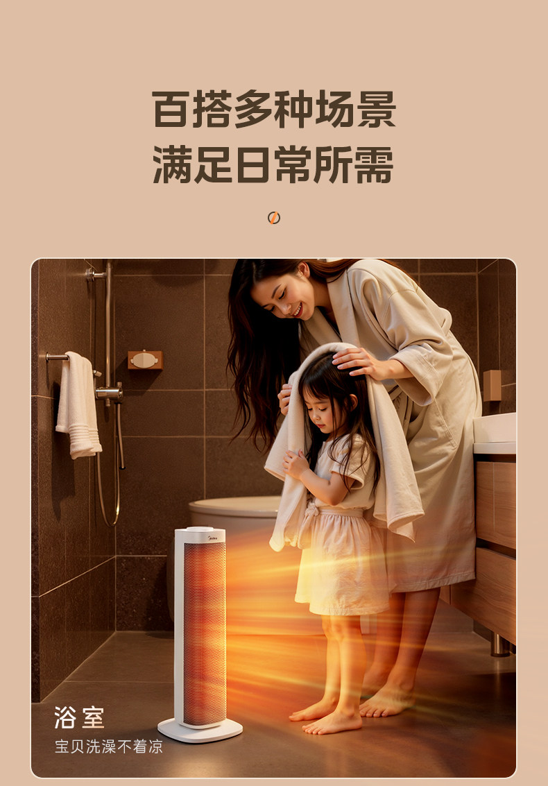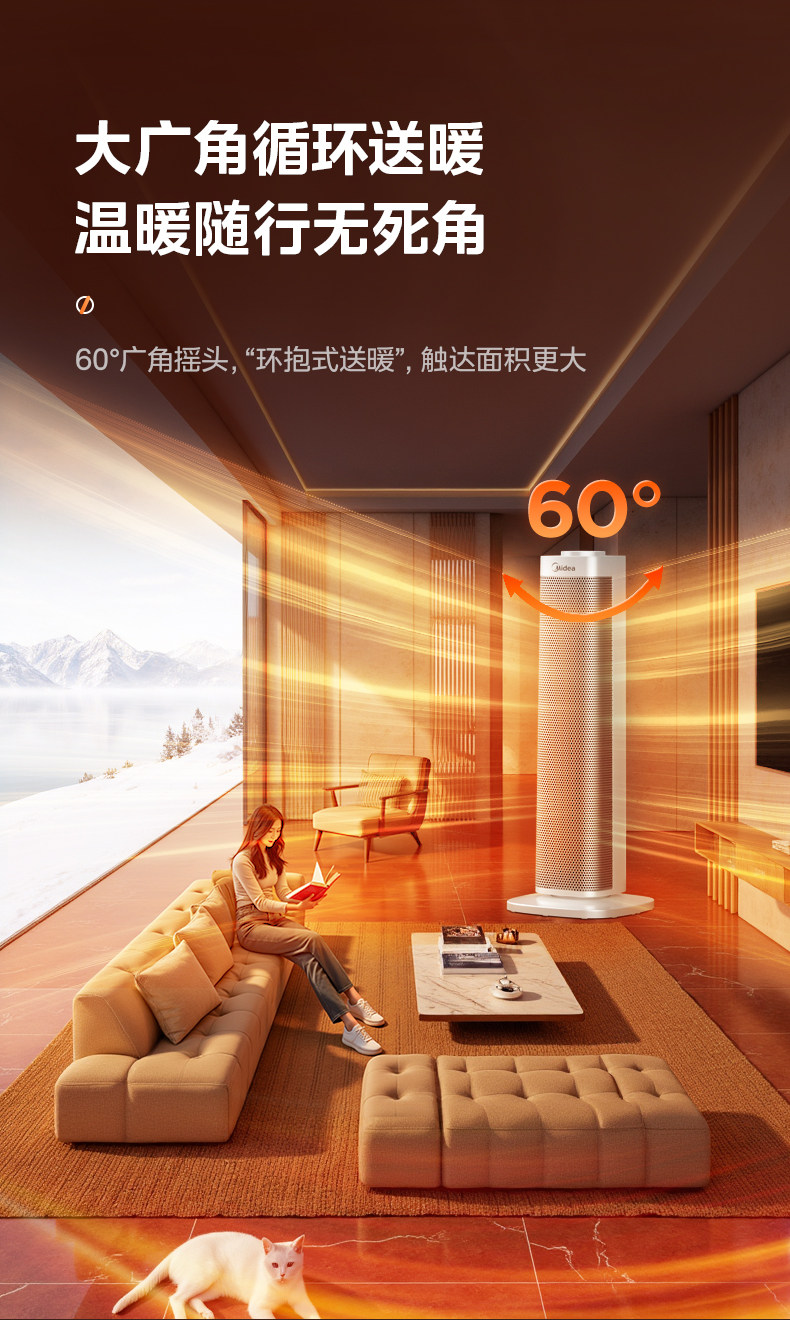 美的暖风机取暖器家用石墨烯电暖气炉节能小太阳2025新款神器冬季