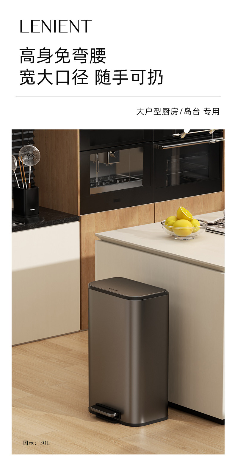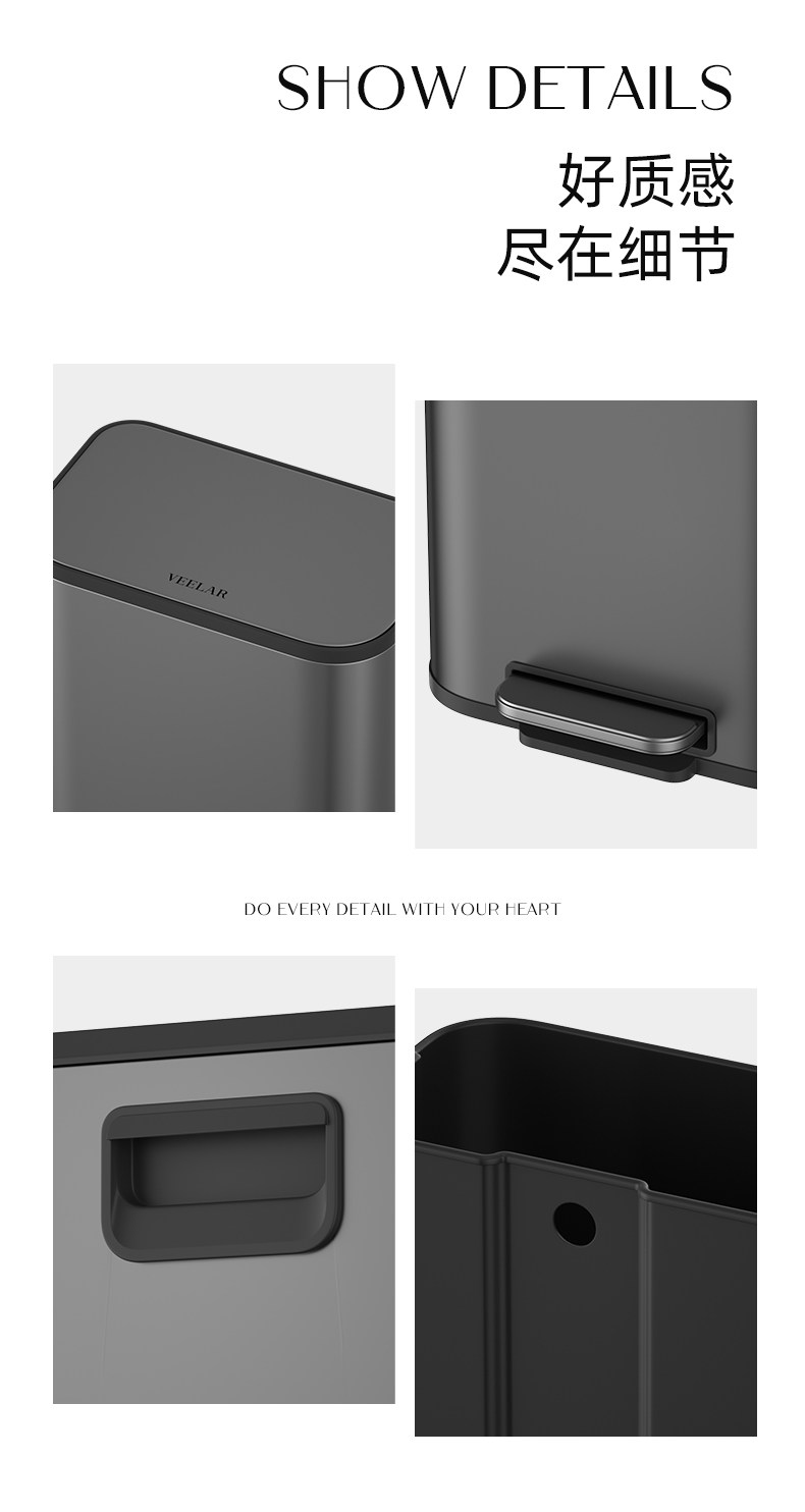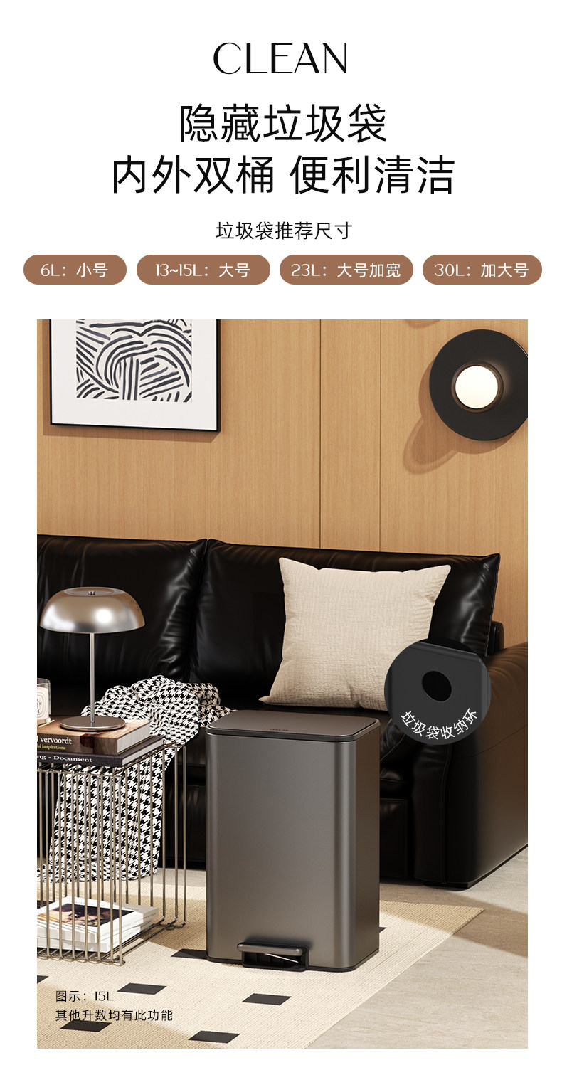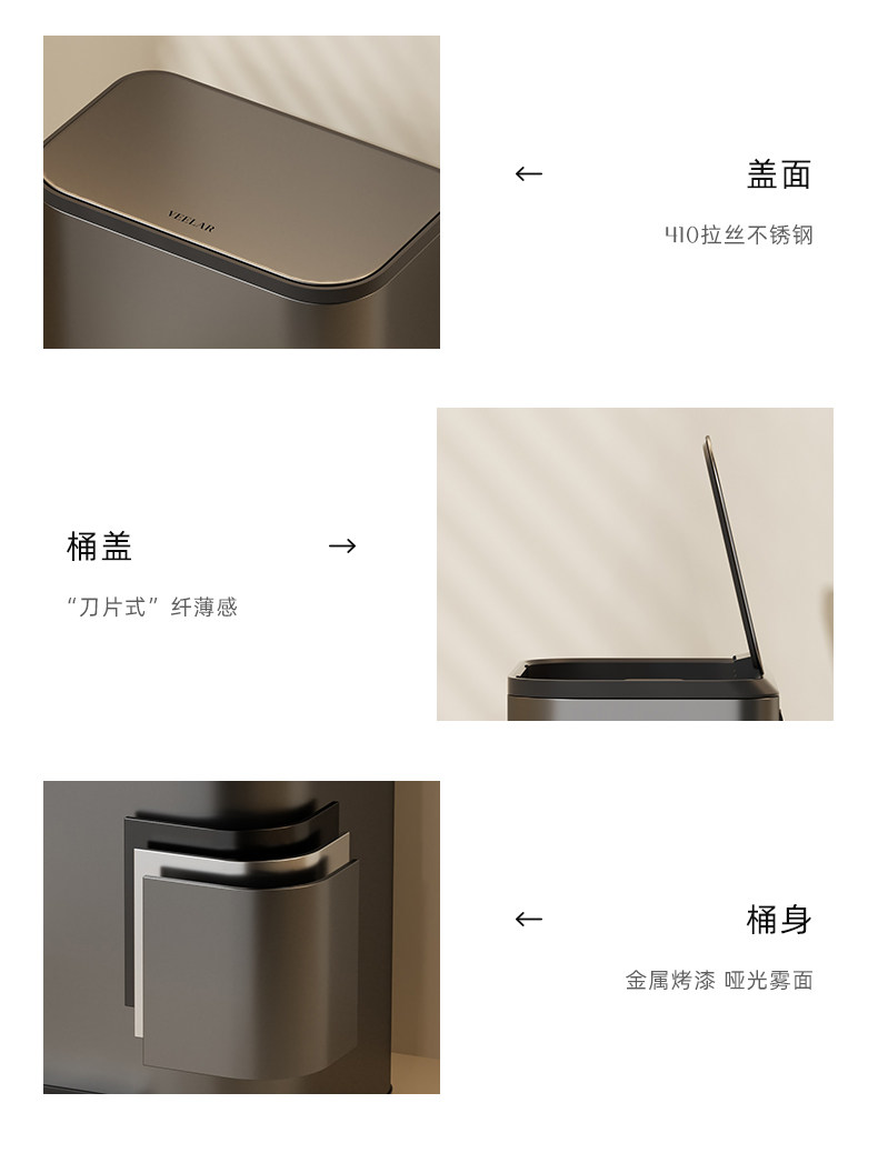 VEELAR 주방 쓰레기통 라지 사이즈 대용량 2025 신상 가정용 거실 경량 럭셔리 고급 스테인리스 스틸 이탈리안