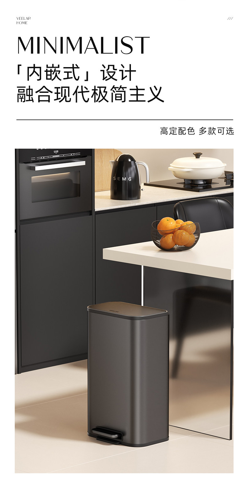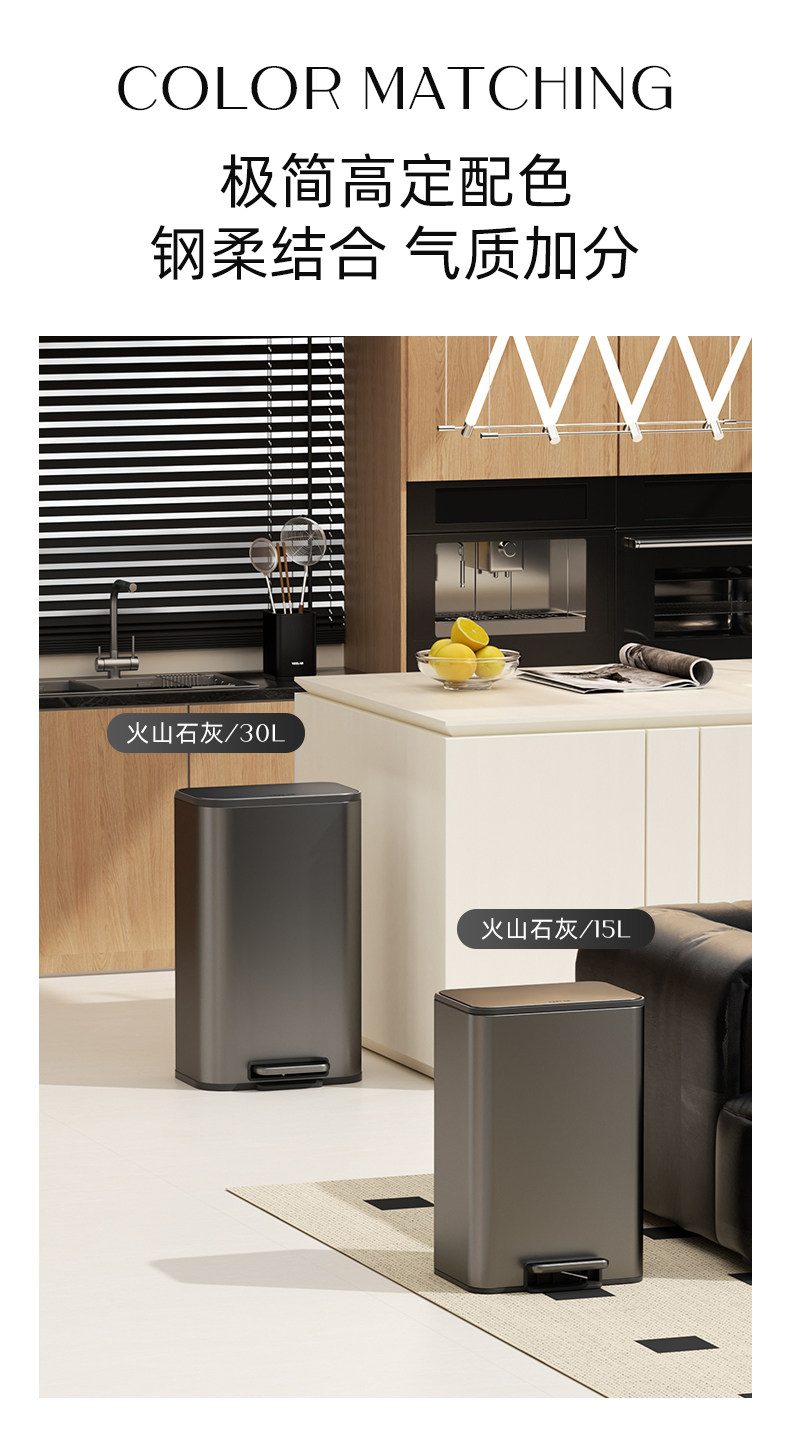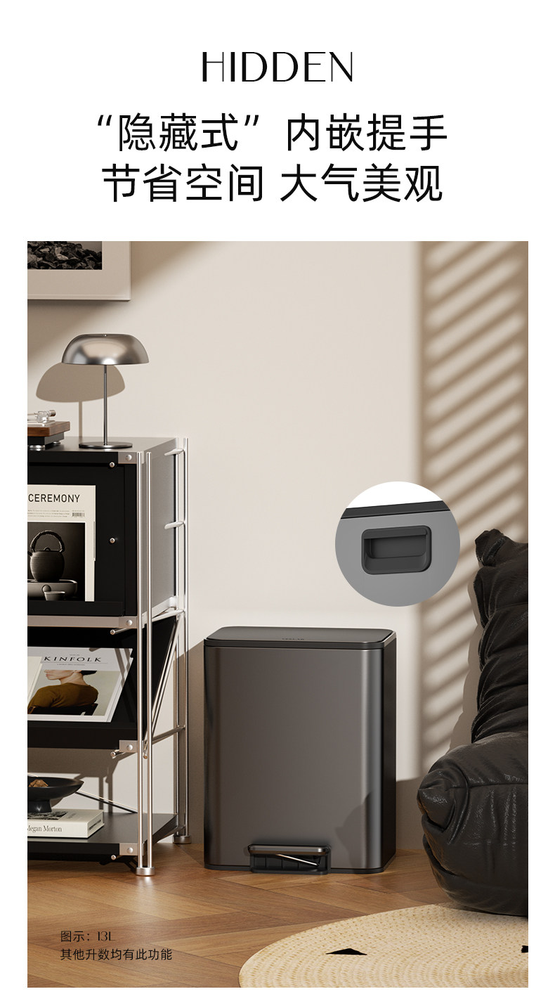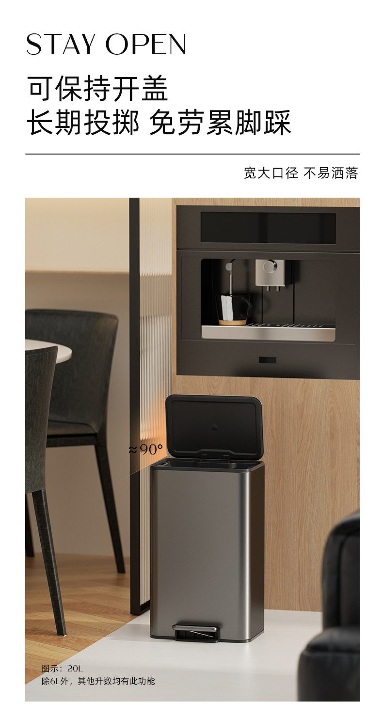 VEELAR 주방 쓰레기통 라지 사이즈 대용량 2025 신상 가정용 거실 경량 럭셔리 고급 스테인리스 스틸 이탈리안