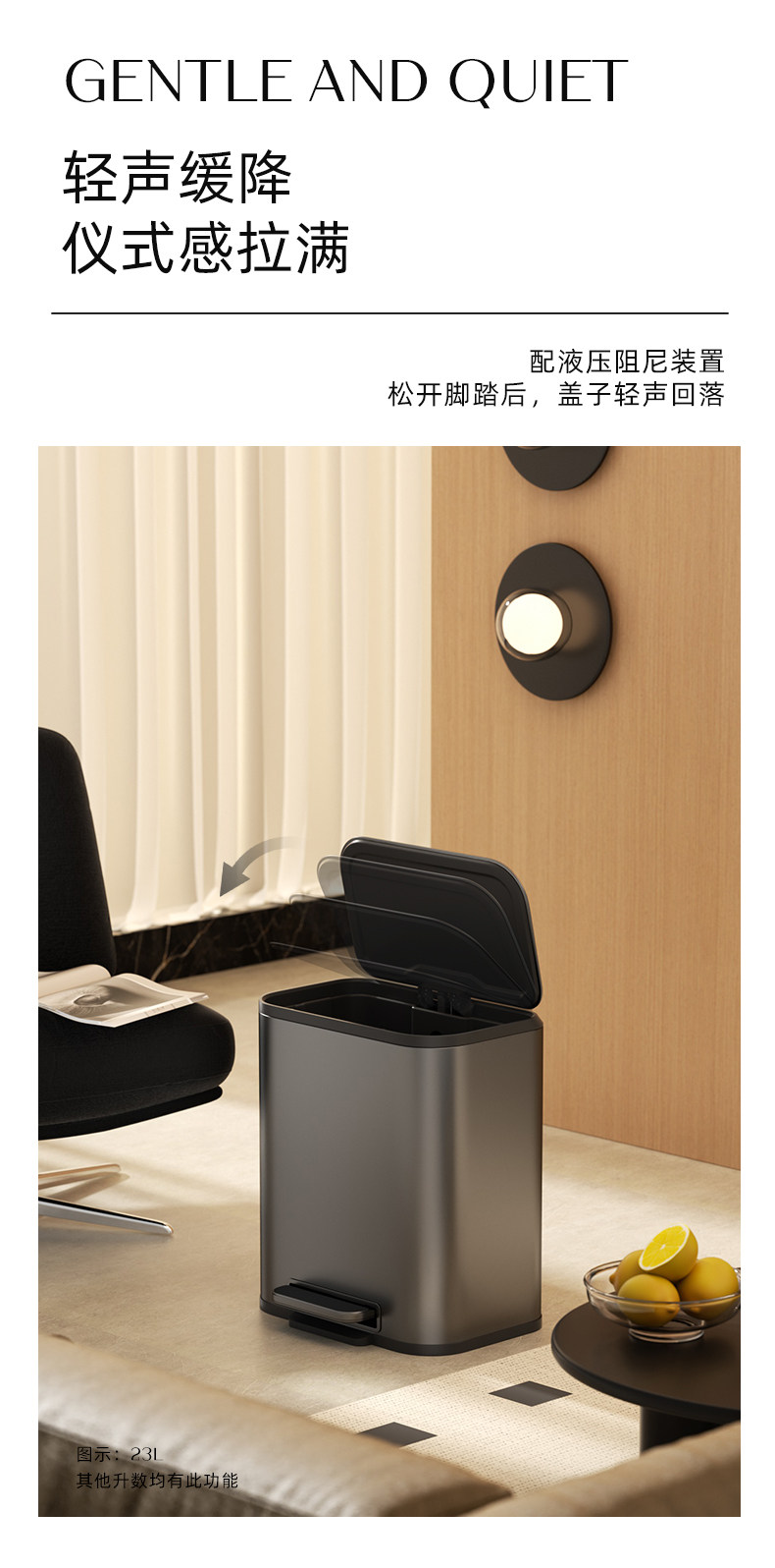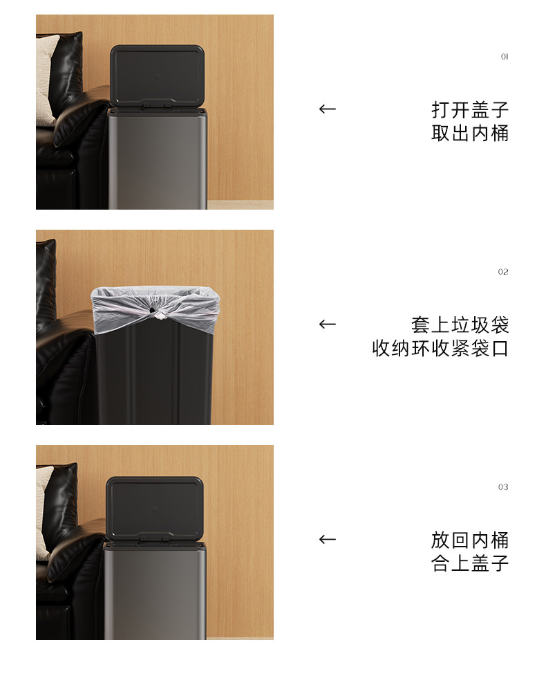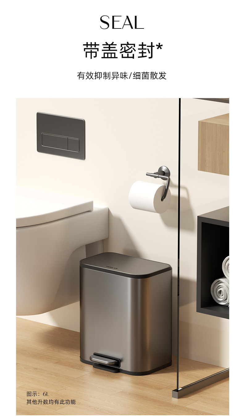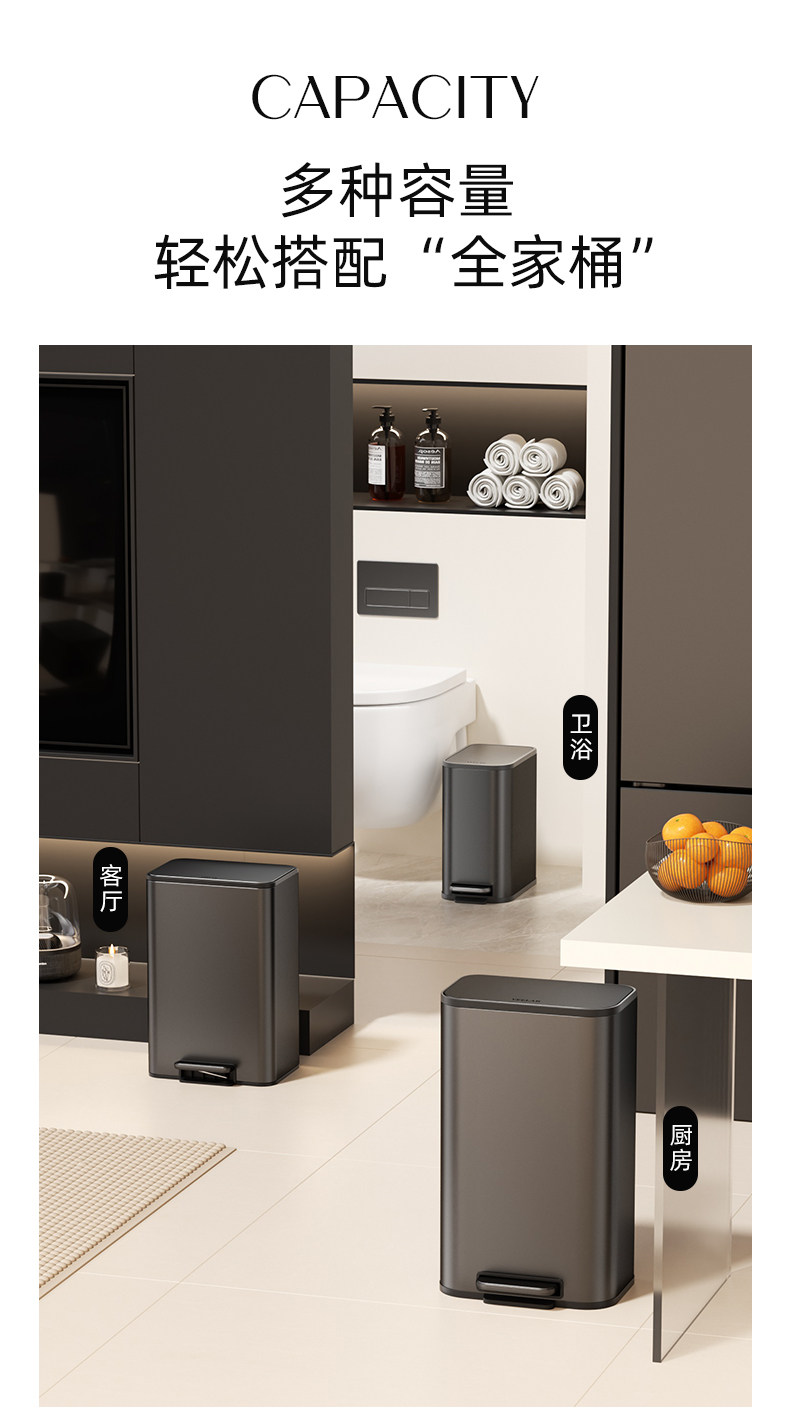 VEELAR 주방 쓰레기통 라지 사이즈 대용량 2025 신상 가정용 거실 경량 럭셔리 고급 스테인리스 스틸 이탈리안