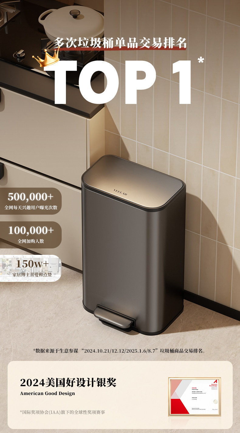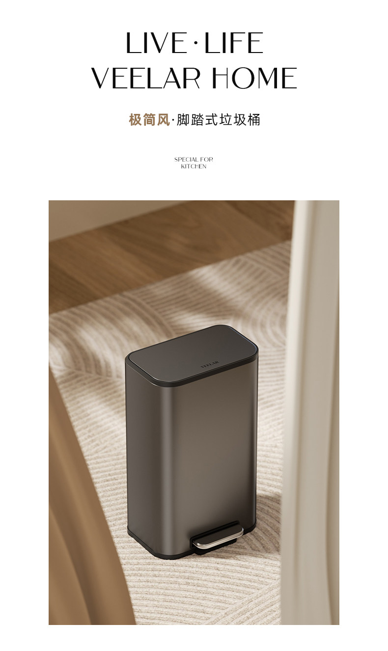 VEELAR厨房垃圾桶大号大容量2025新款家用客厅轻奢高档不锈钢意式