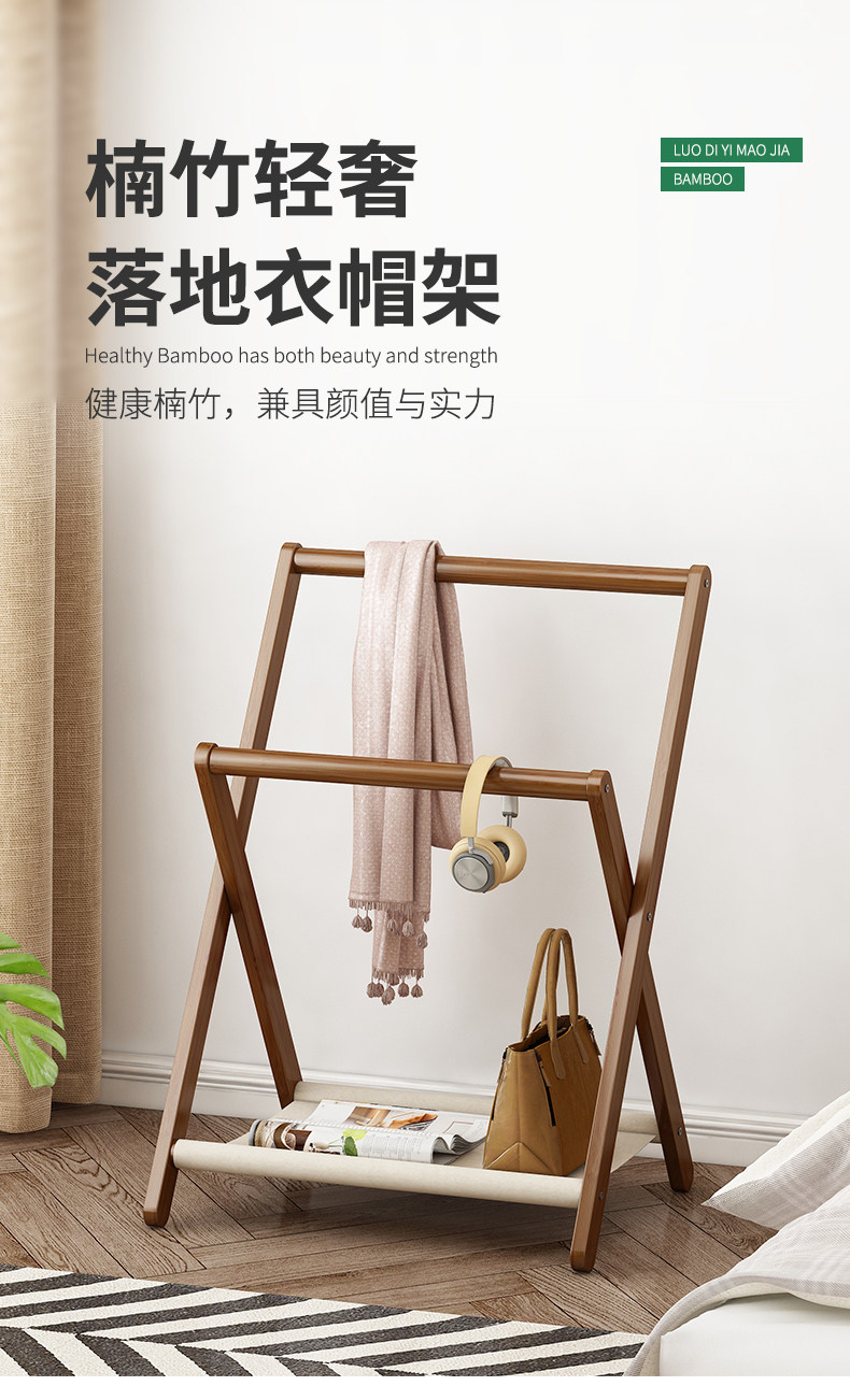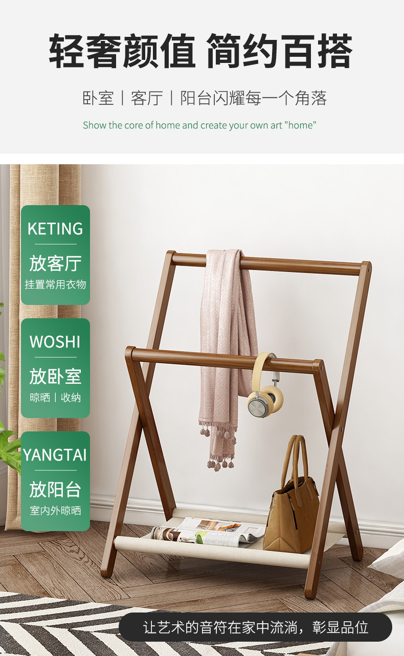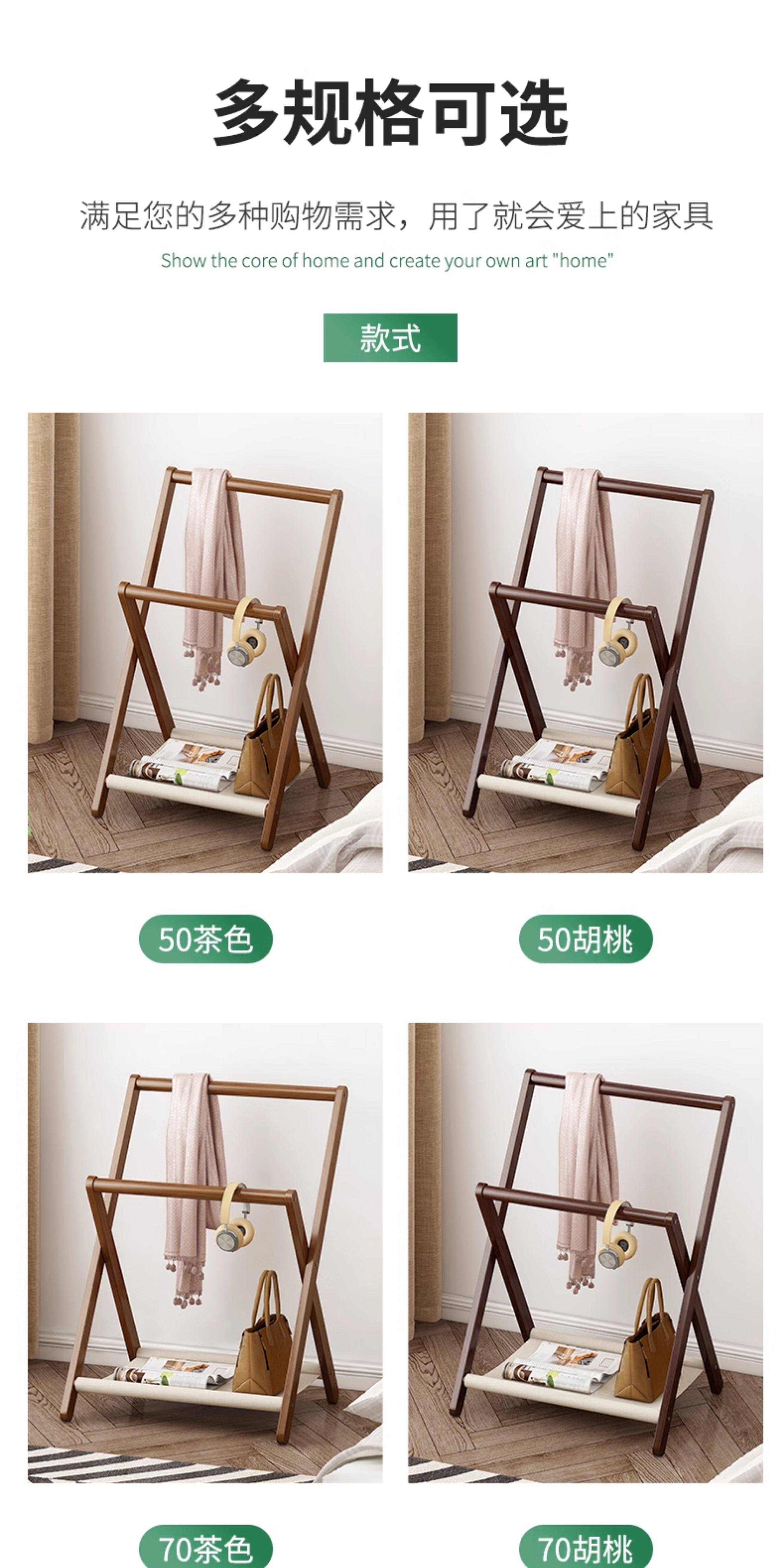 床头衣帽架落地小实木卧室晚上睡觉临时搭衣裤收纳北欧挂衣架家用