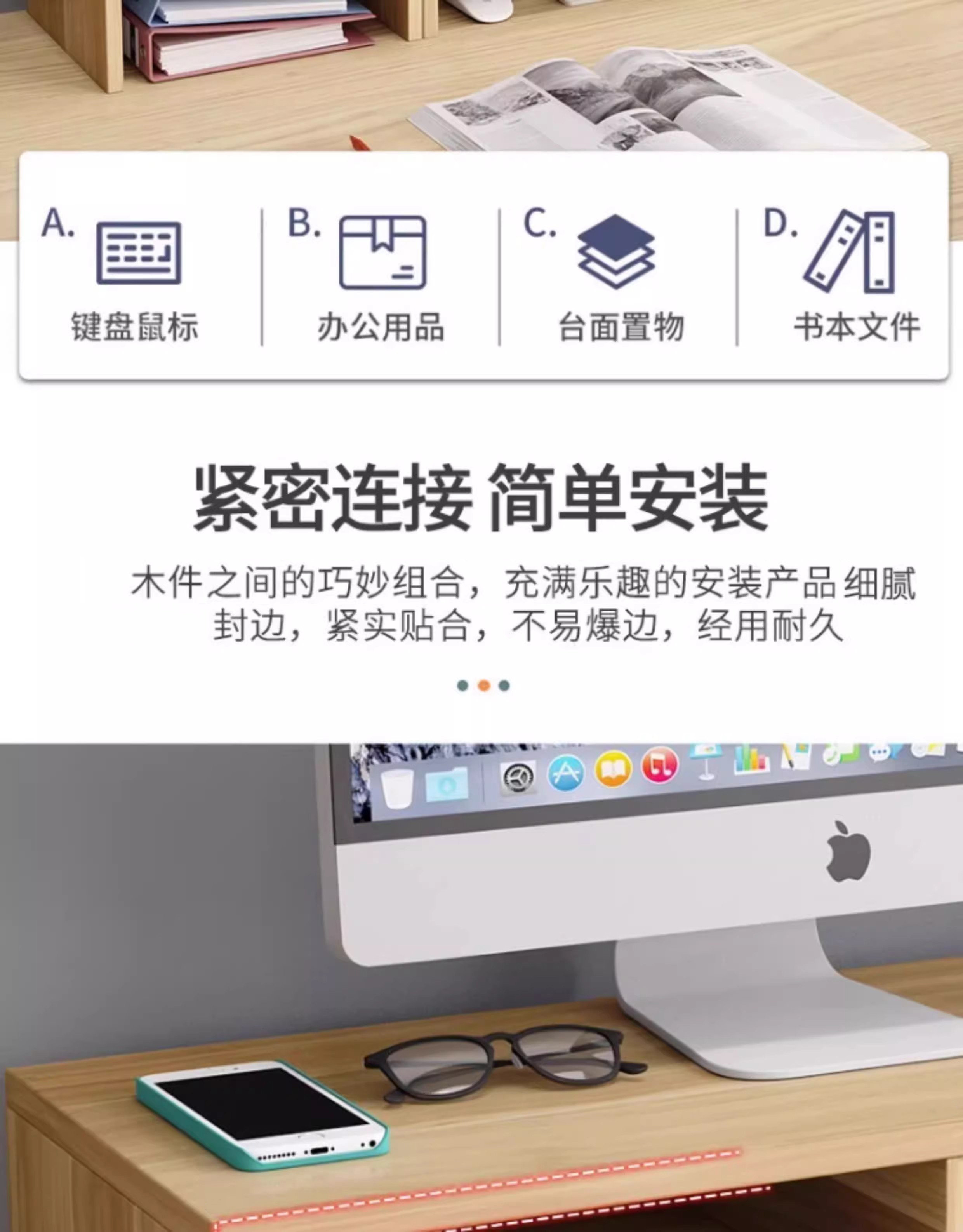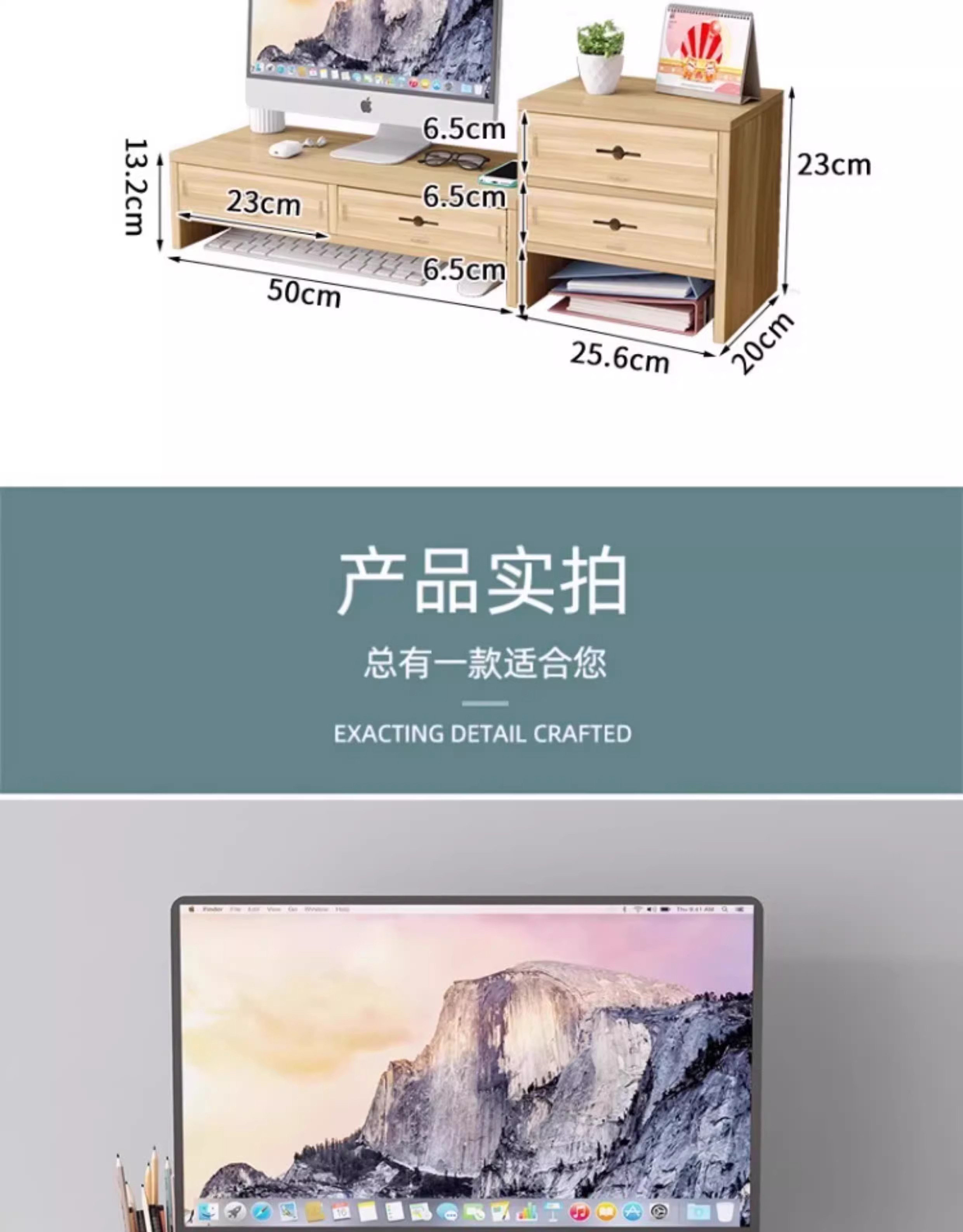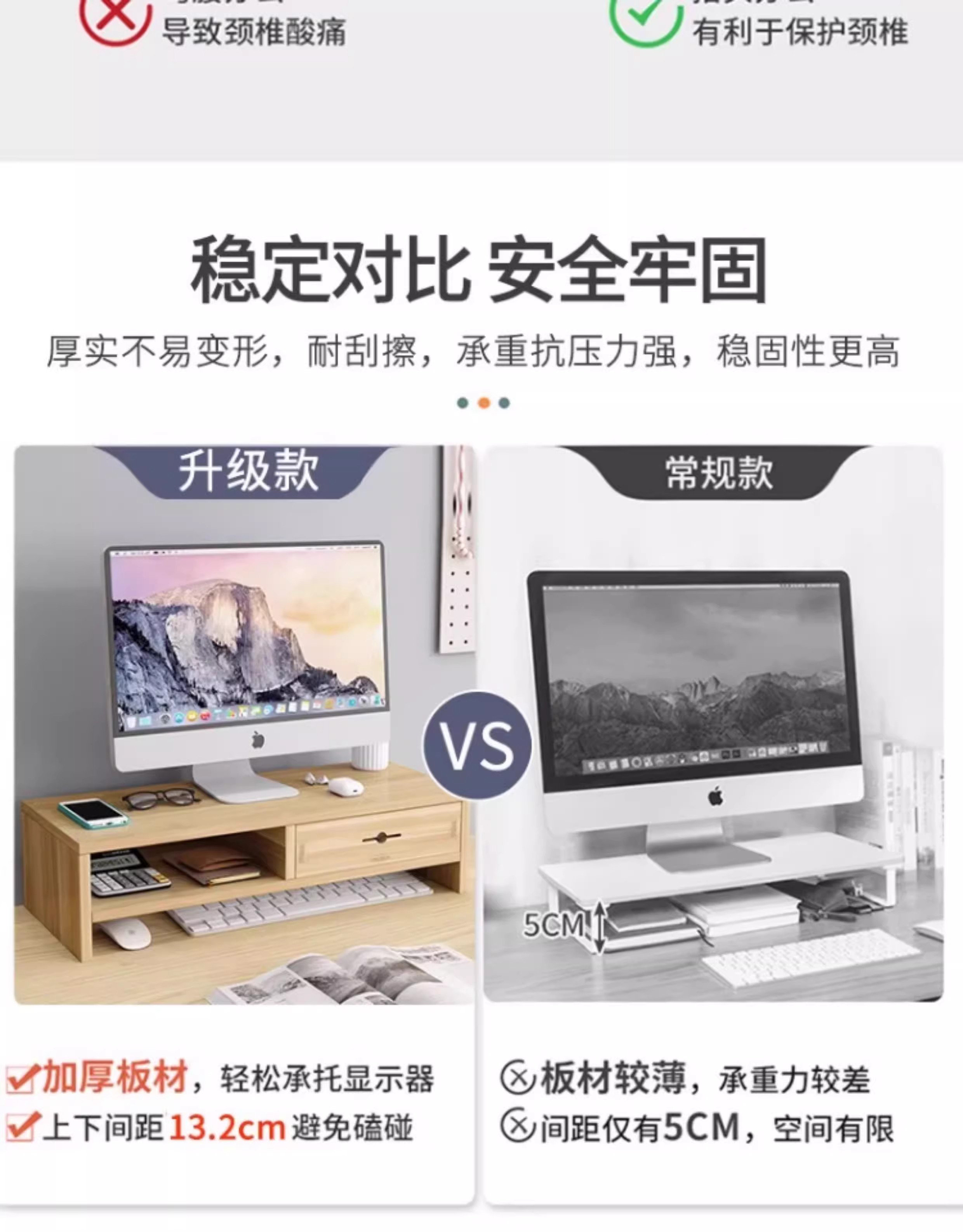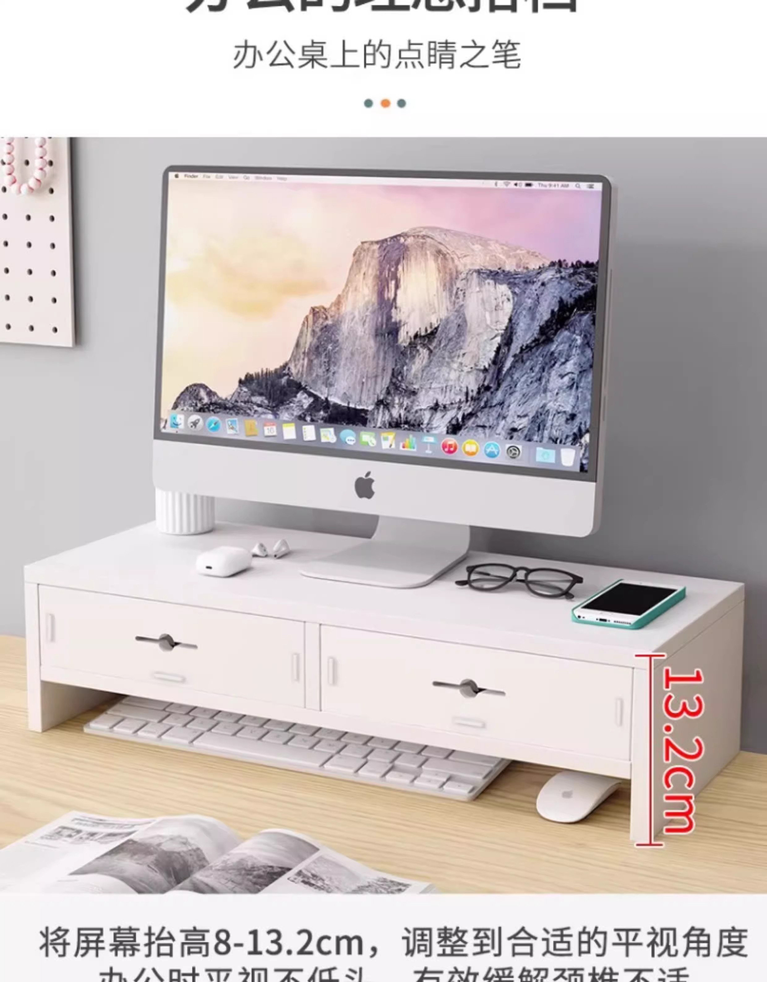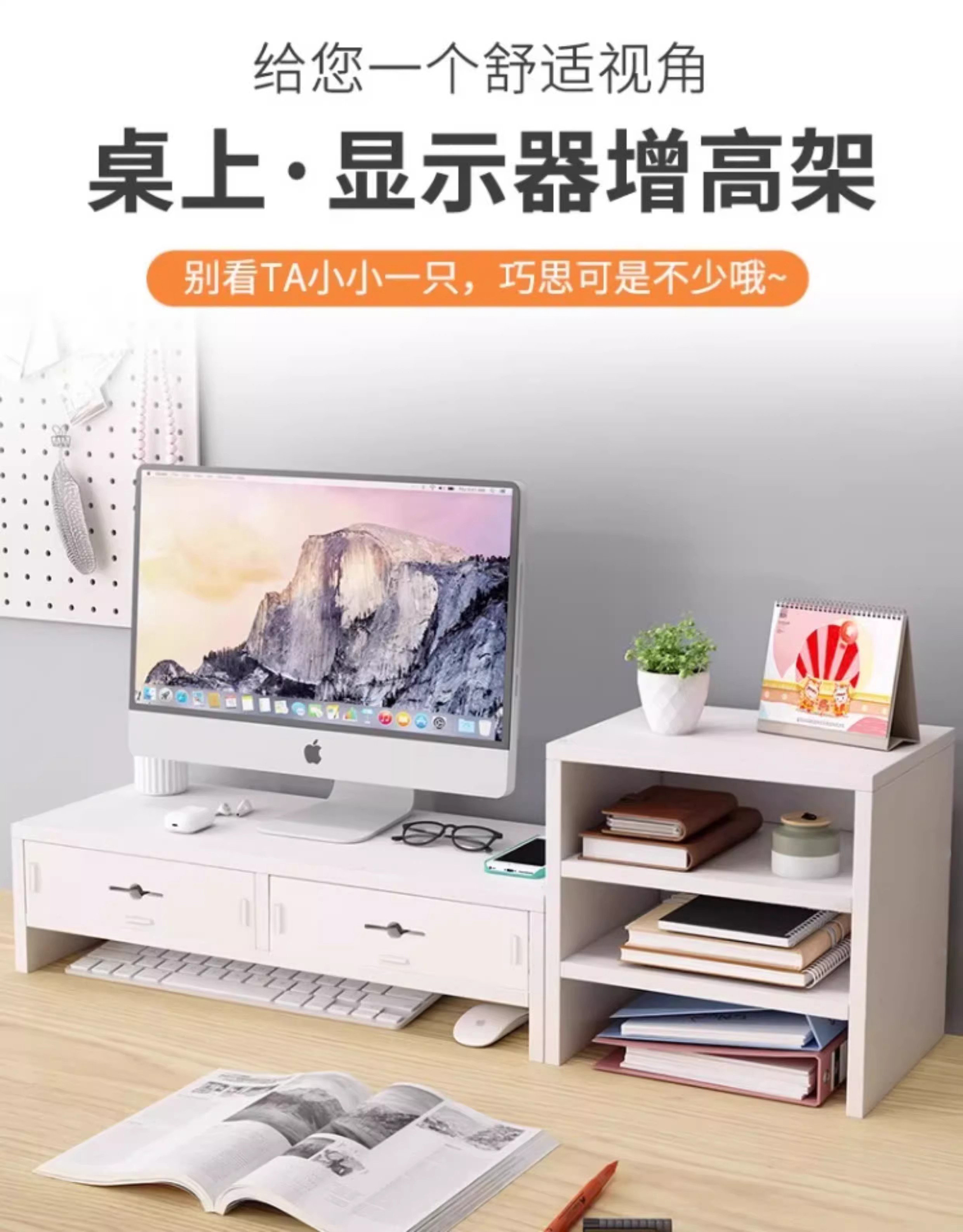 电脑增高架显示器台式支架桌面增高置物架工位带抽屉显示屏支撑架