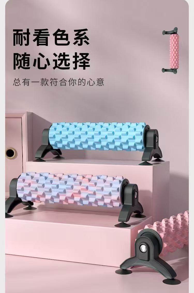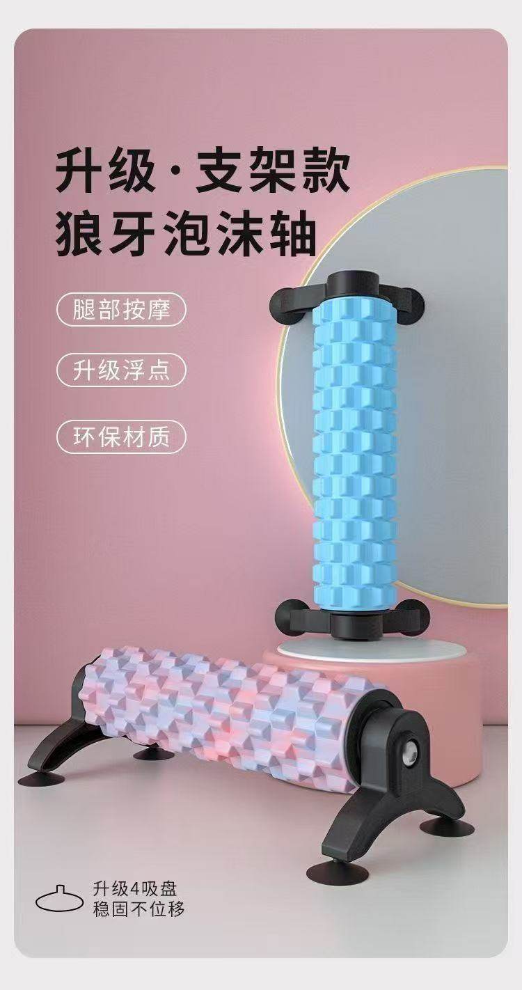 吸盘可拆卸支架瑜伽柱泡沫轴放松实心滚轴狼牙棒按摩滚筒瘦腿健身