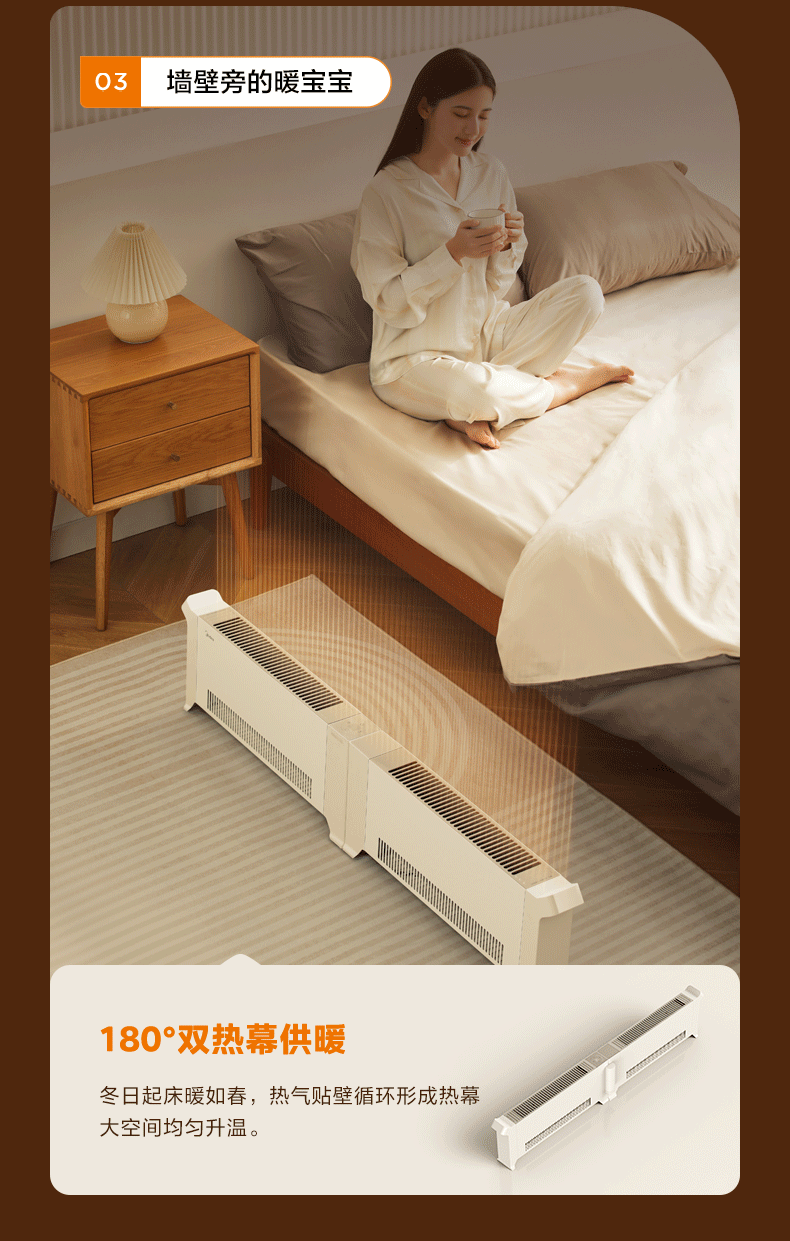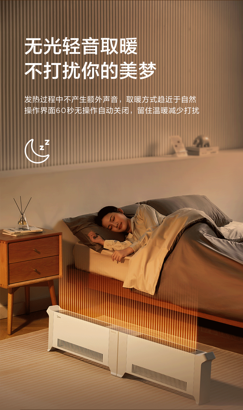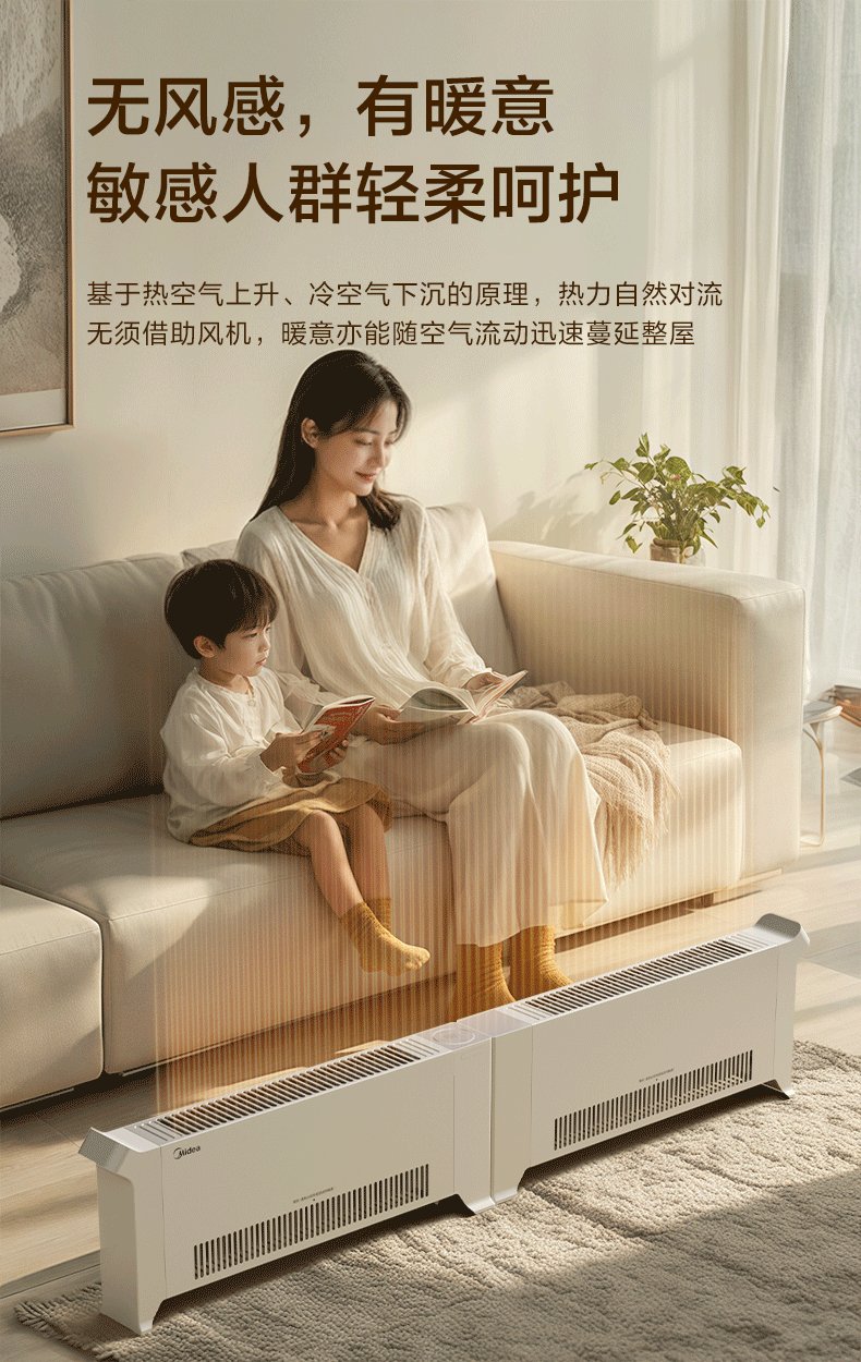 美的踢脚线取暖器家用石墨烯电暖气语音冬季大面积2025新款暖风机