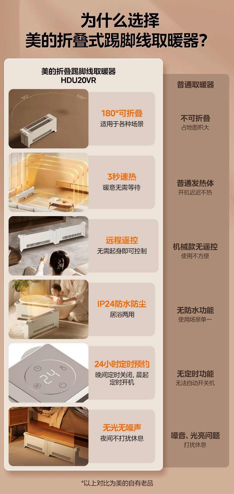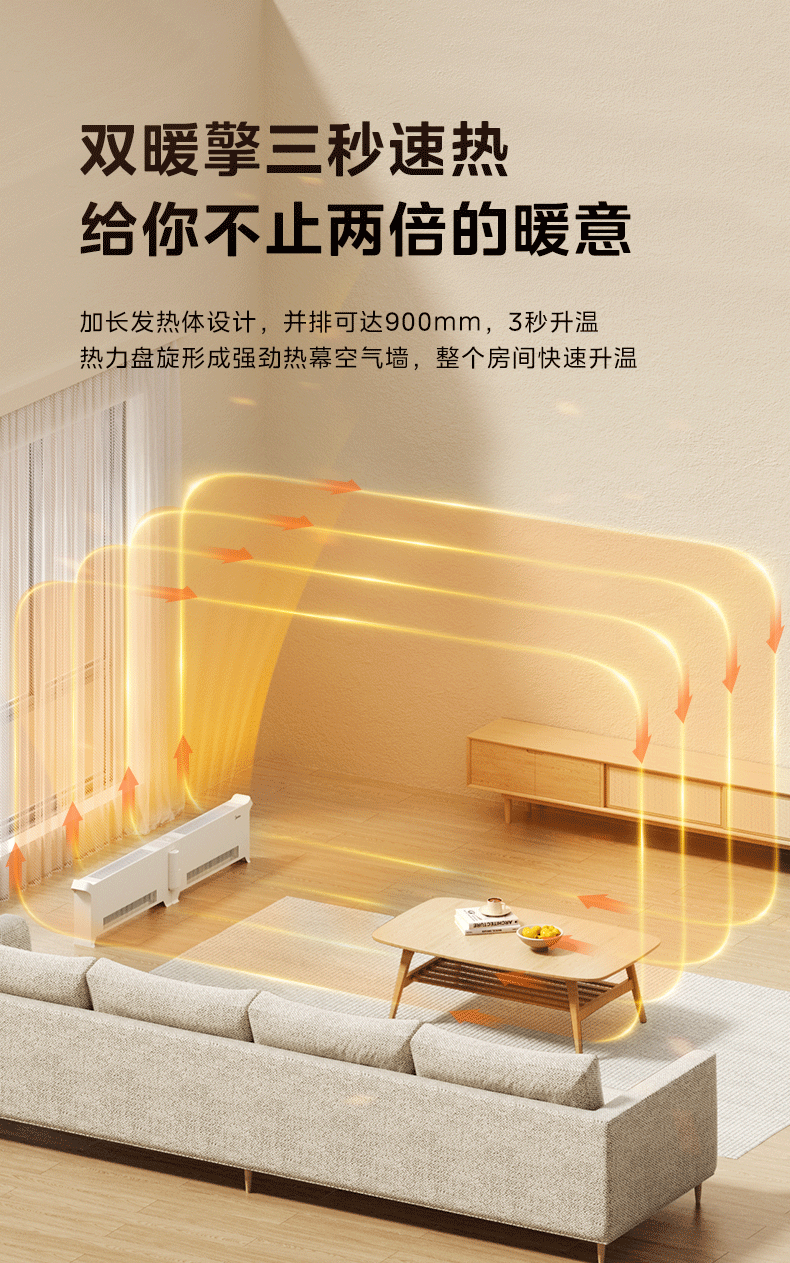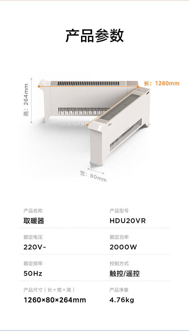 美的踢脚线取暖器家用石墨烯电暖气语音冬季大面积2025新款暖风机