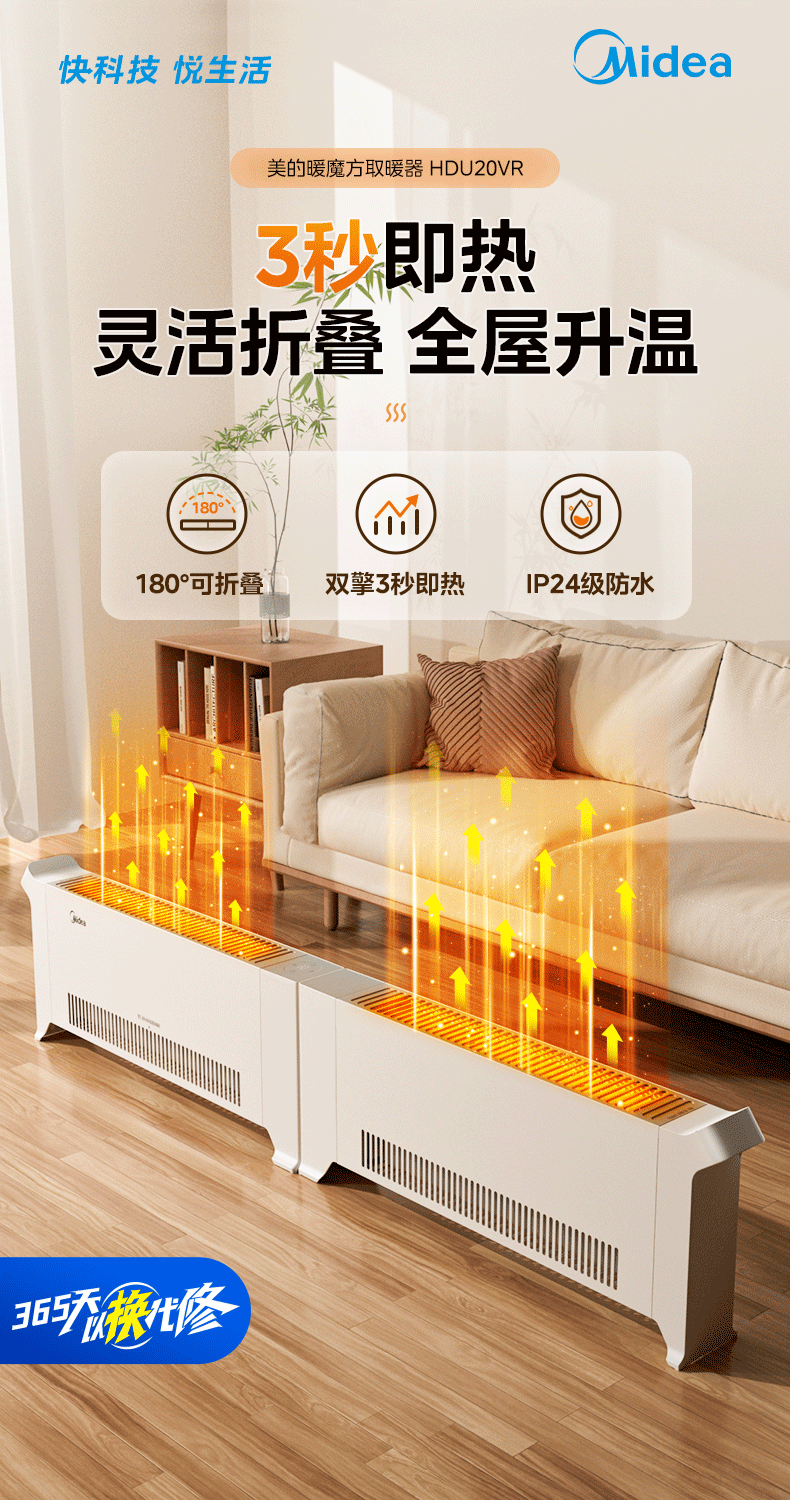 메이디 발차기 라인 히터 가정용 그래핀 전기 난방 음성 겨울 대면적 2025 신상 온풍기