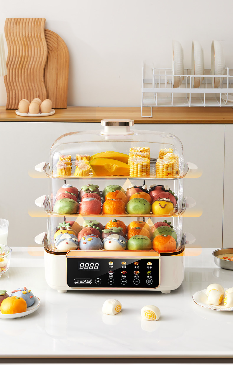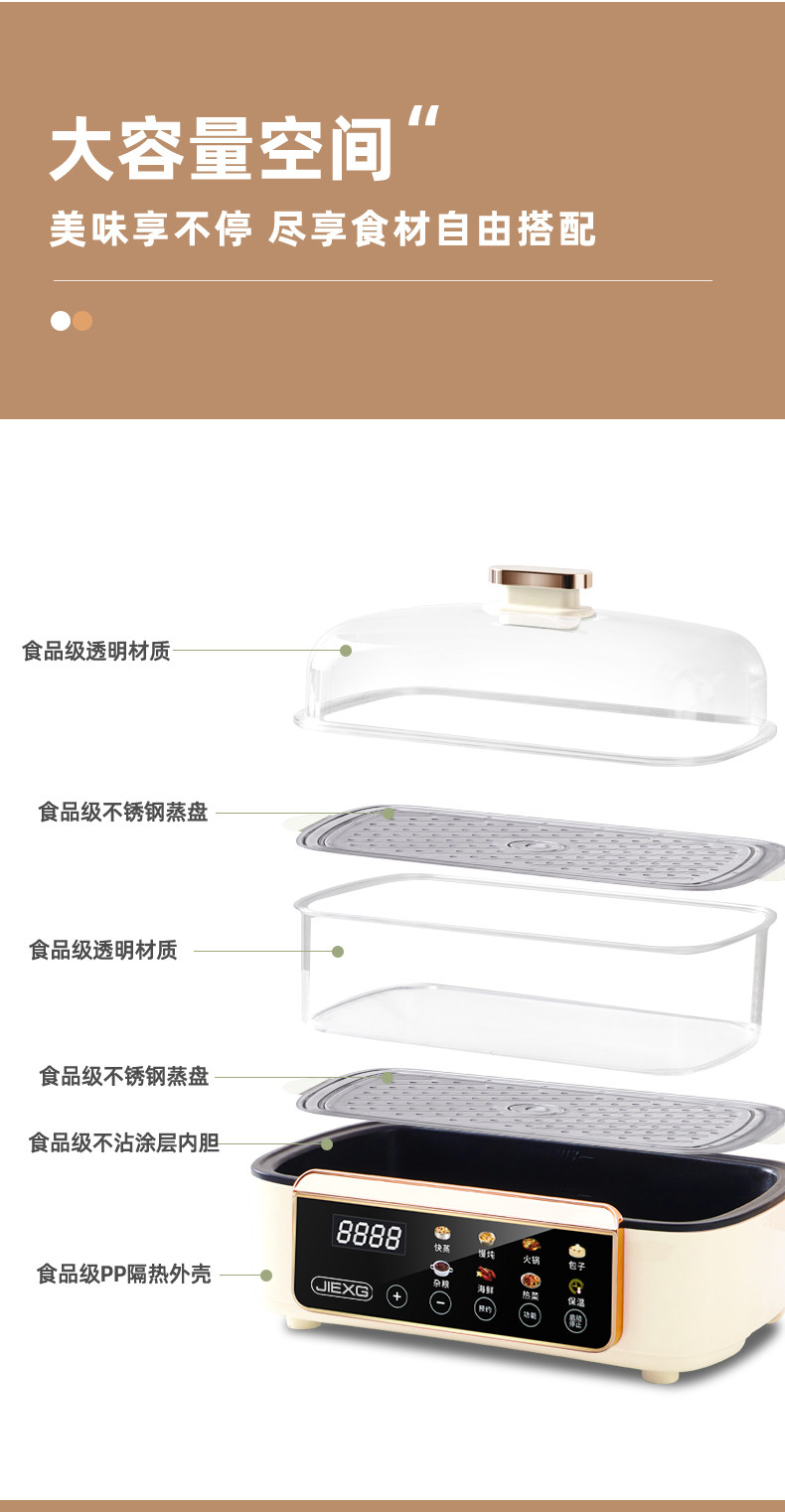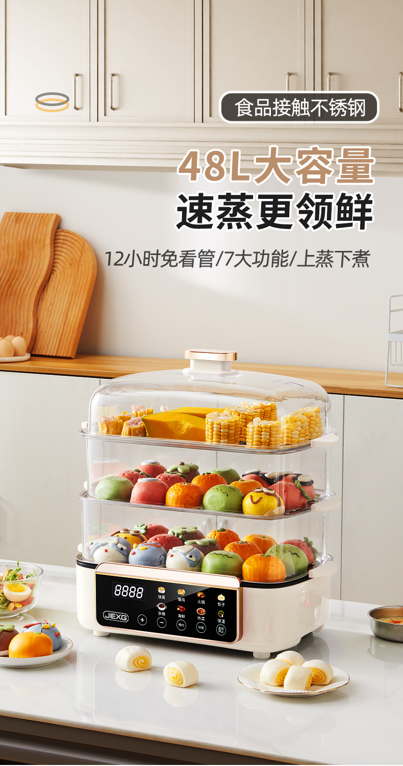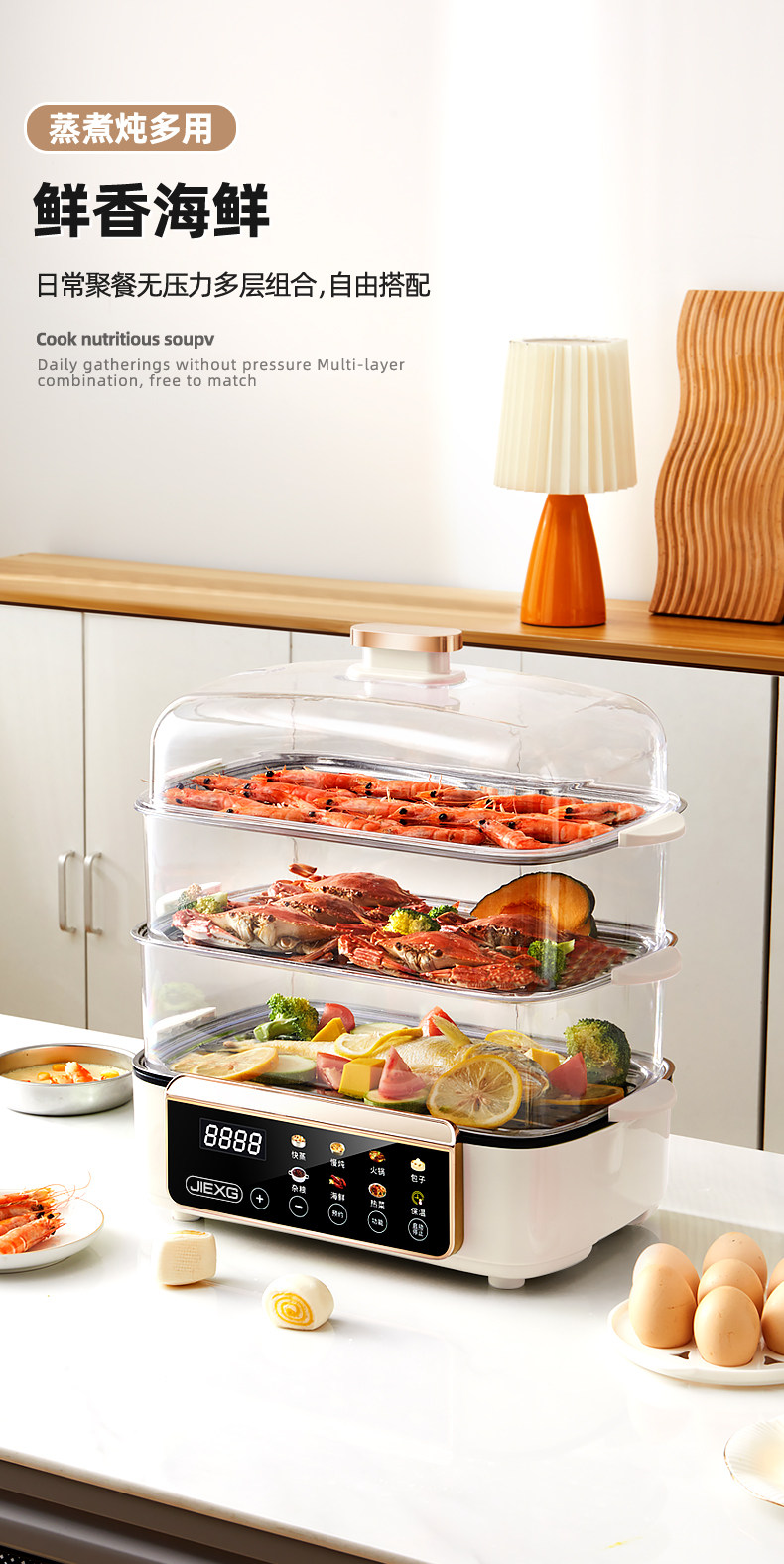 德国电蒸锅家用3层多功能蒸煮一体早餐机预约保温加厚不锈钢蒸盘