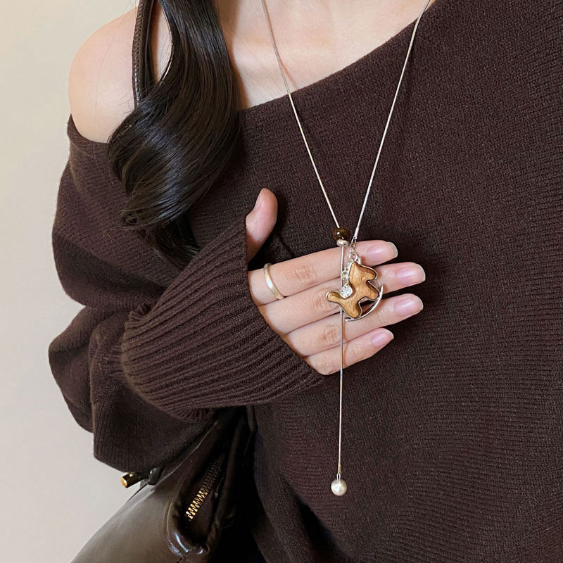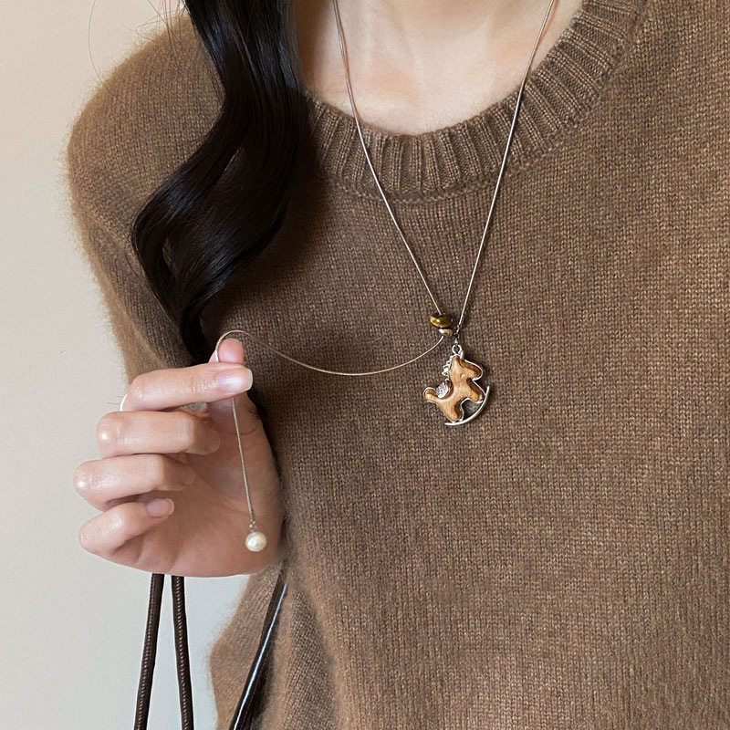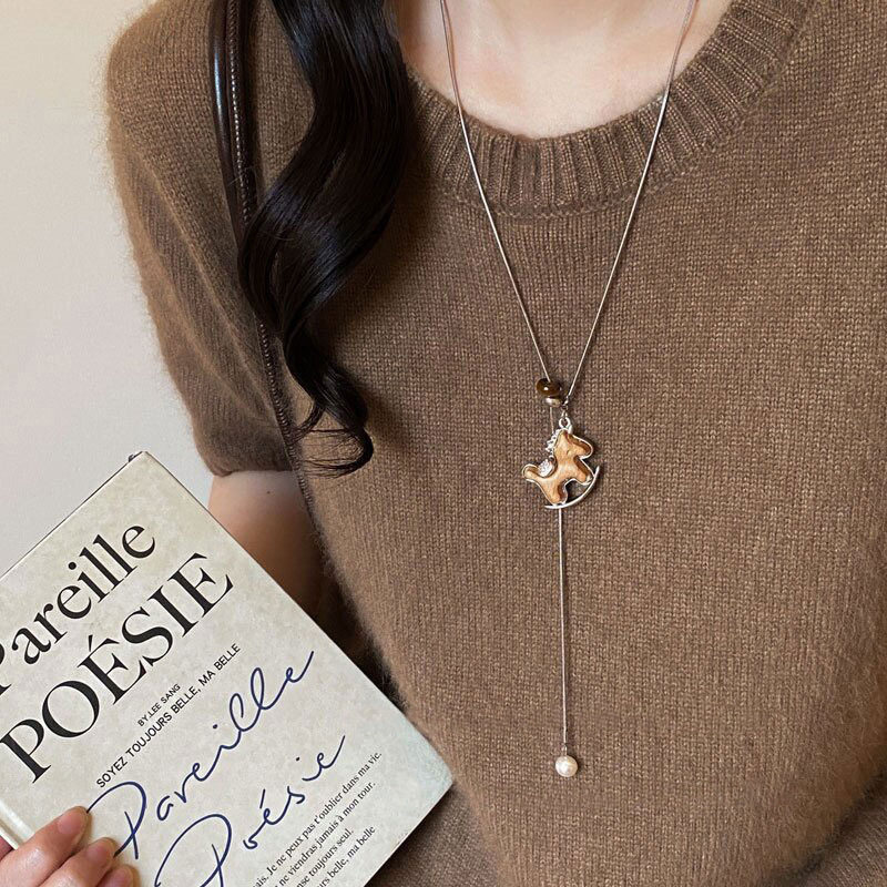 포니 드롭 목걸이 여자 2026 신상 가을 겨울 롱 니트 목걸이 빈티지 본명년 행운 소품 조절 가능
