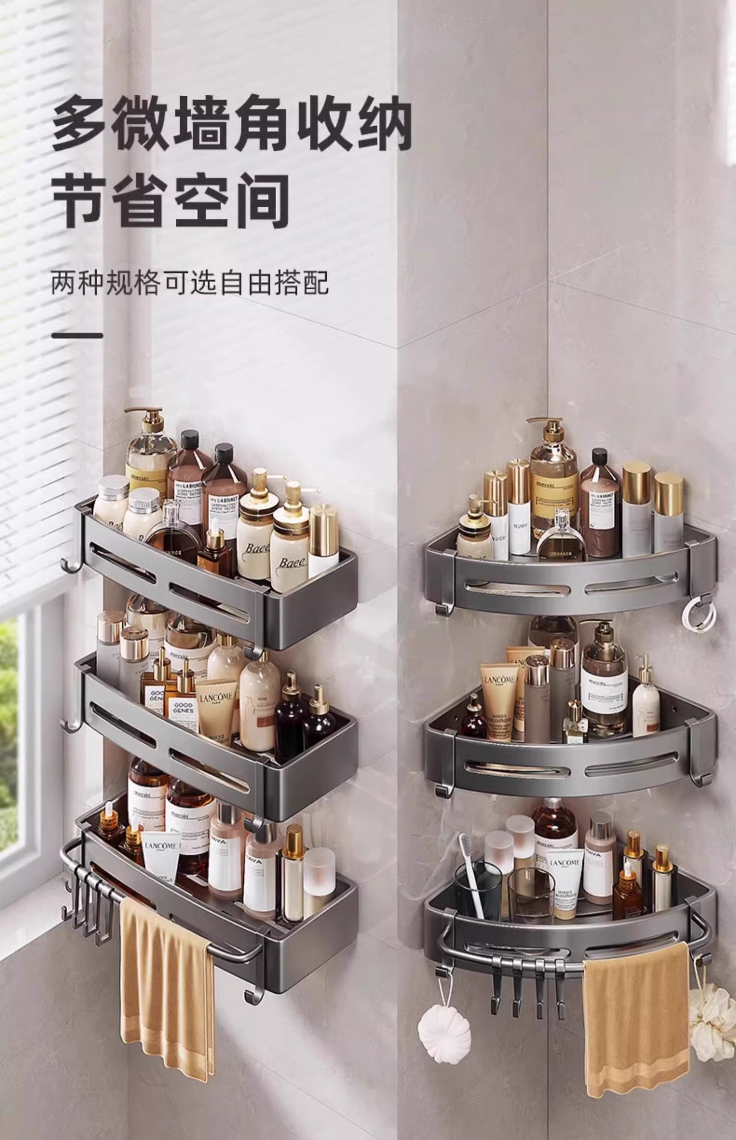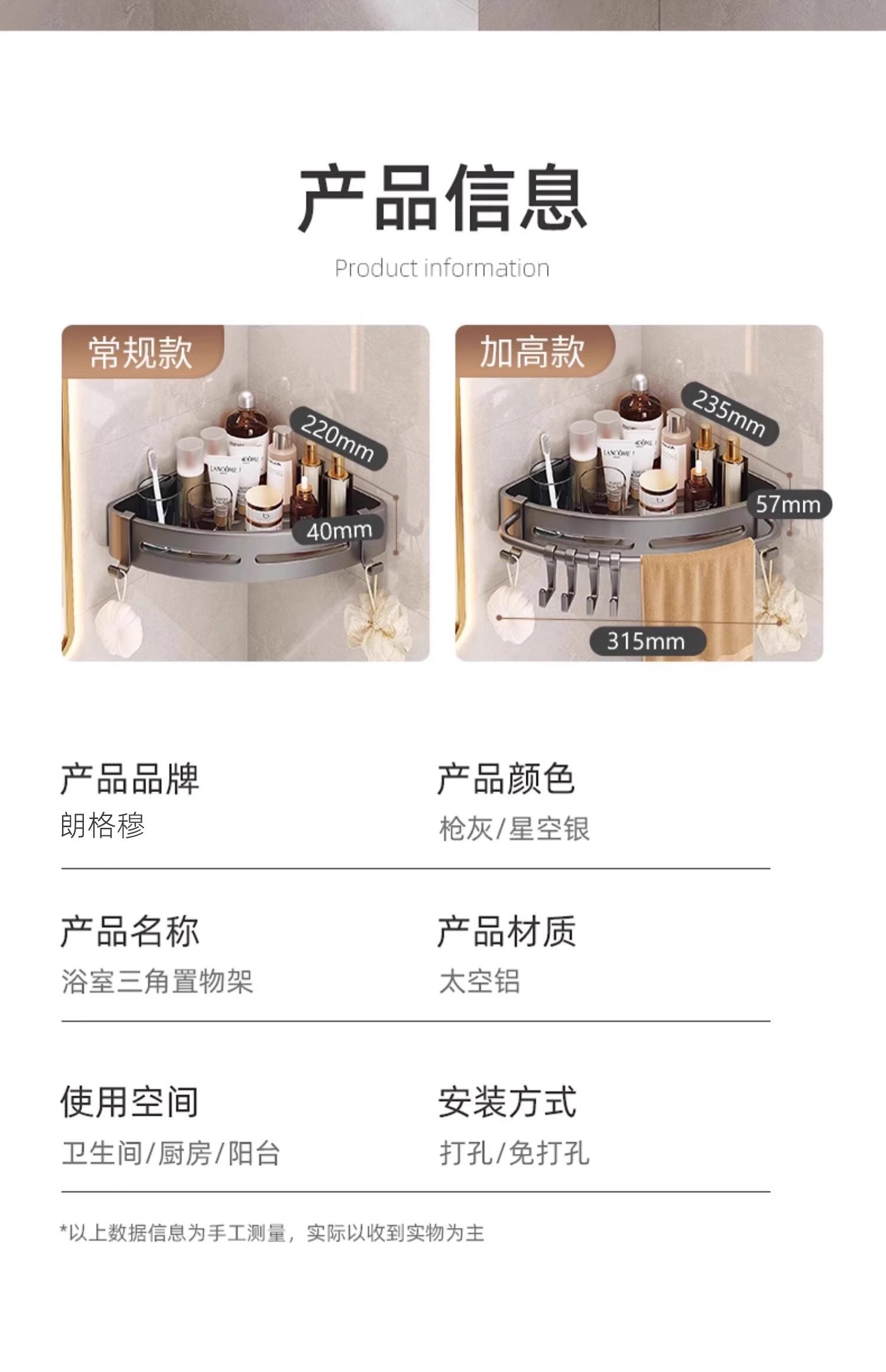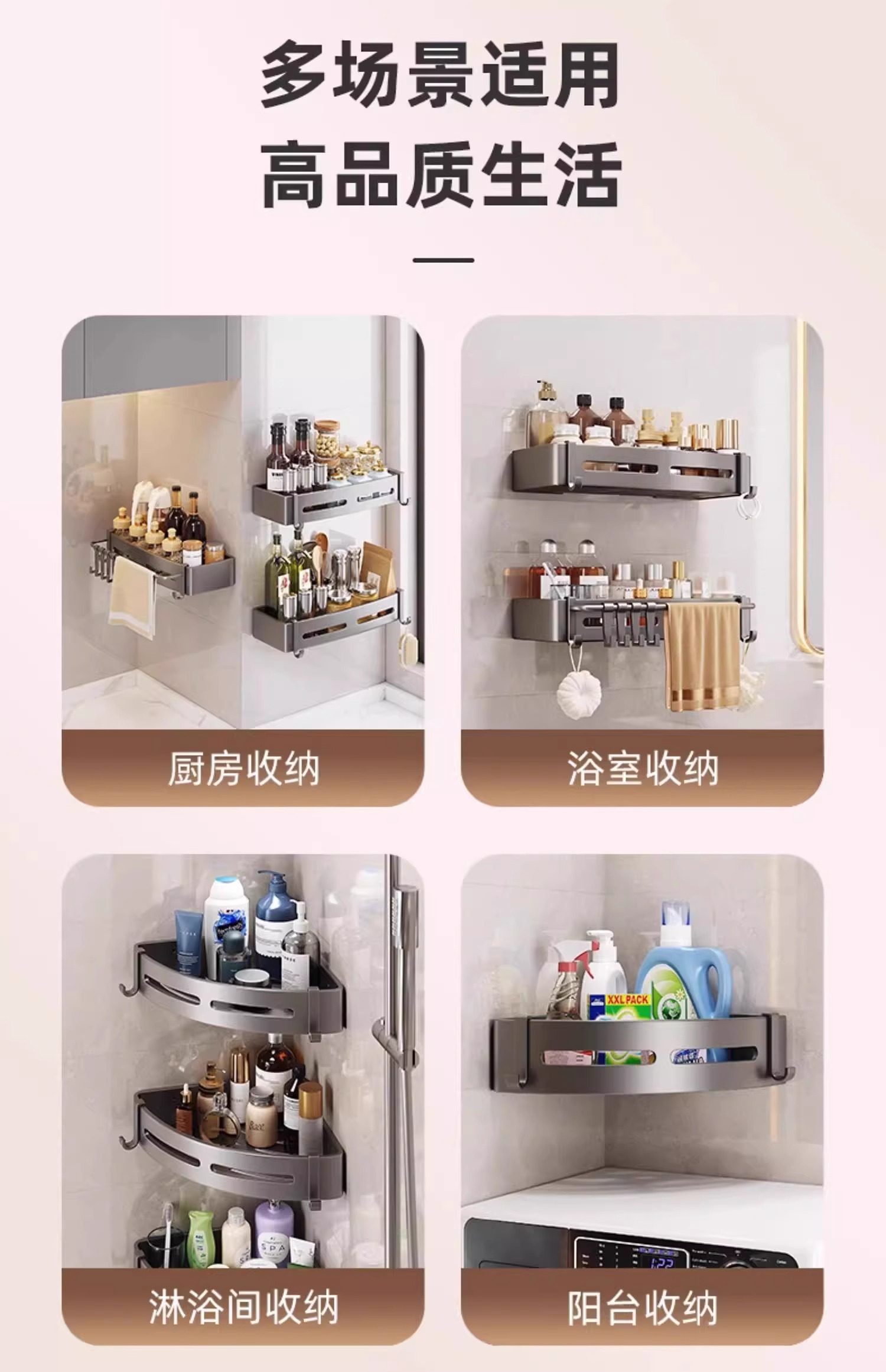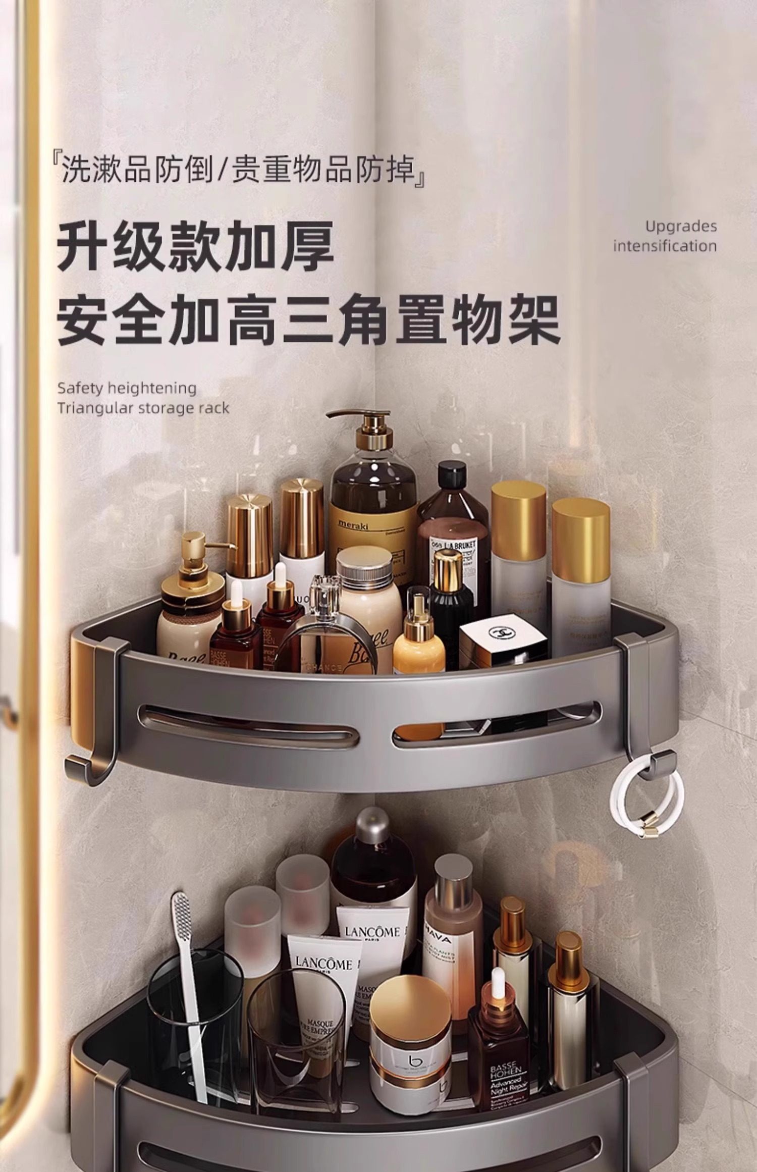 免打孔浴室卫生间置物架厕所洗漱台墙上三角收纳淋浴洗澡壁挂墙角