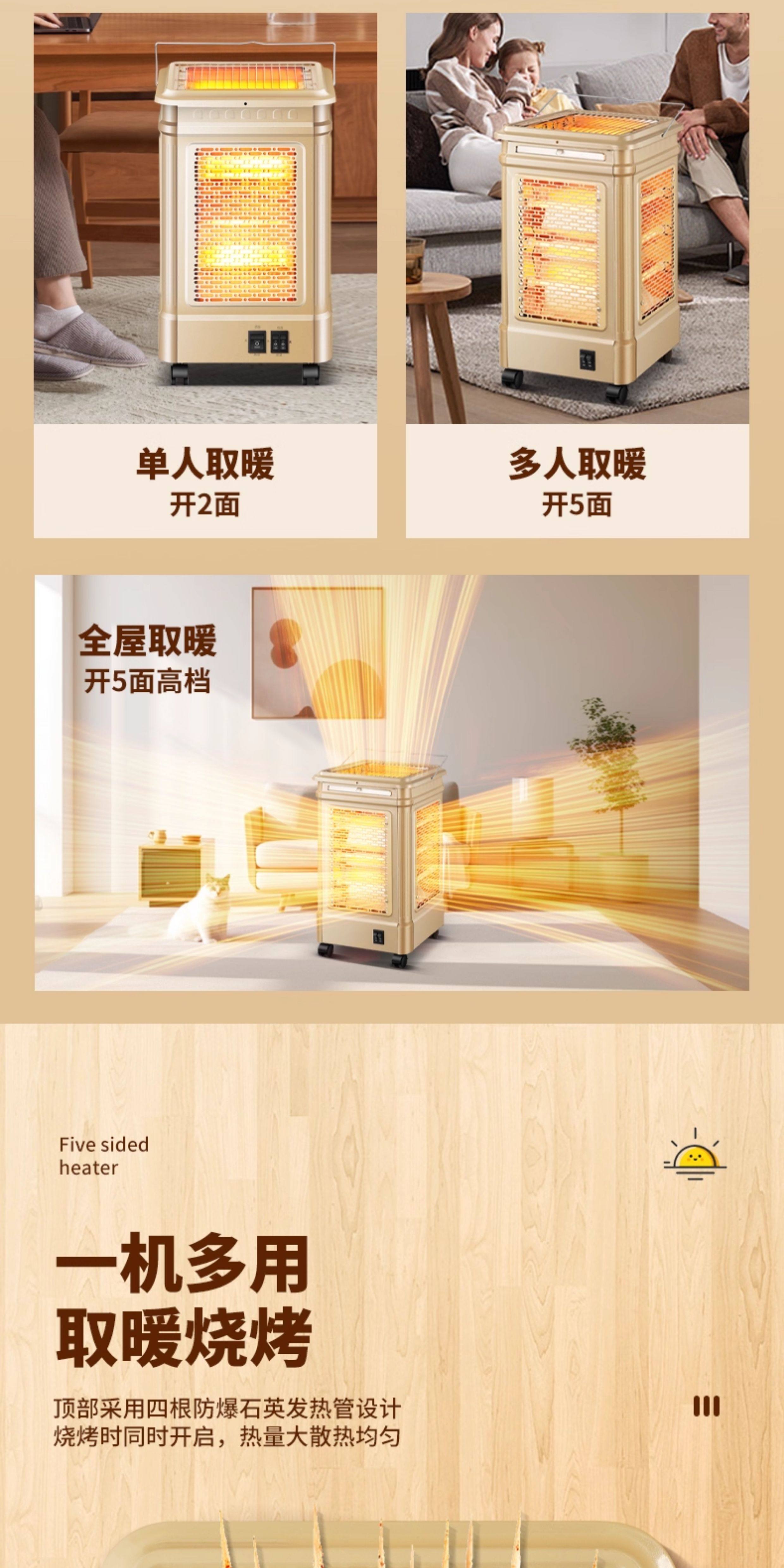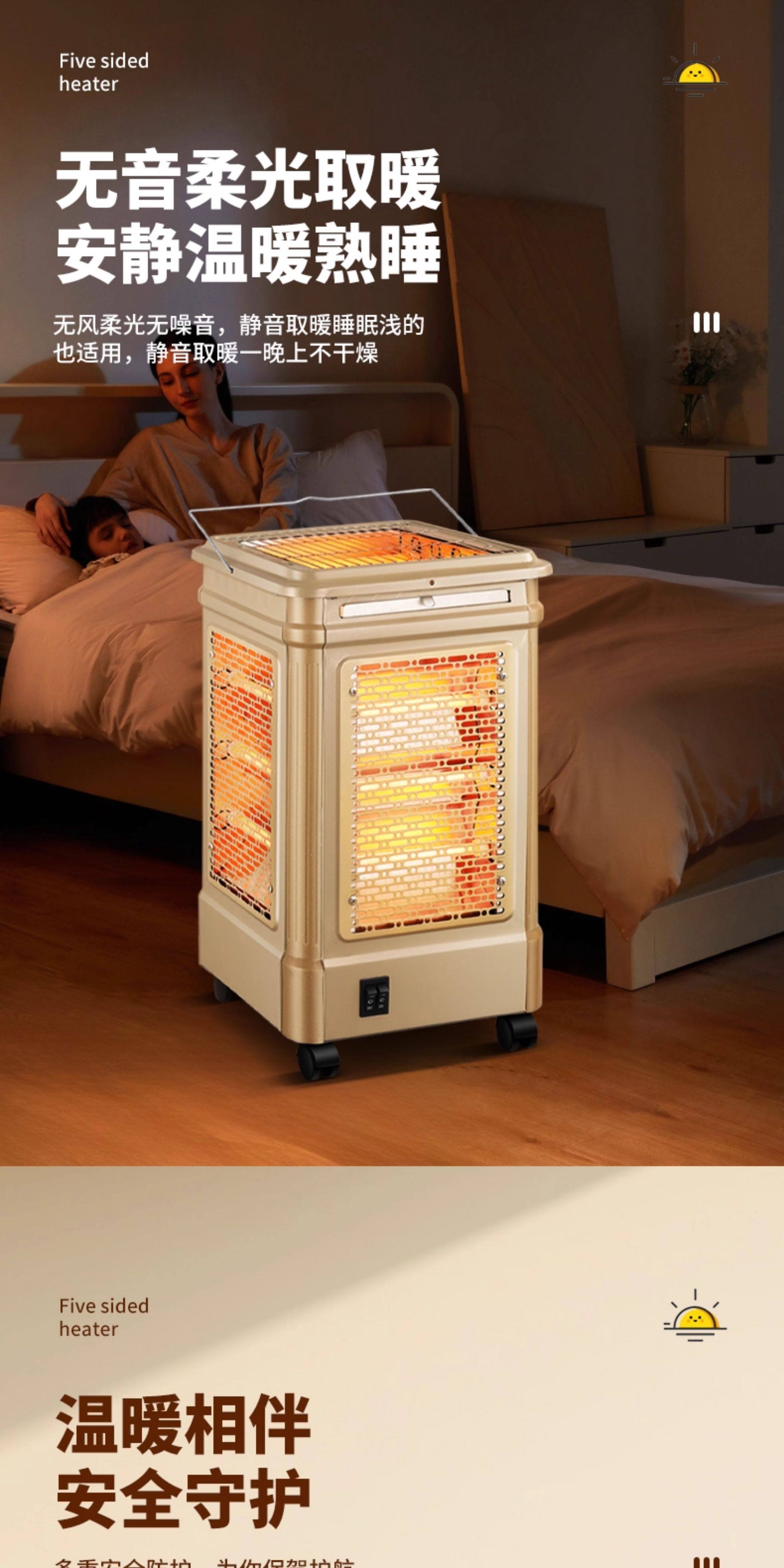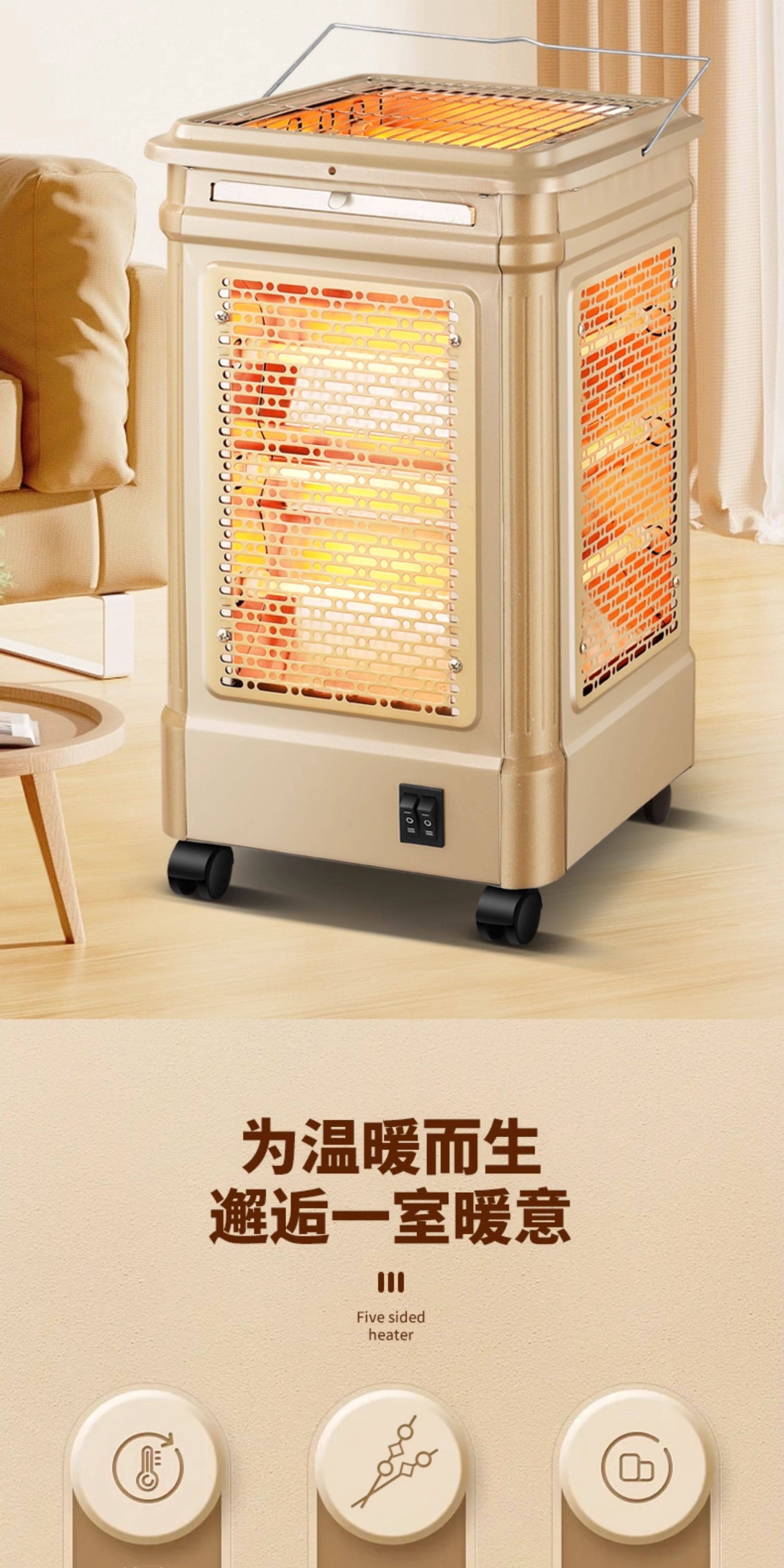 爱美高五面取暖器烧烤型烤火器小太阳电烤炉家用四面电暖气烤火炉