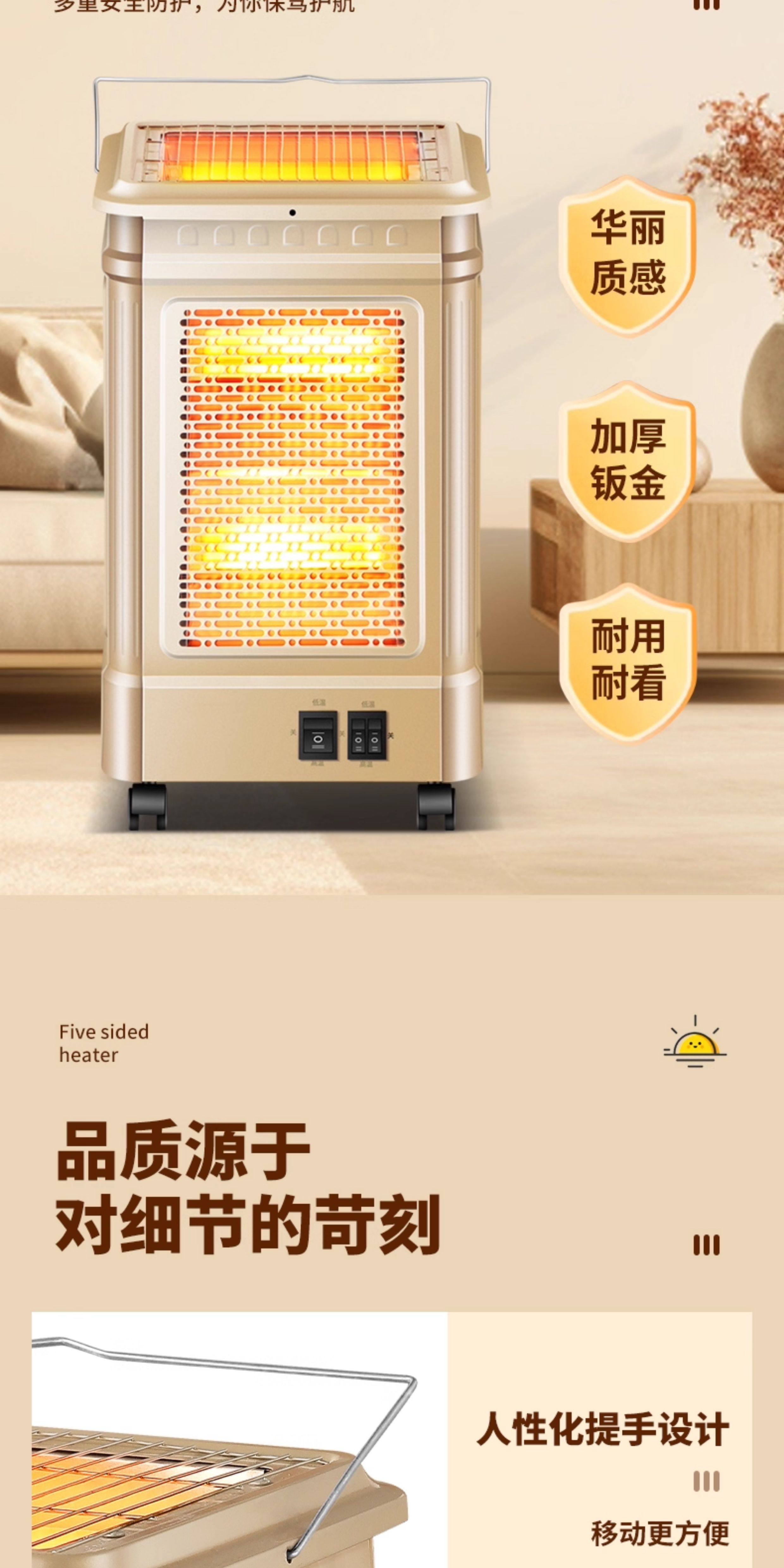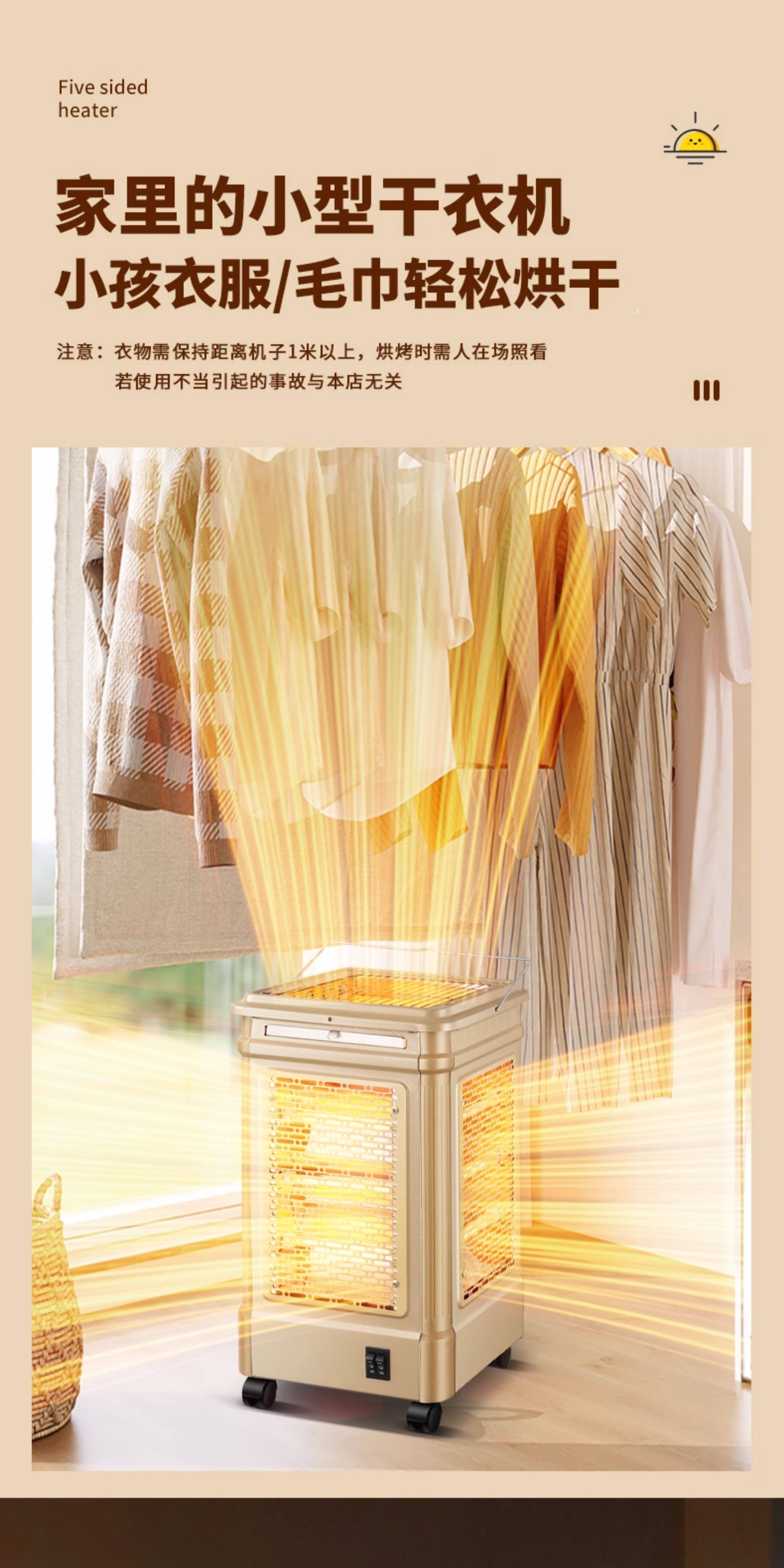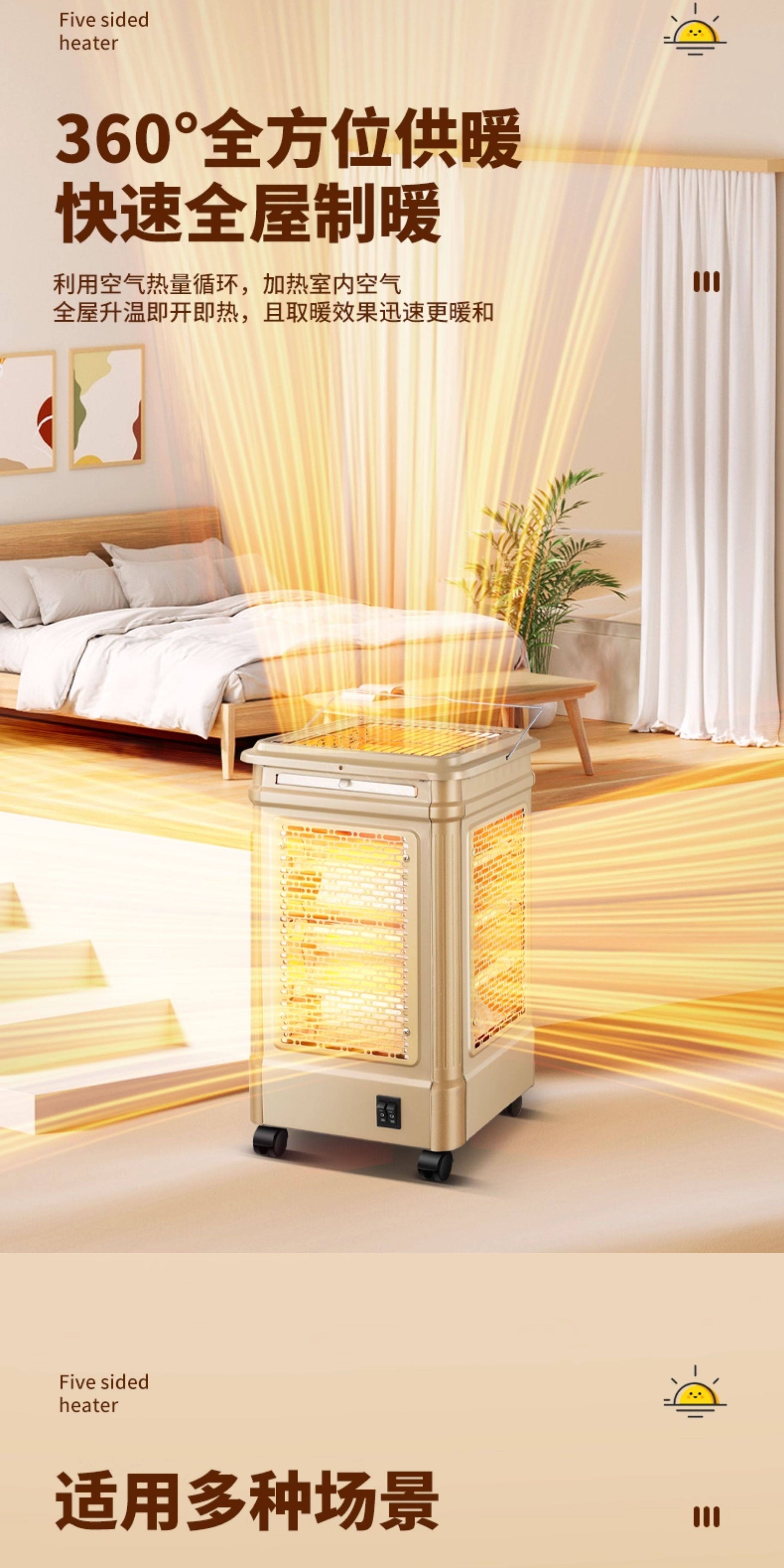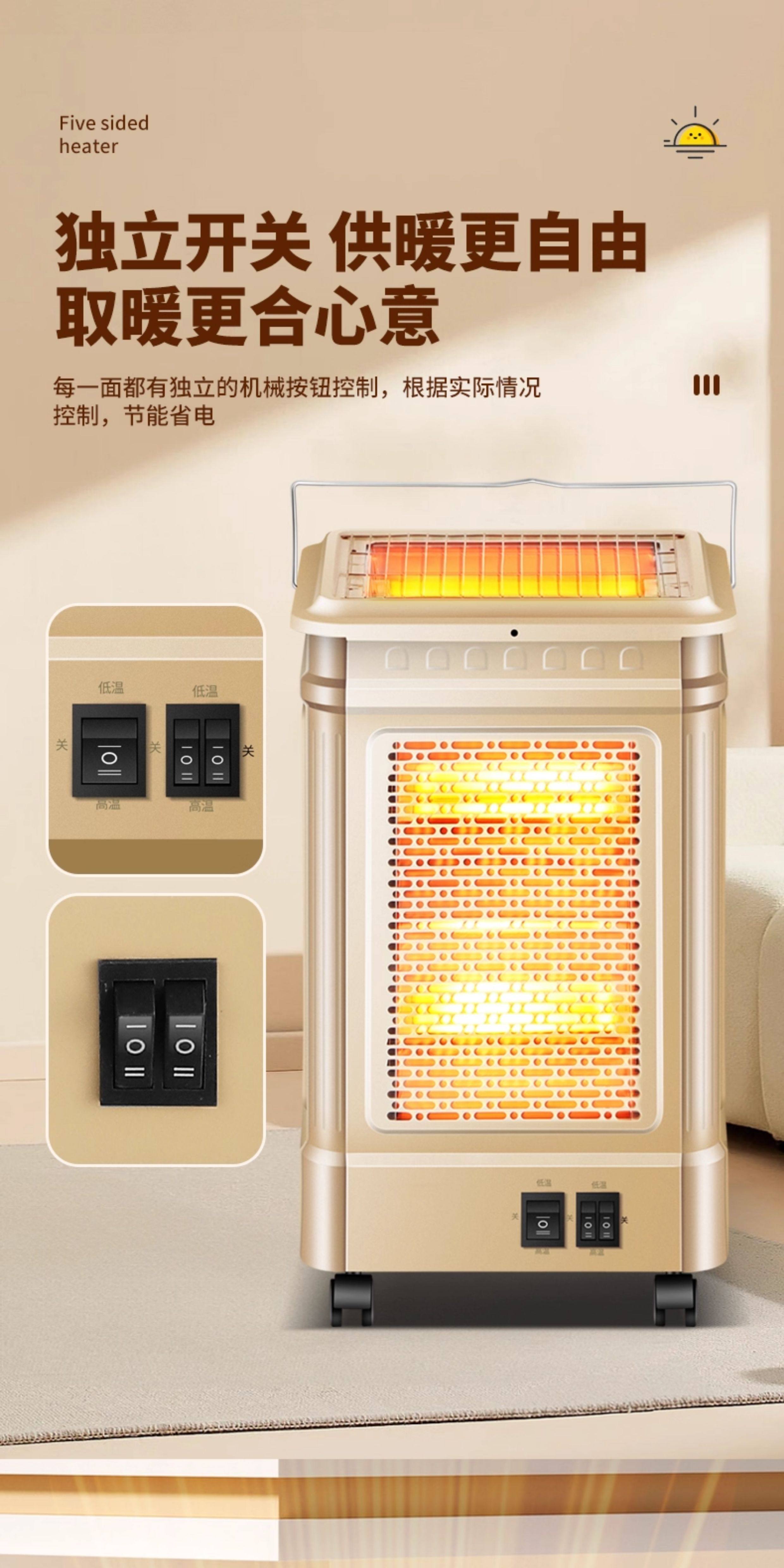 爱美高五面取暖器烧烤型烤火器小太阳电烤炉家用四面电暖气烤火炉